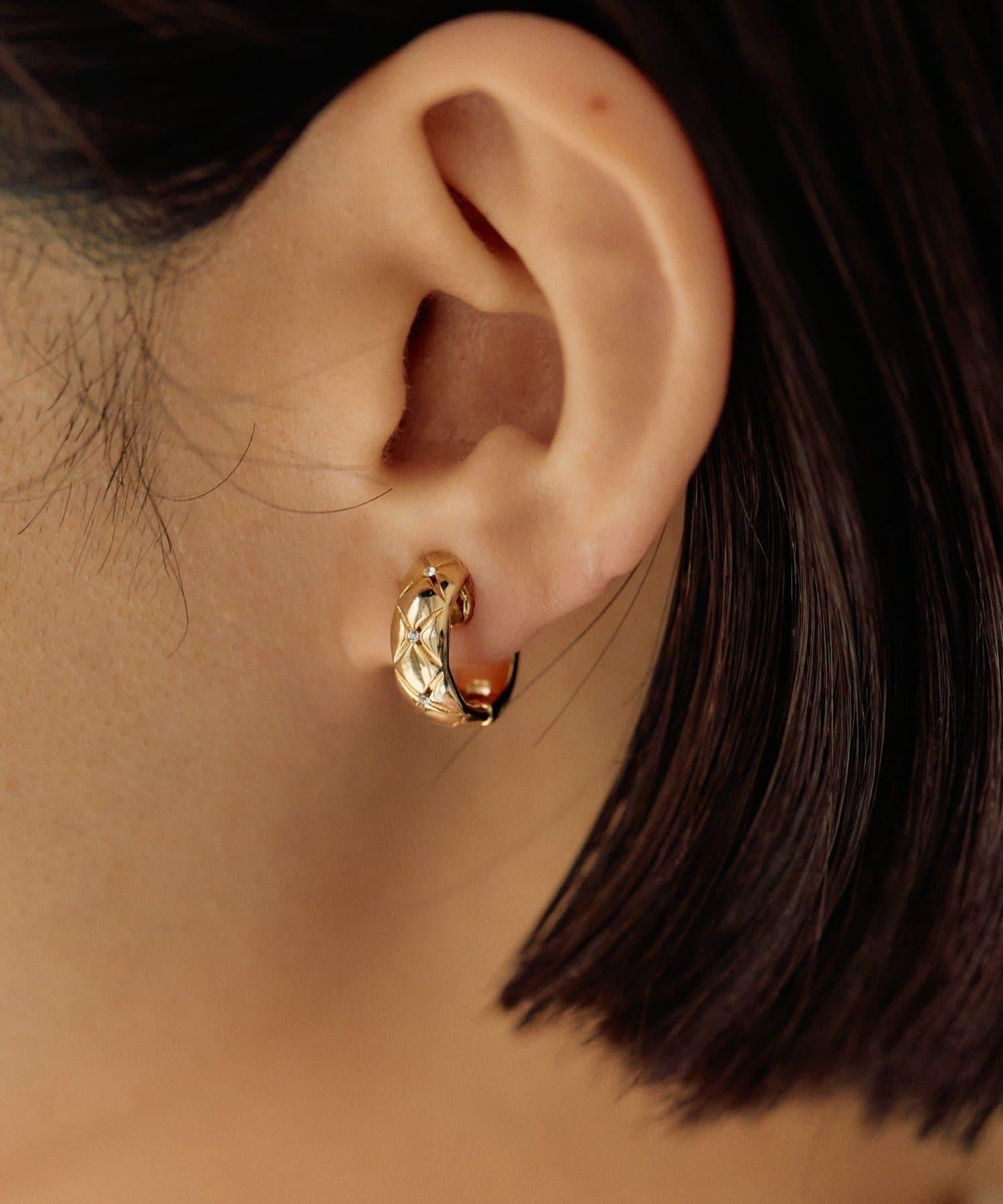 帶有絎縫圖案的磁性環形耳環/耳銬。