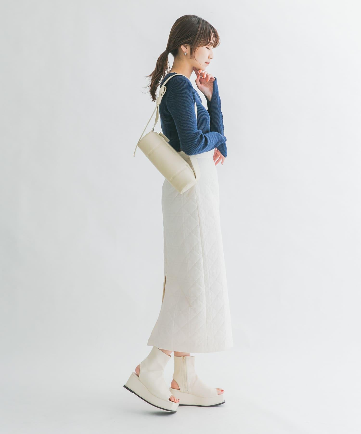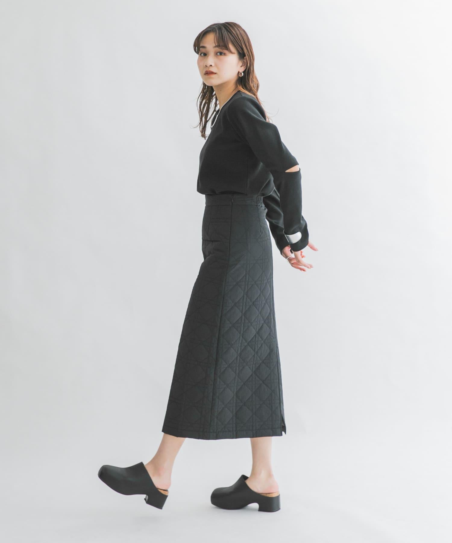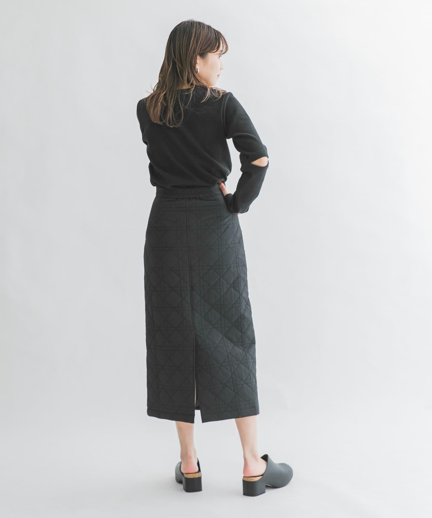 引人注目的絎縫裙。I 字形的輪廓既能彰顯女性的柔美,又能保持腰部線條的簡潔迷人,背部的開衩設計便於垂墜,可與各種上衣搭配,非常適合日常穿著。