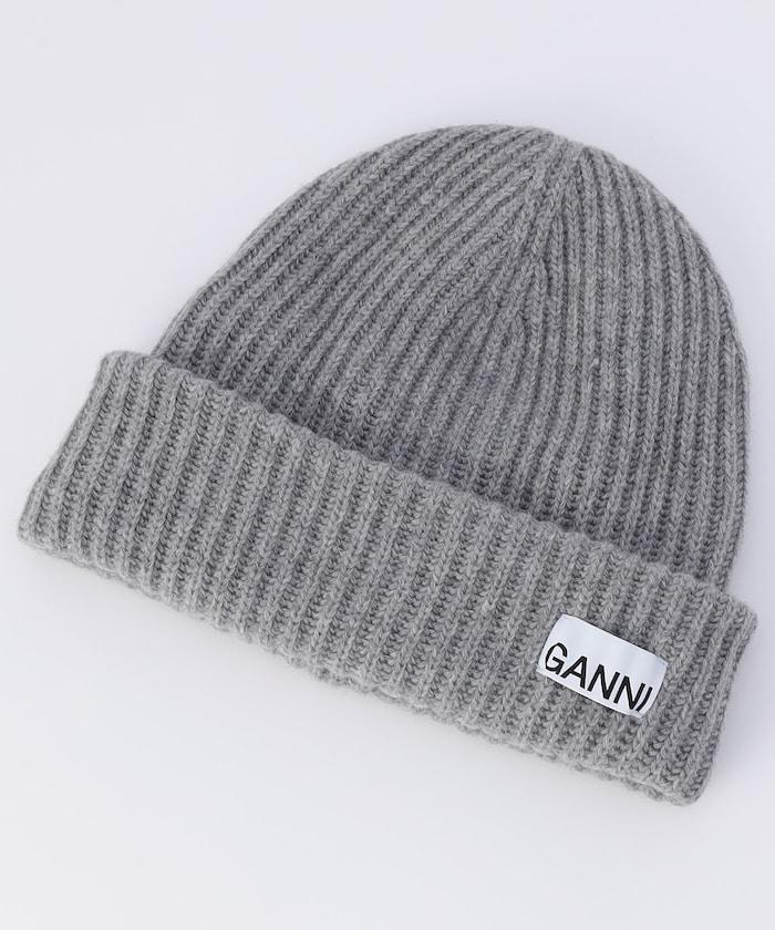 帶有醒目 GANNI 標誌的針織小帽。