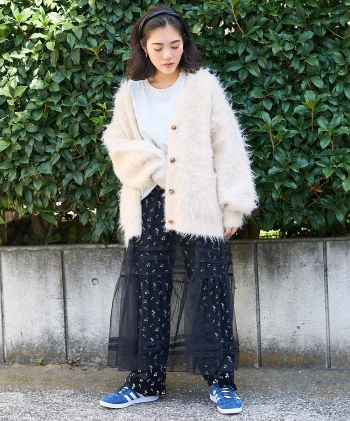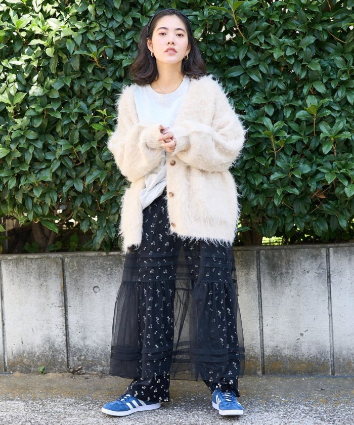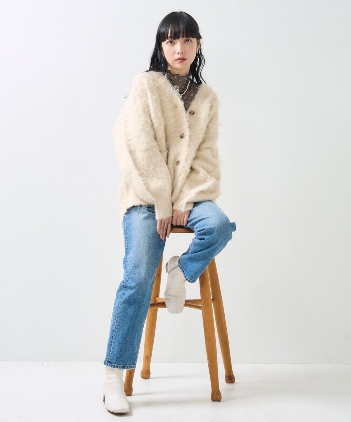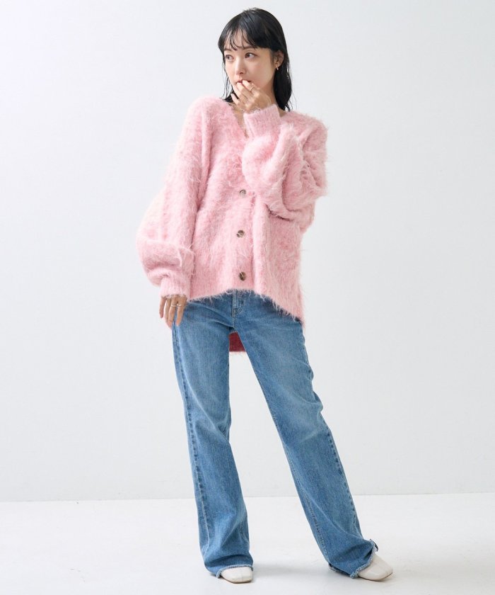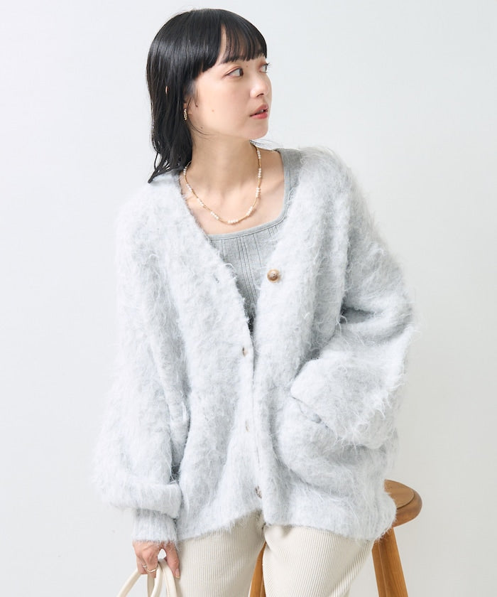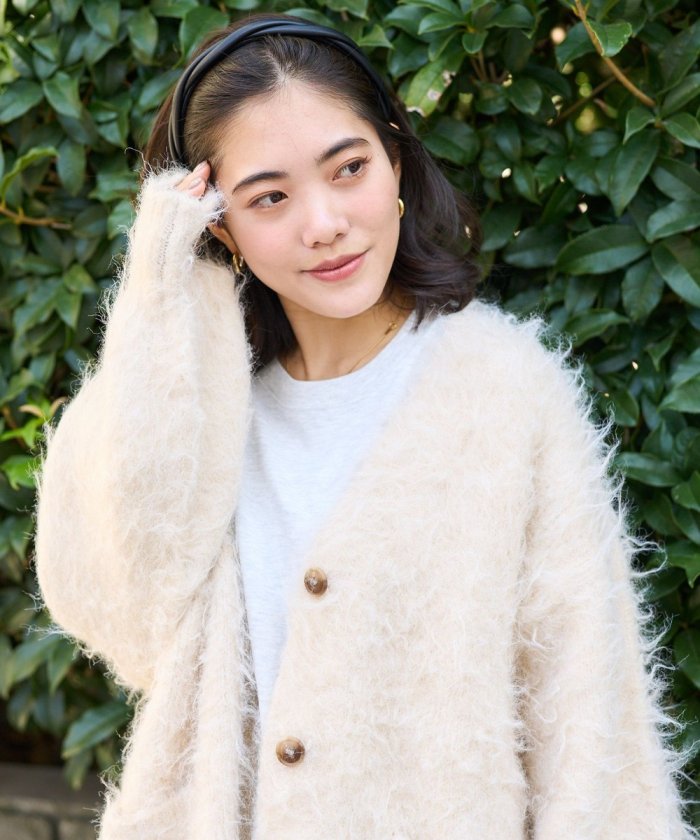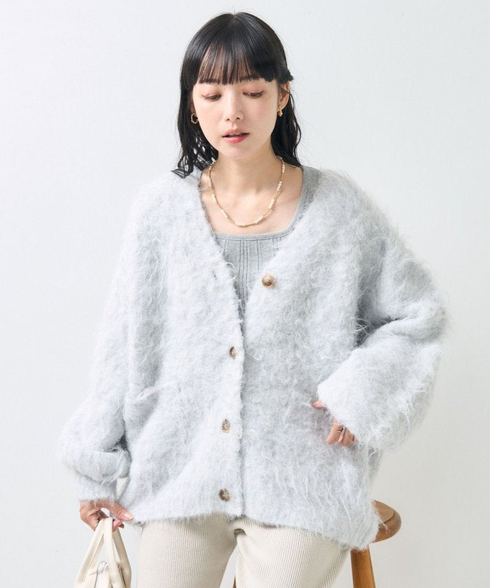 V 領針織衫質地柔軟蓬鬆,長絨觸感舒適。