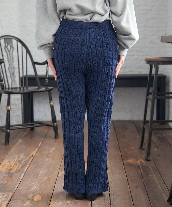 電纜編織的豎線使褲腿顯得圓潤,提升了時尚感。