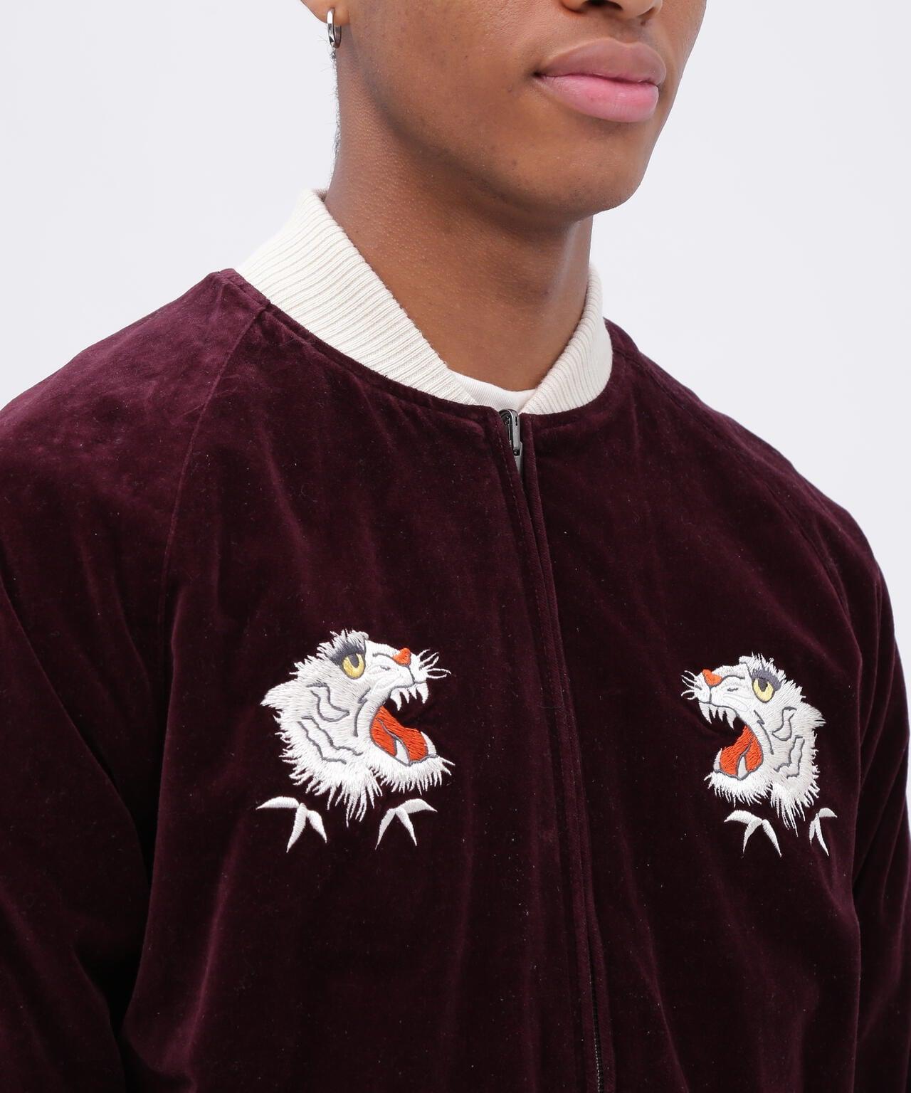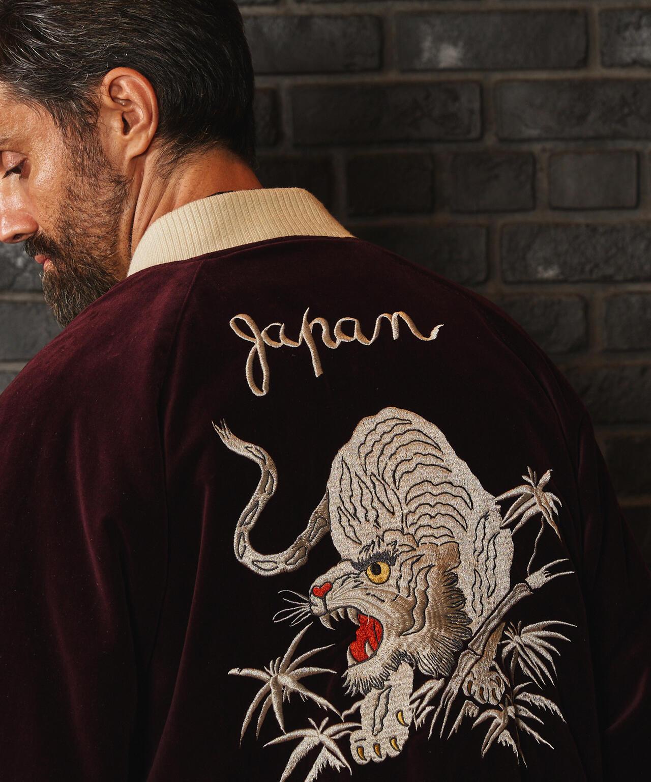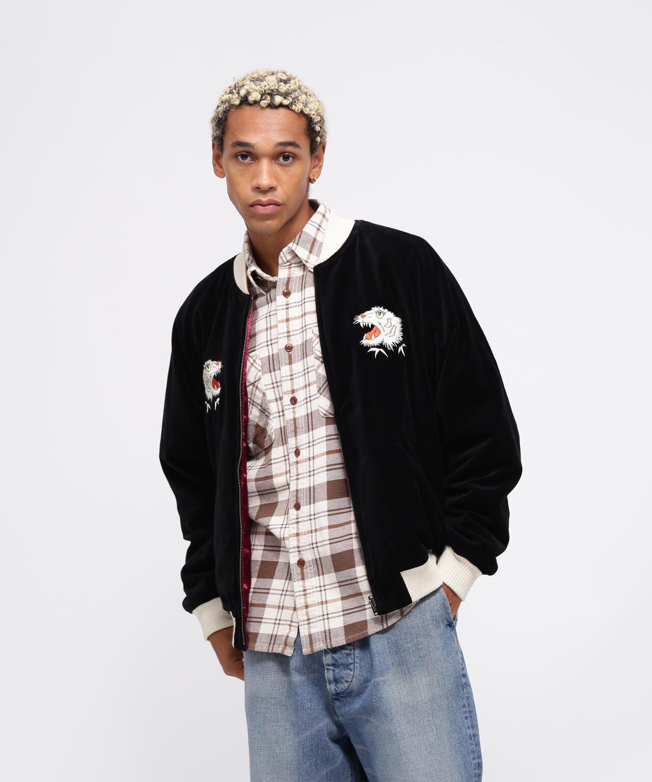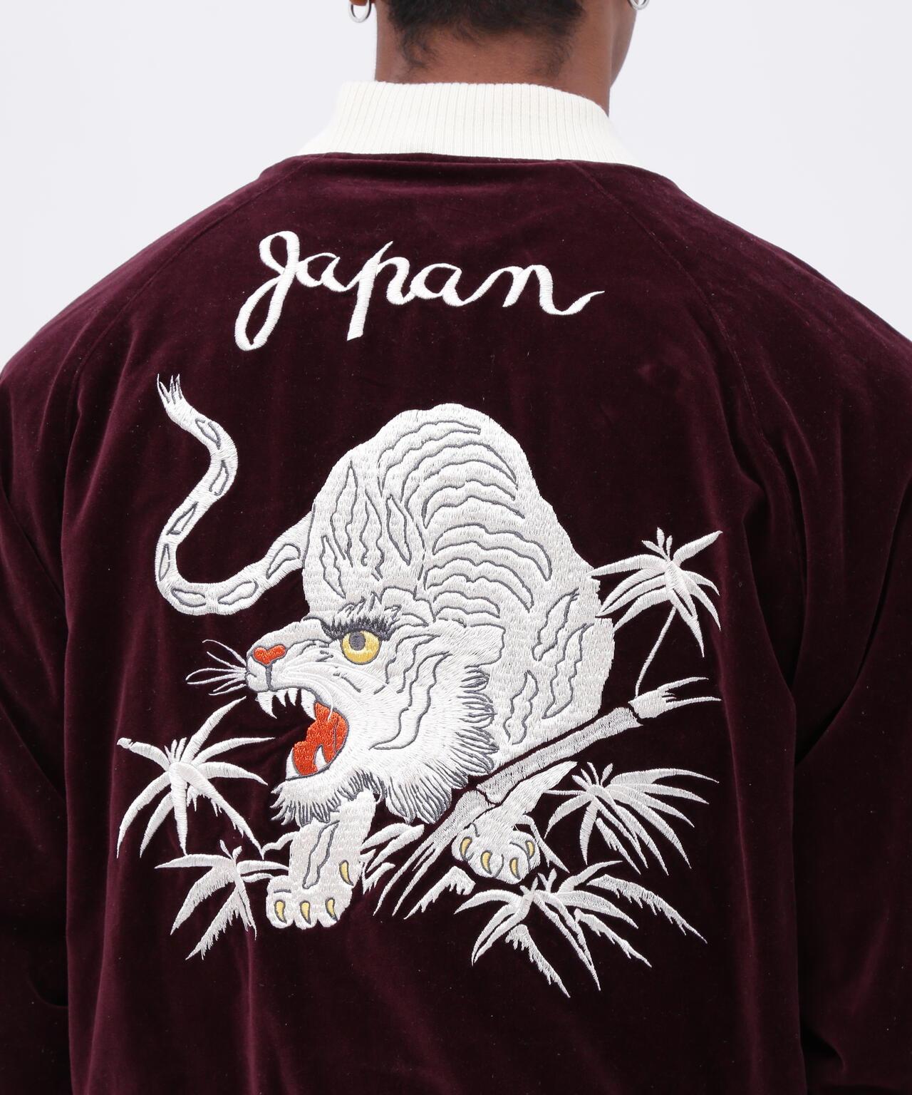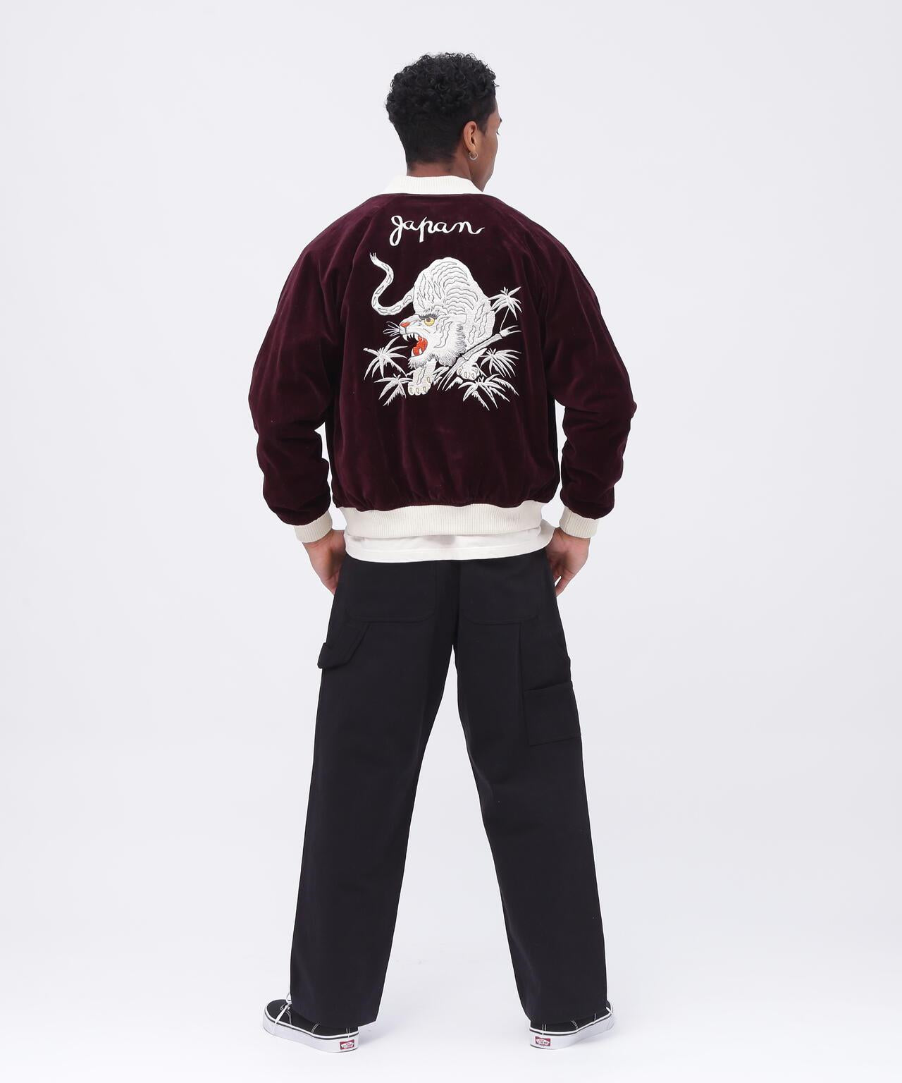 AVIREX官方直營店]VELVETEEN SKA JACKET WHITE TIGER<商品詳情> - 雙面繡和人造絲雙面繡的紀念夾克 - 雙面繡的一面繡有日本皇道圖案的雙面繡 - 緞面繡有美國空軍軍帽圖案的緞面繡。Sukajan] "橫須賀(Yokosuka)跳線 "的簡稱。 在美國,它被稱為 "紀念夾克"。AVIREX 成立於 1975 年,是美國空軍的承包商,通過提供飛行夾克,其知名度急劇上升。起源於軍隊的 Avirex 以其功能性設計而聞名。