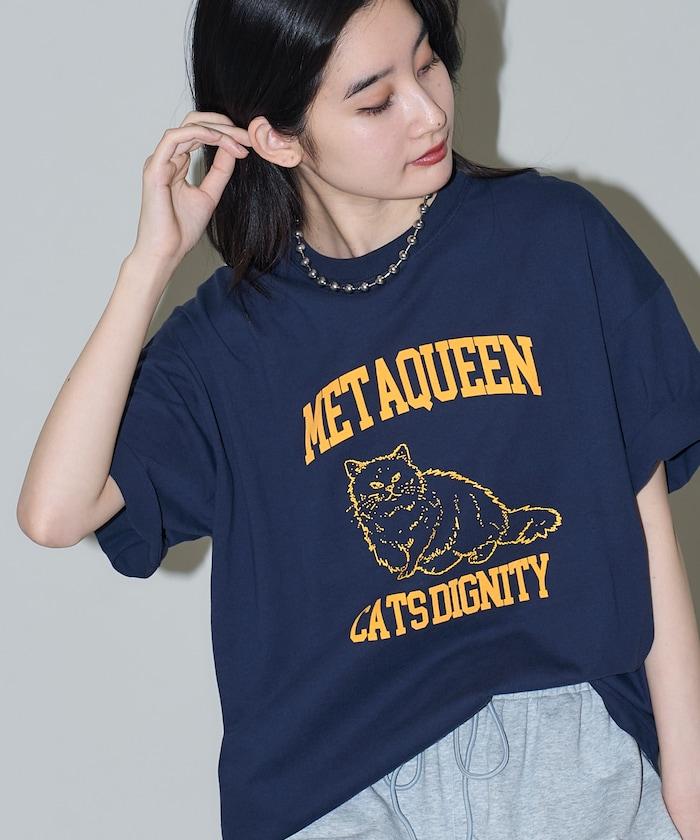 圓領 T 恤,貓咪圖案印花,氣場十足。
