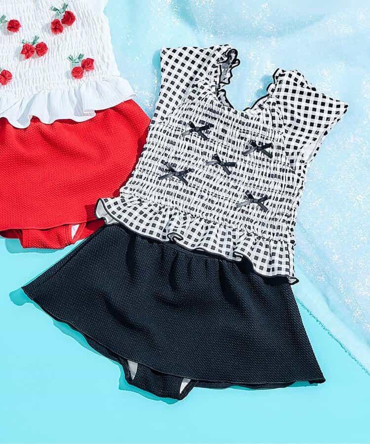 絲帶·櫻桃圖案荷葉邊分體泳衣
