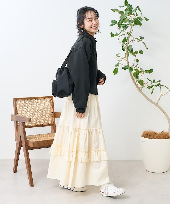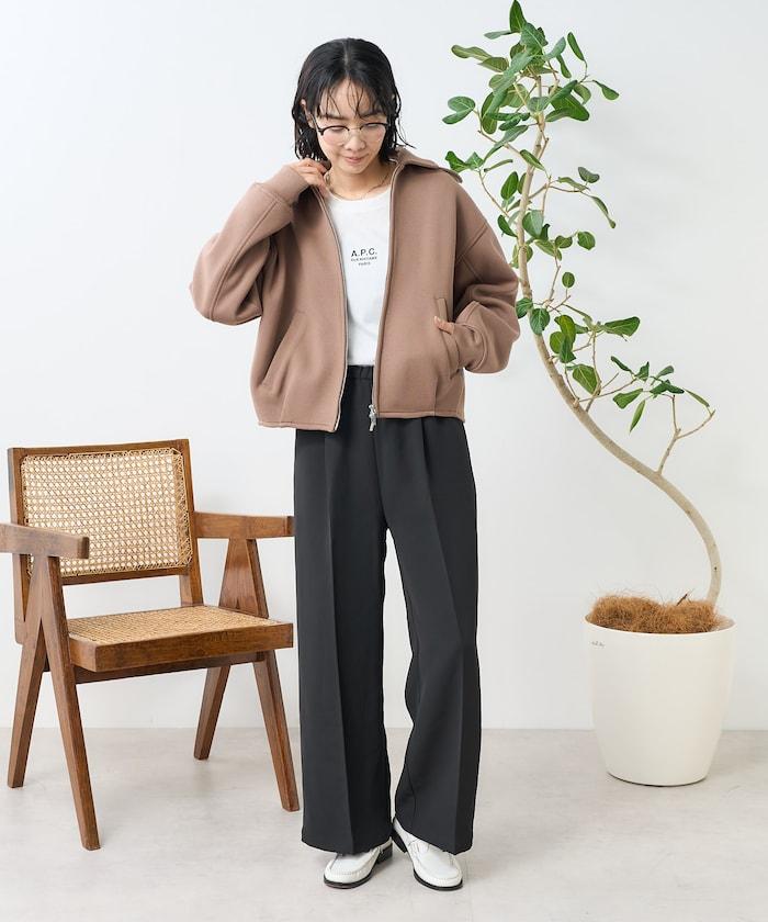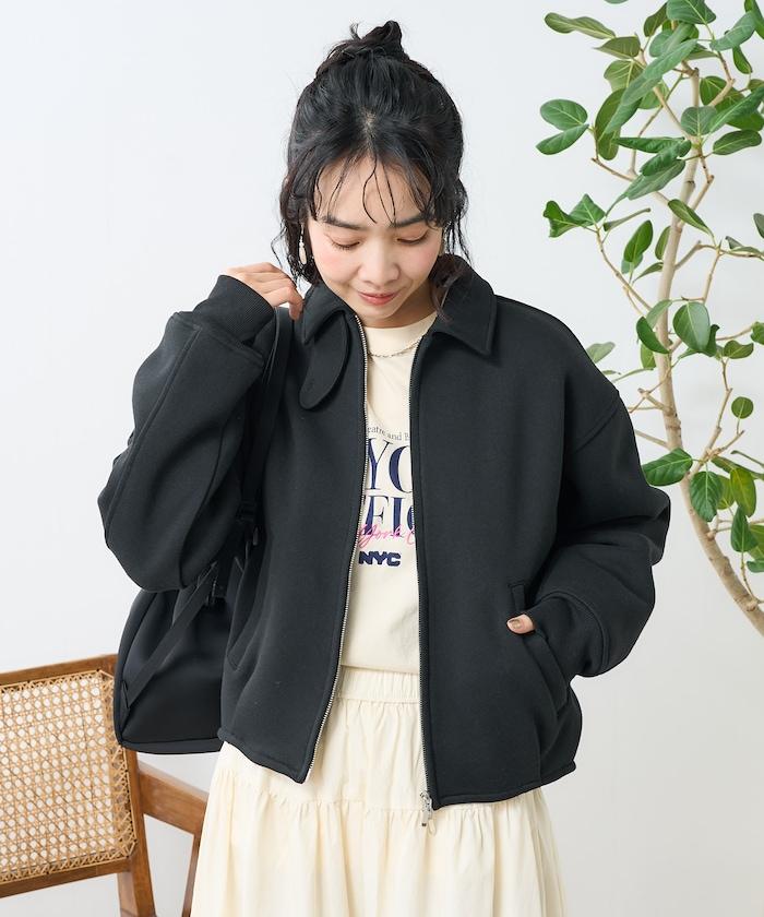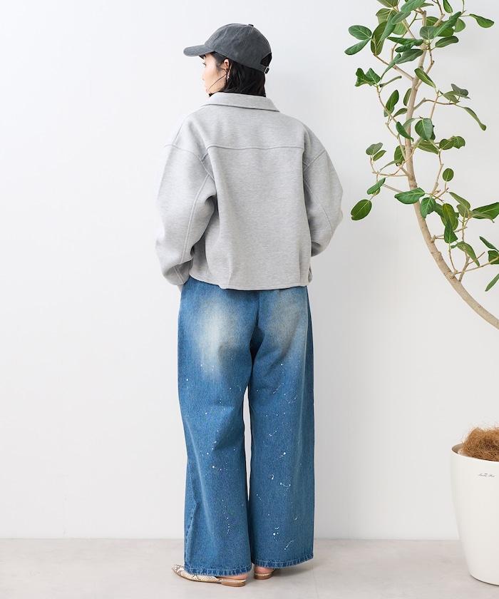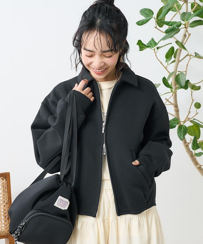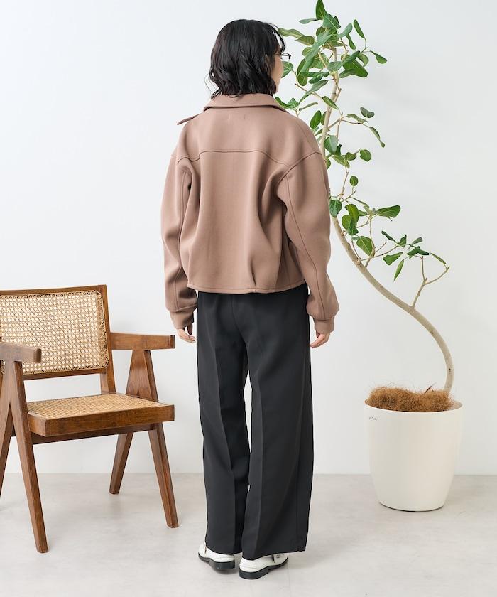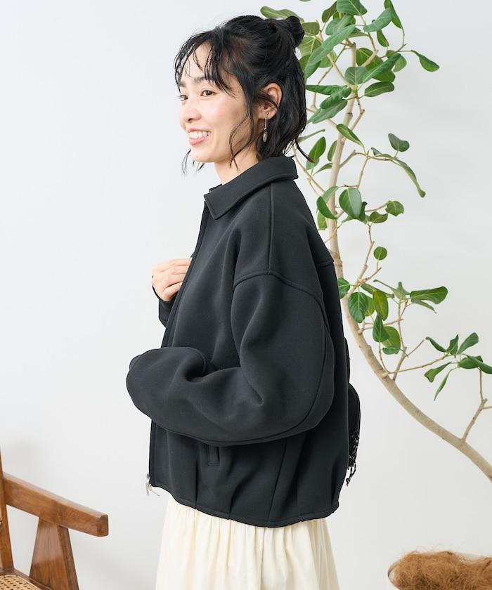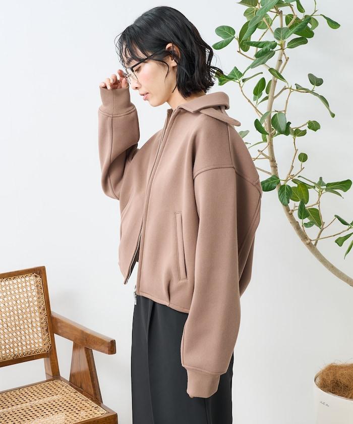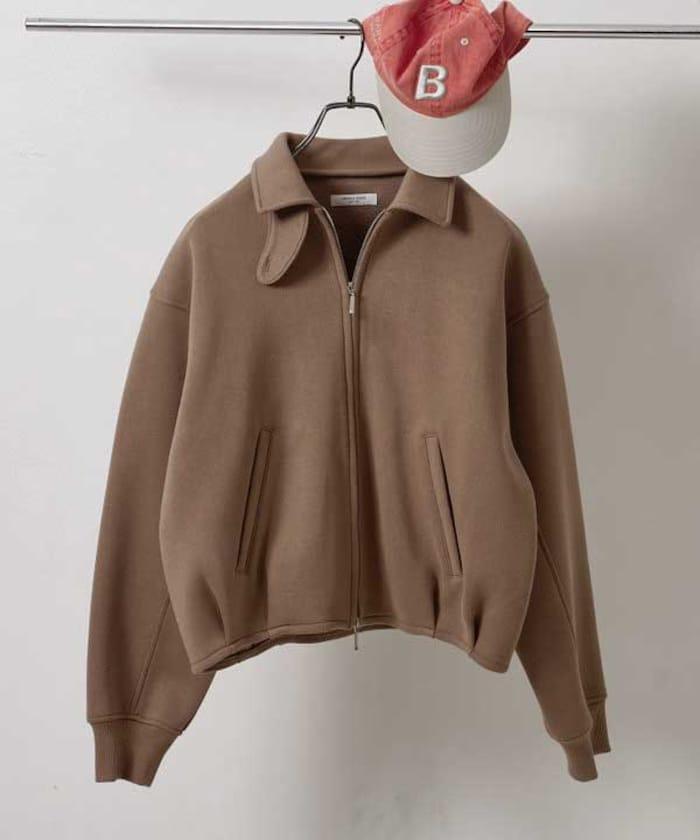 這款夾克衫的特點是通過在下襬處設計褶襉,形成立體輪廓。