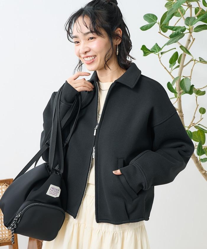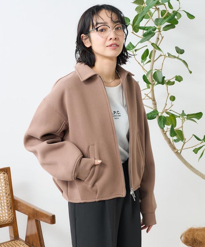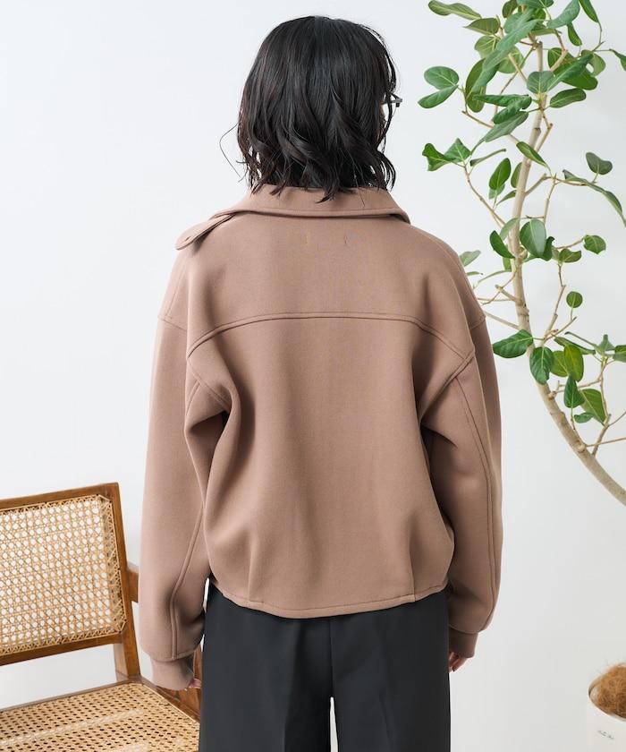 這款夾克的面料正面是薄羊毛襯裡,背面是粘合的薄針織面料。