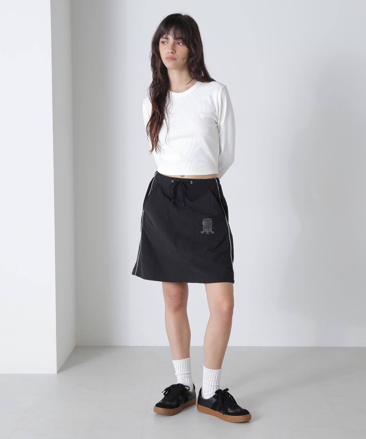 2024 春夏季單品SIGNATURE SKIRT - 運動型迷你裙,側邊有滾邊,輕便易走動,皺紋尼龍面料,部件號:7834257601 可與馬甲搭配。相關商品部件號:7834257601 SIGNATURE VEST [AVIREX Belle] 該系列將純正軍裝的功能性和設計感投射到女式休閒裝上。作為一個具有個性和永恆性的女裝品牌,它為聰明、自由、好奇、端莊、活潑的職業成年女性提供女式休閒裝。