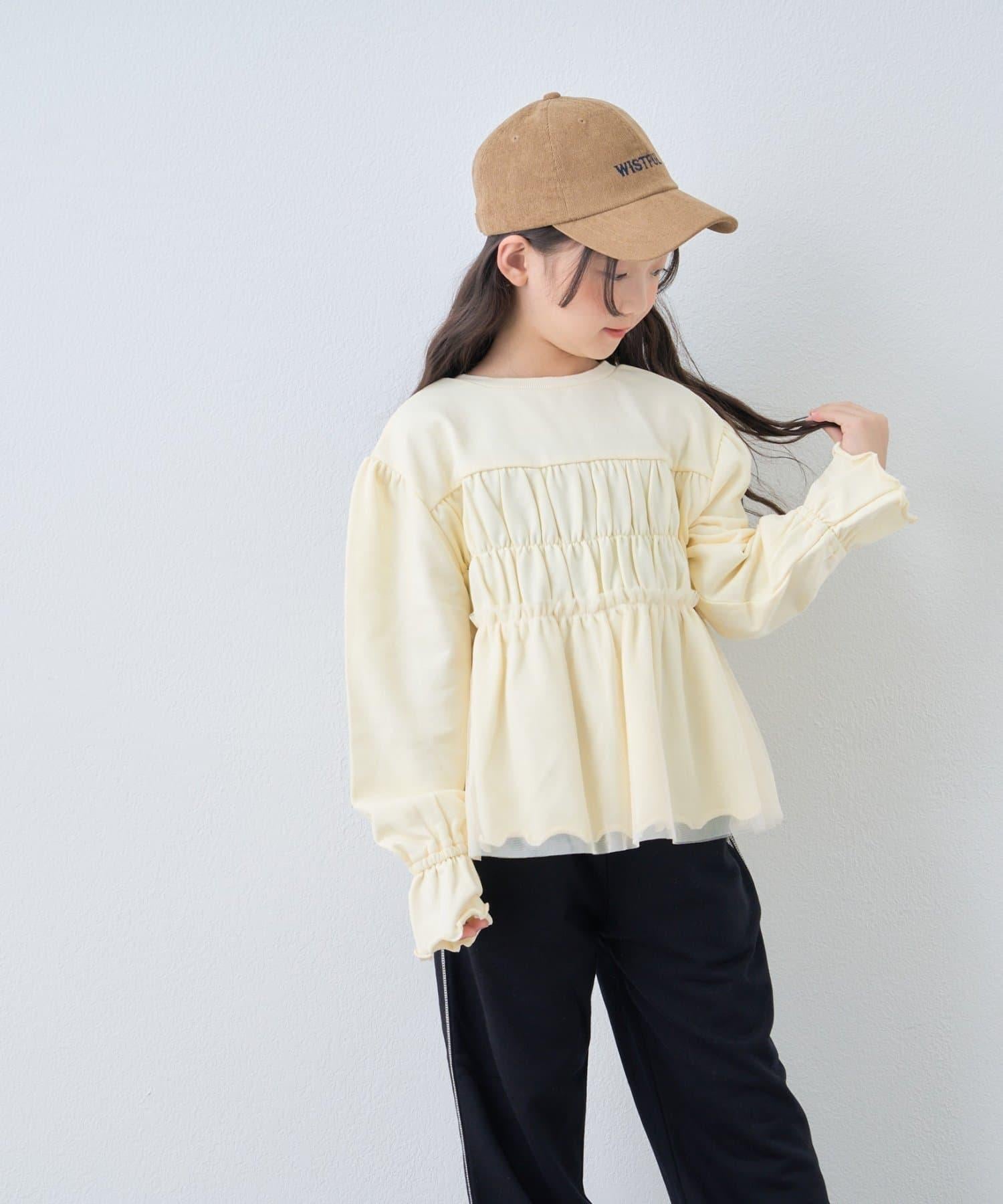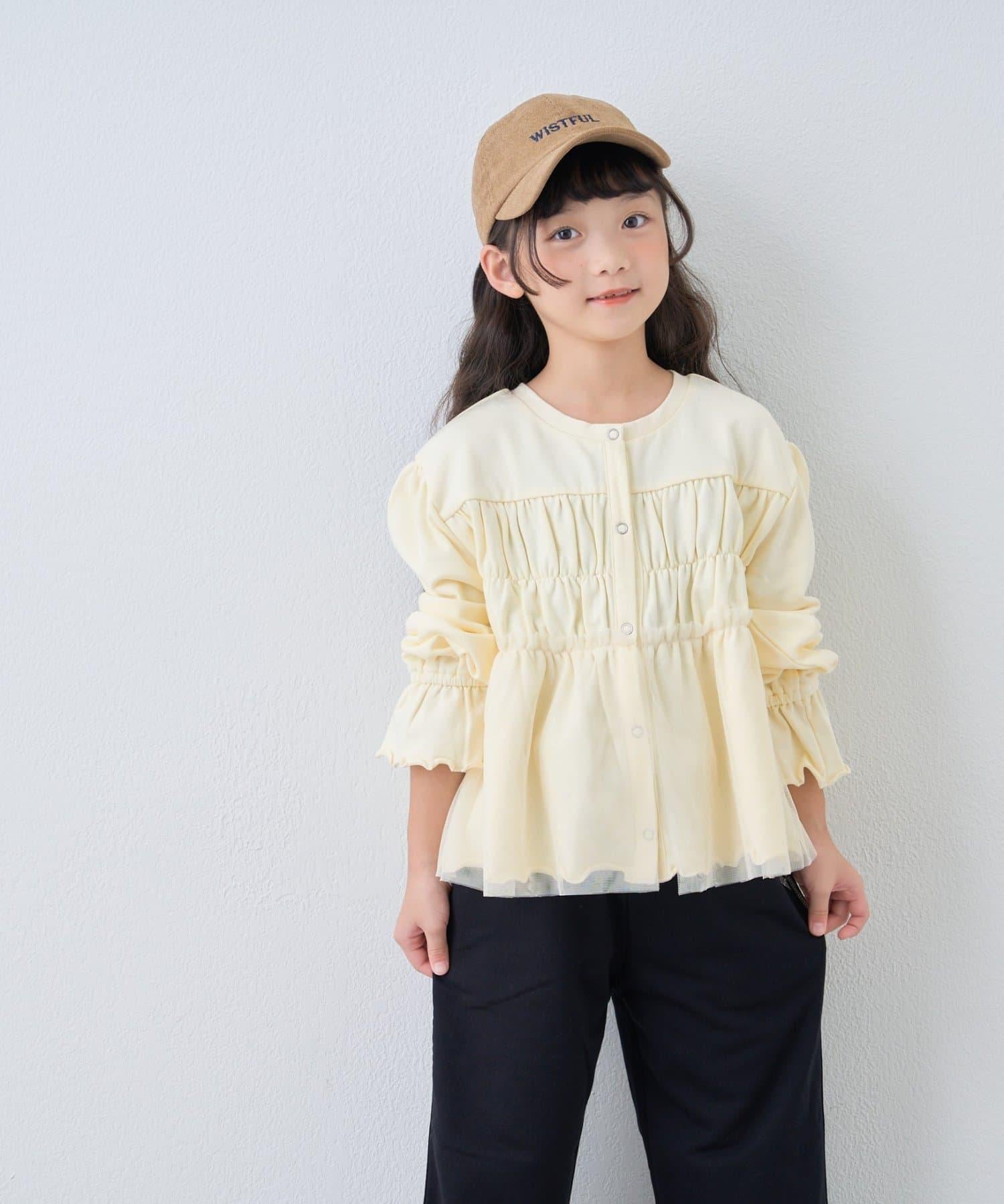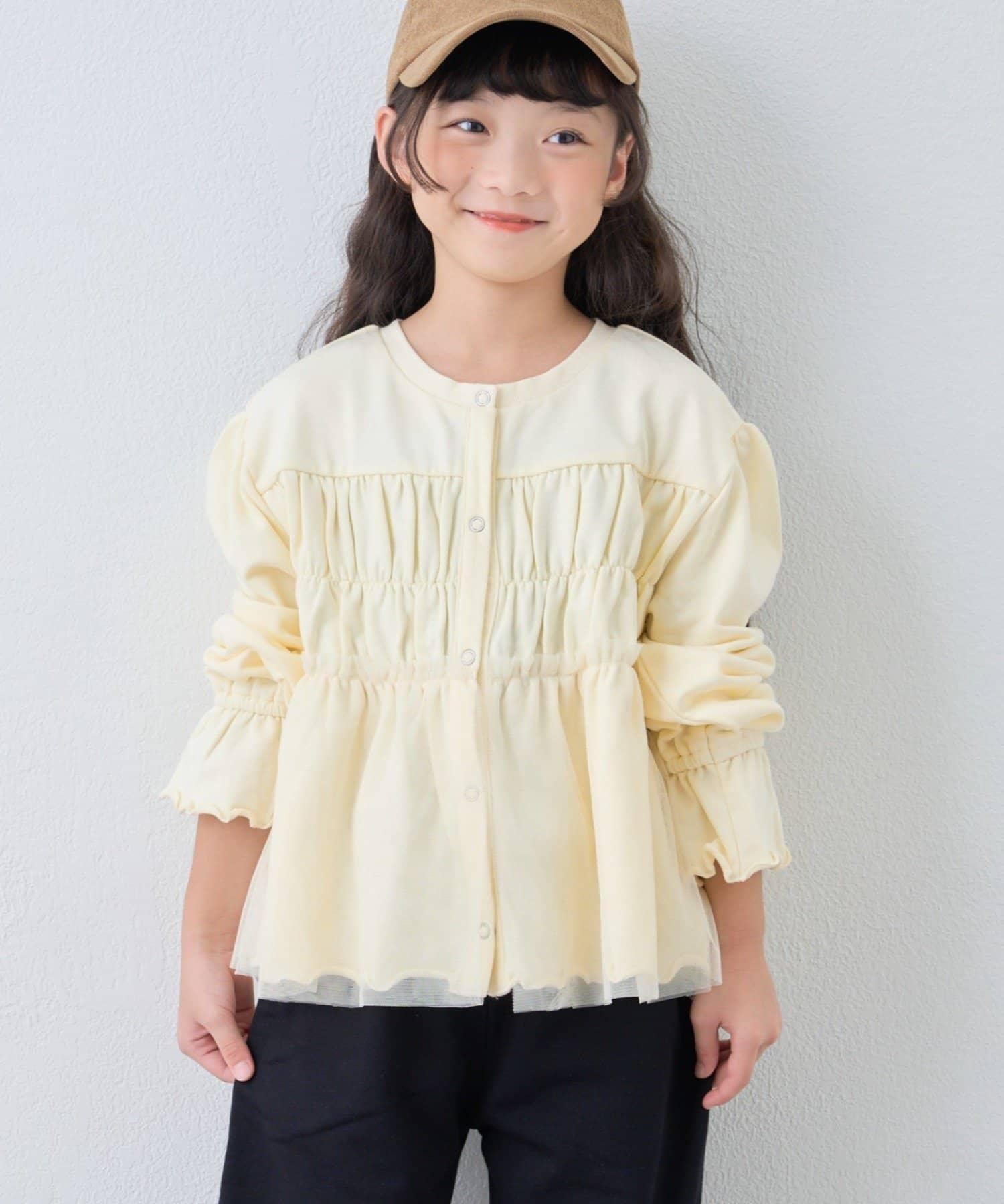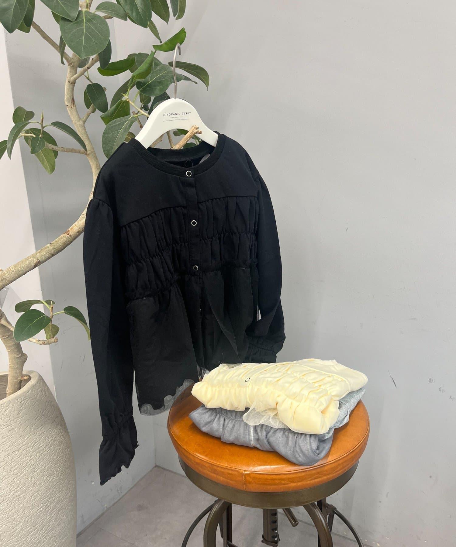 【網店限定】【兒童】2WAY抽褶網紗迷你衛衣開衫
