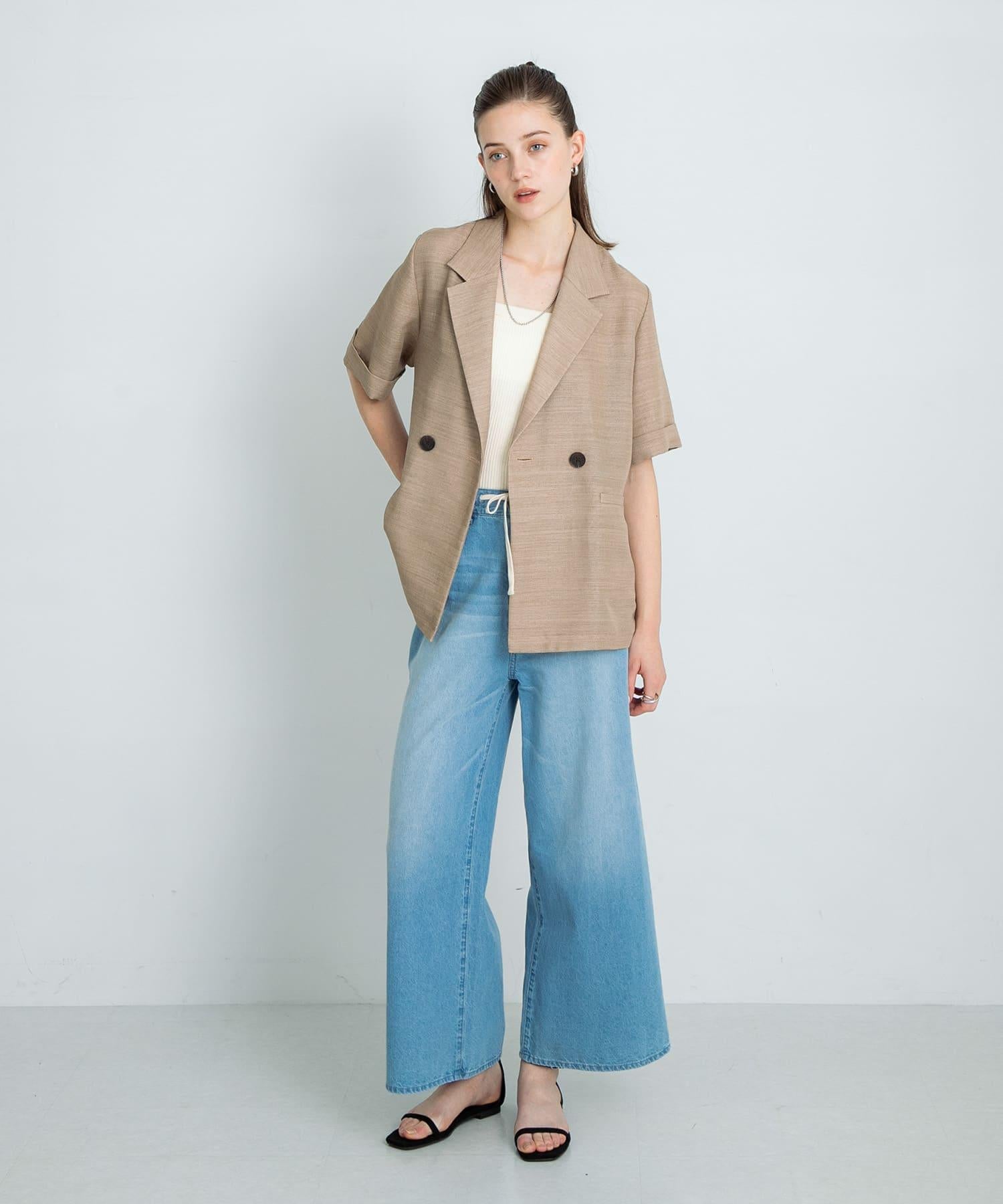 可搭配牛仔褲或緊身裙。也可與同材質的寬長褲(LAA5-24O002 網眼簡易寬長褲)組合穿著。