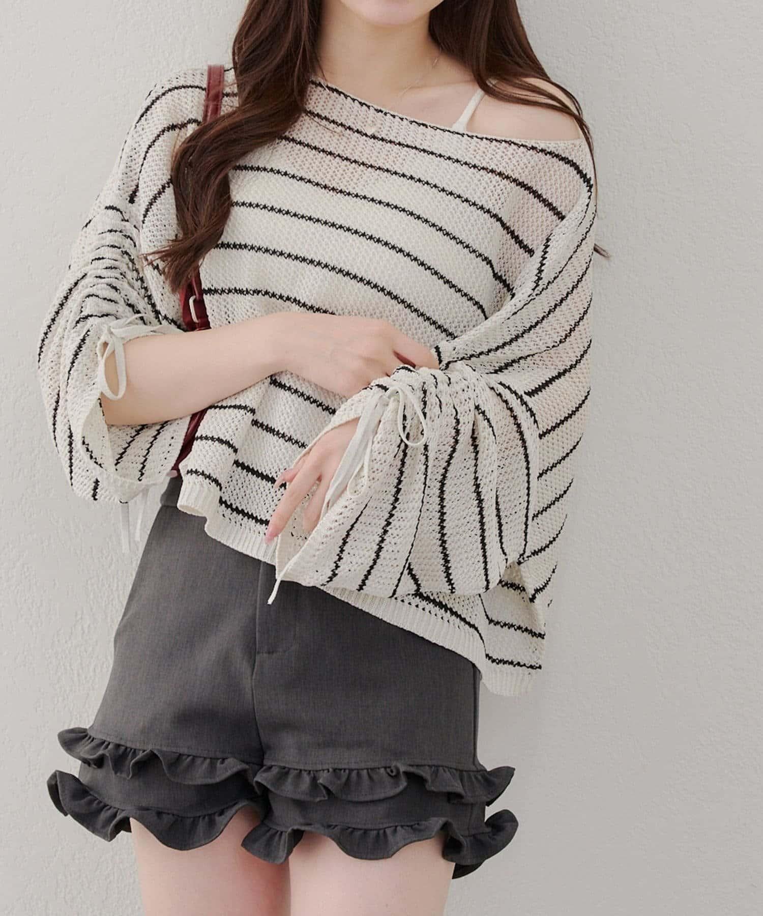 網眼抽繩設計套頭上衣