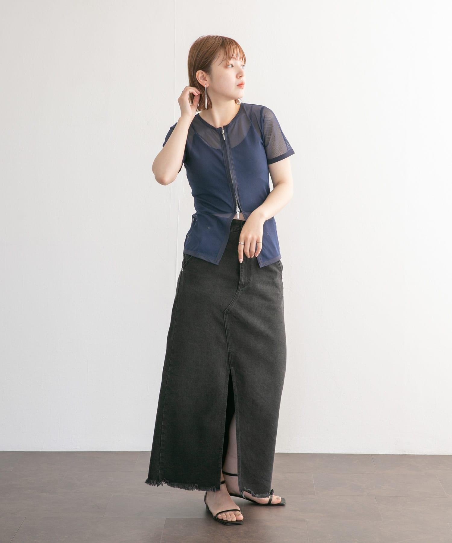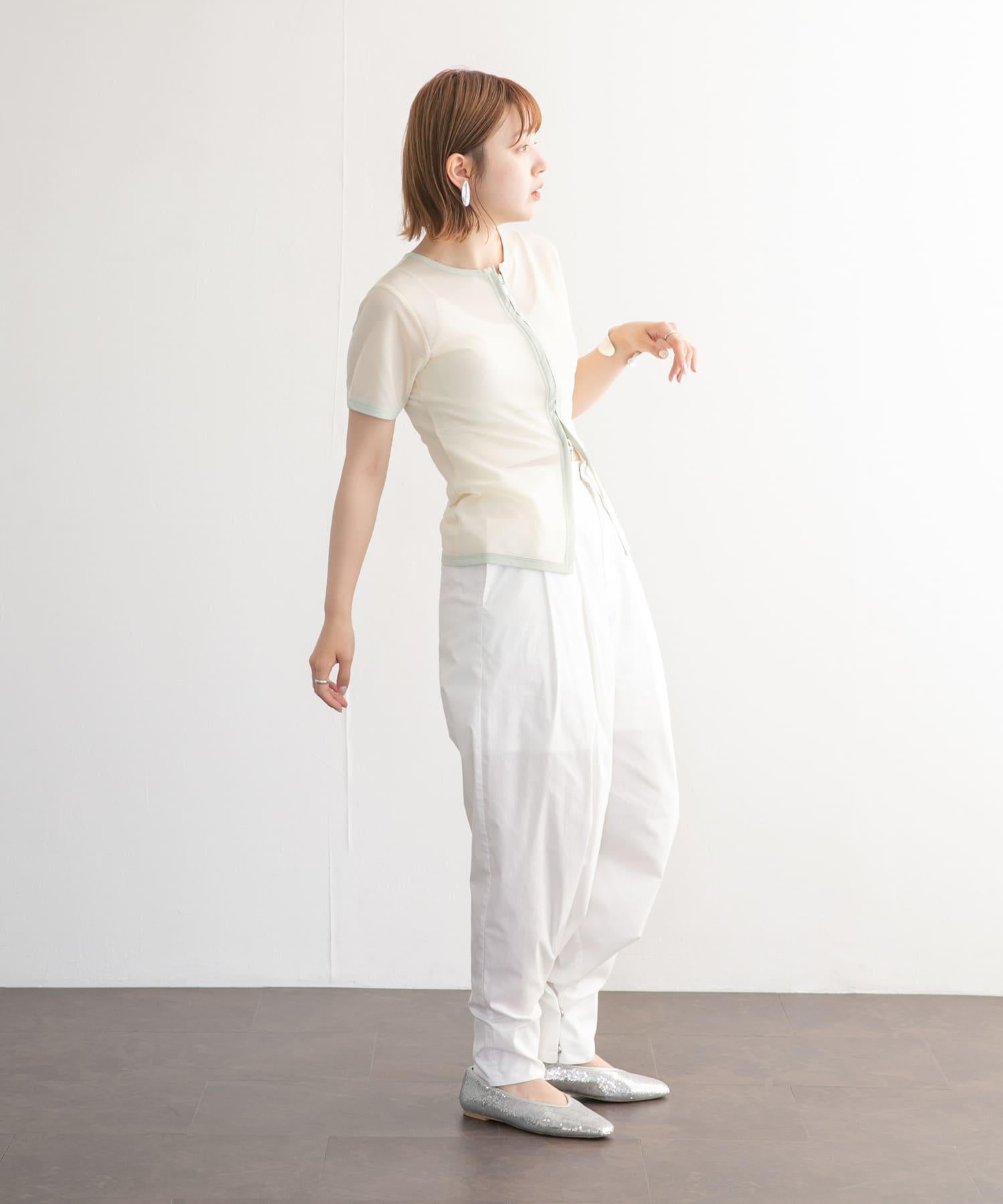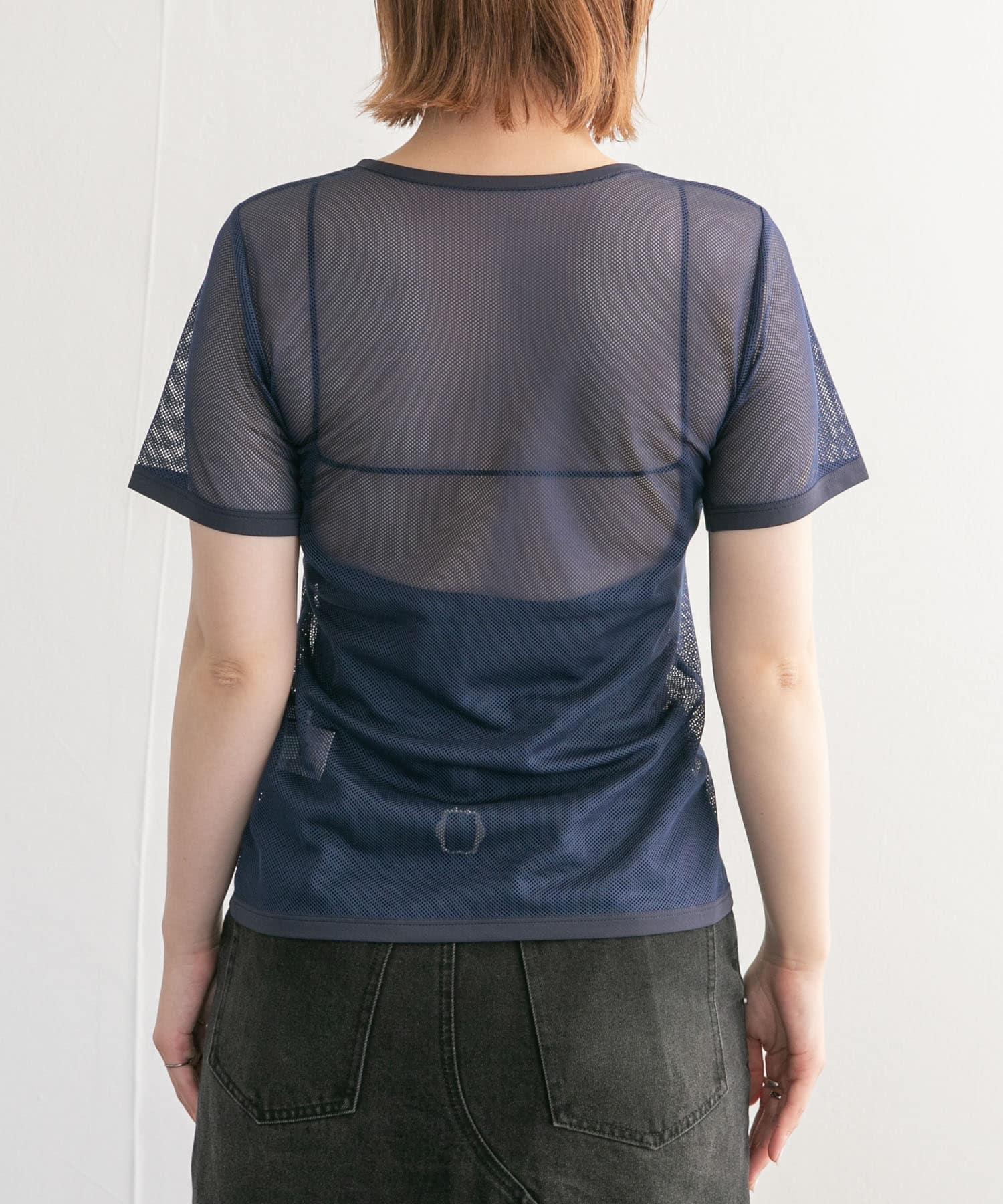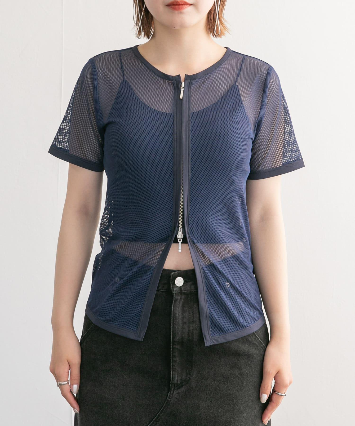 適度緊身的網眼上衣,散發時尚氣息。衣領、袖口和下襬處均有鑲邊,避免過於隨意。前襟扣為反向開口,便於搭配寬鬆的下裝。