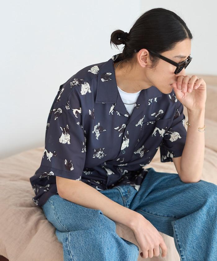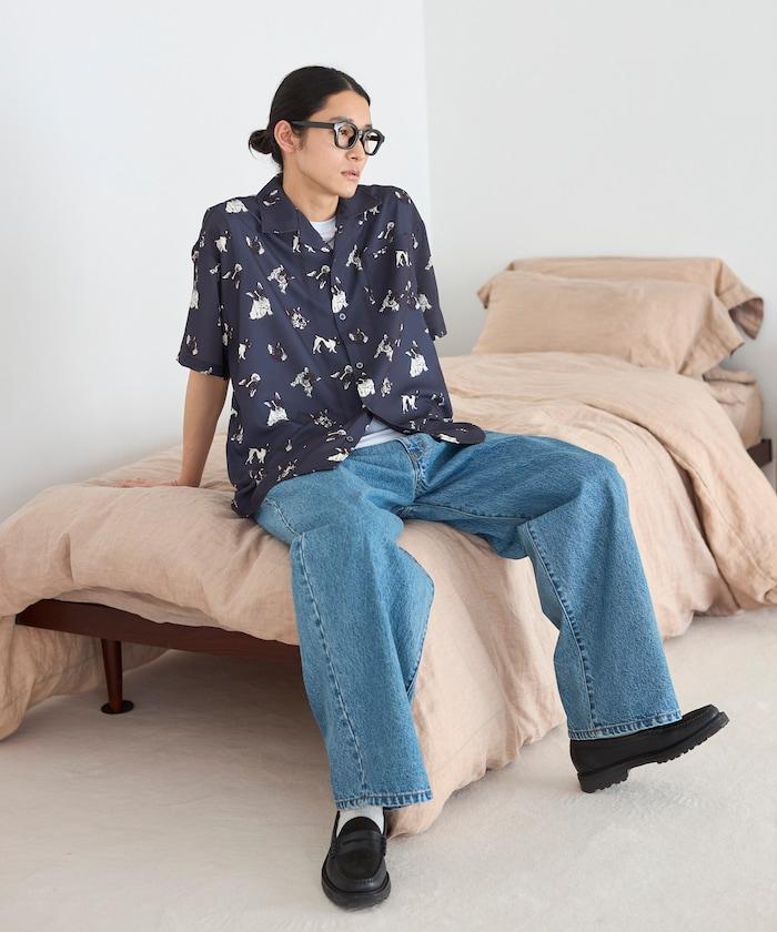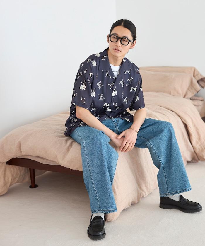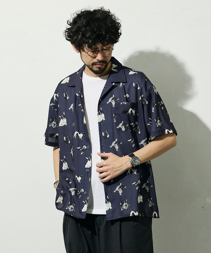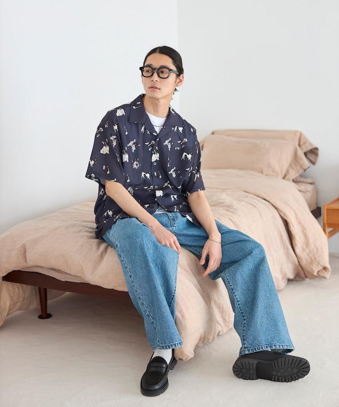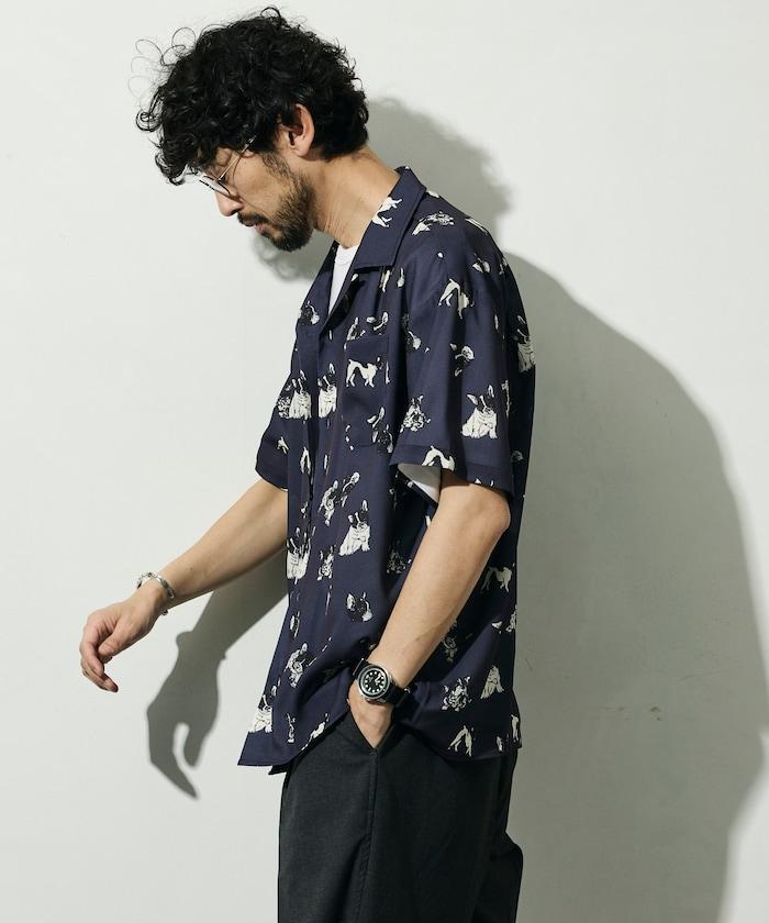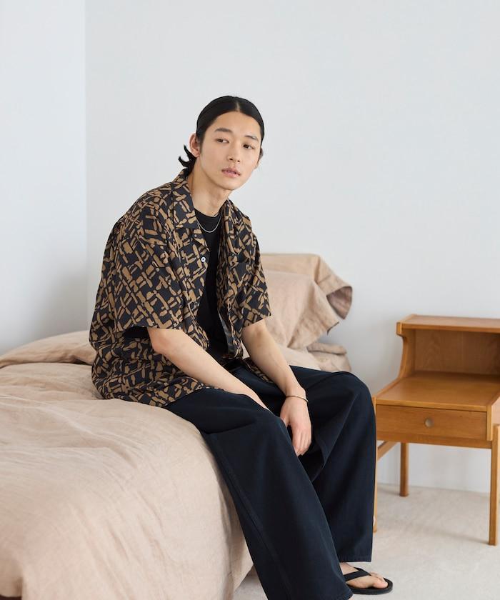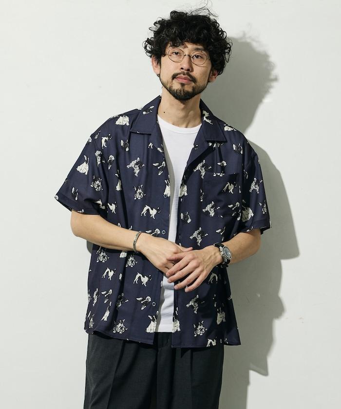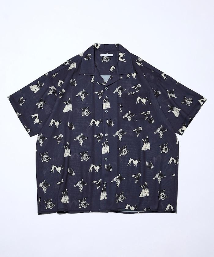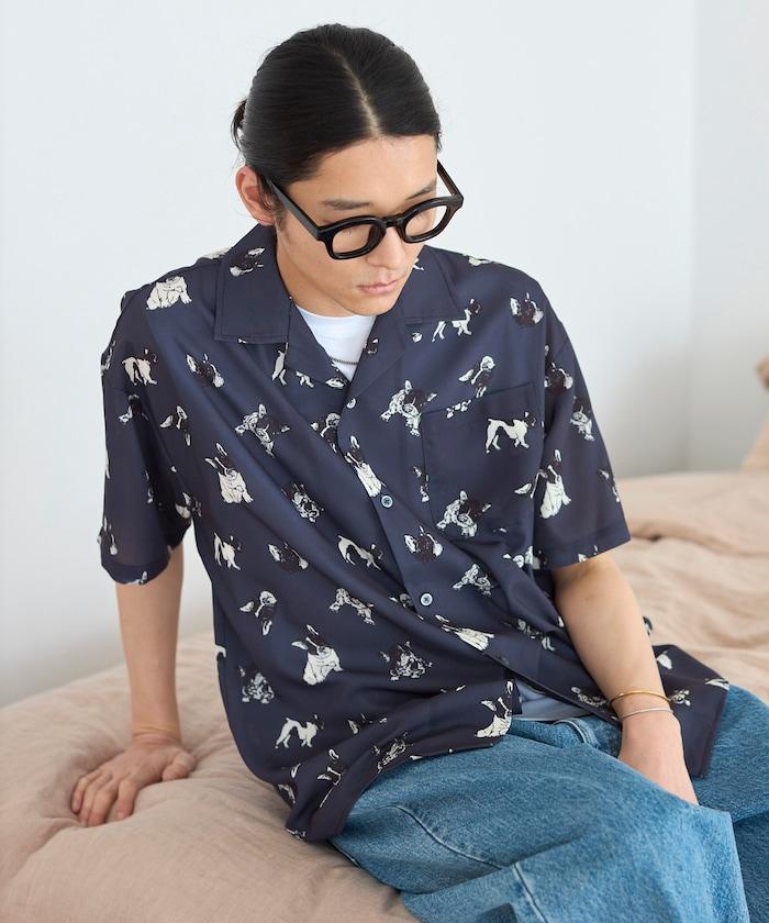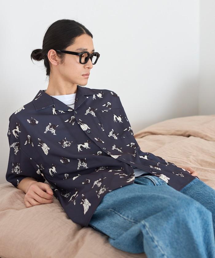 網眼材質 + 寬鬆廓形 + 滿版圖案設計 + 開襟 + 短袖襯衫 最終商品名: 網眼寬鬆廓形滿版圖案開襟短袖襯衫
