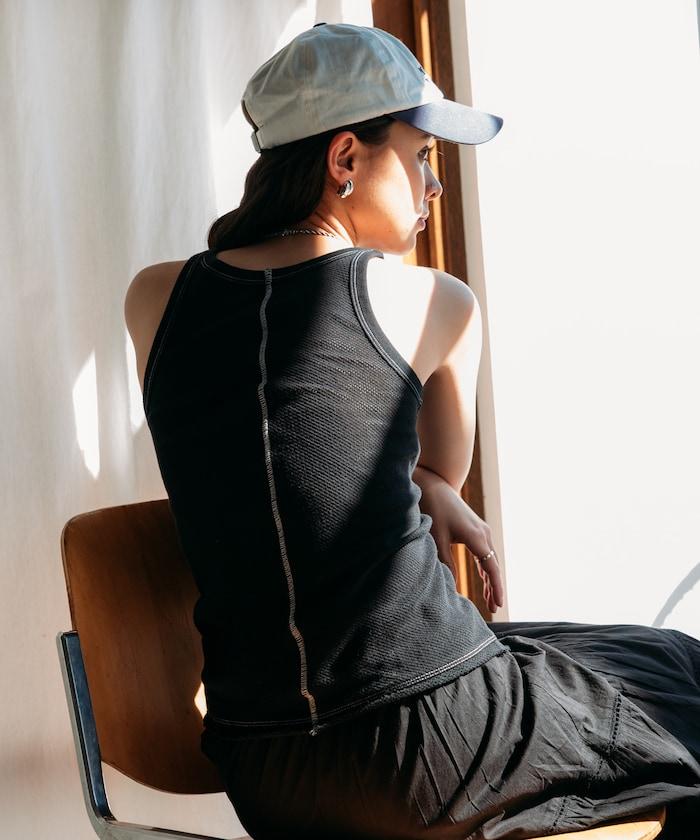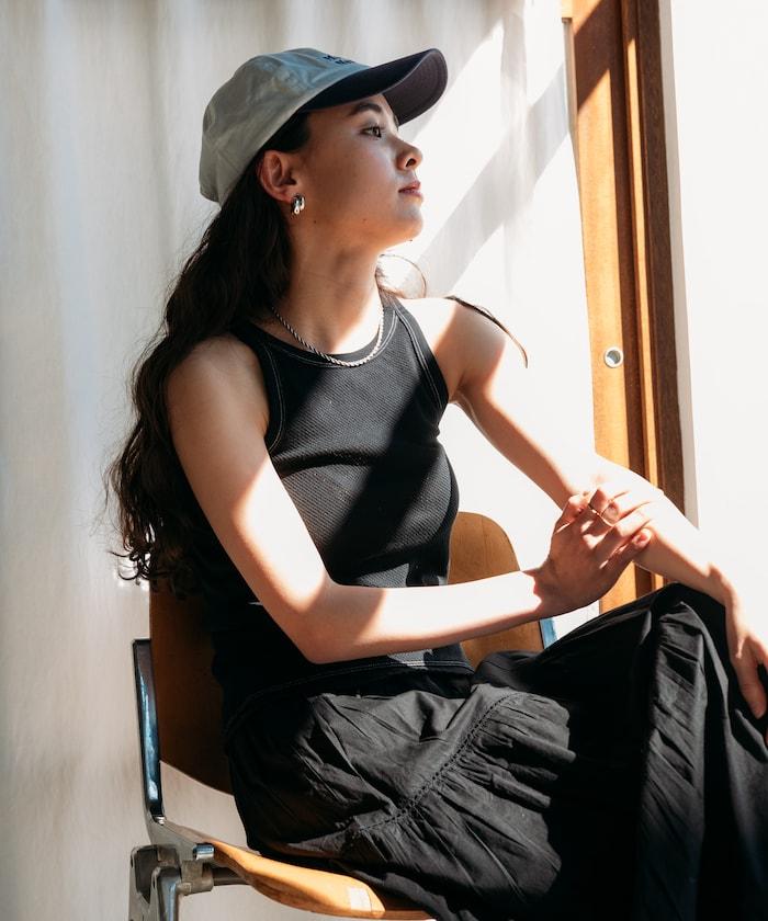 即使作為內搭穿著,也能瞥見肩帶和下襬,增添時尚休閒感。
