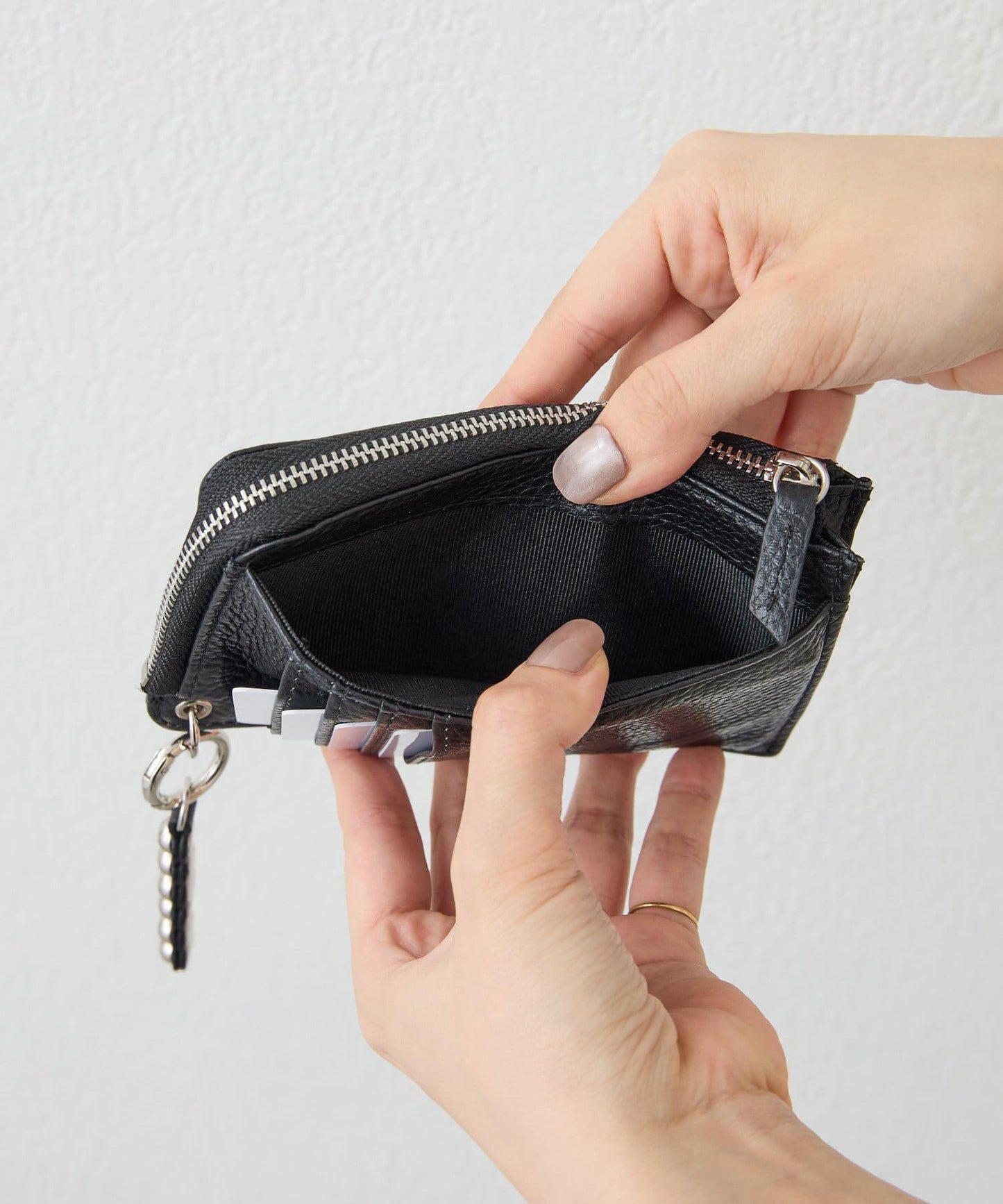 內側和零錢包內都有一個小夾層,便於查看裡面的物品。