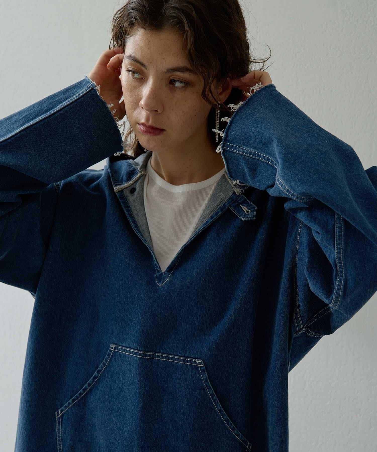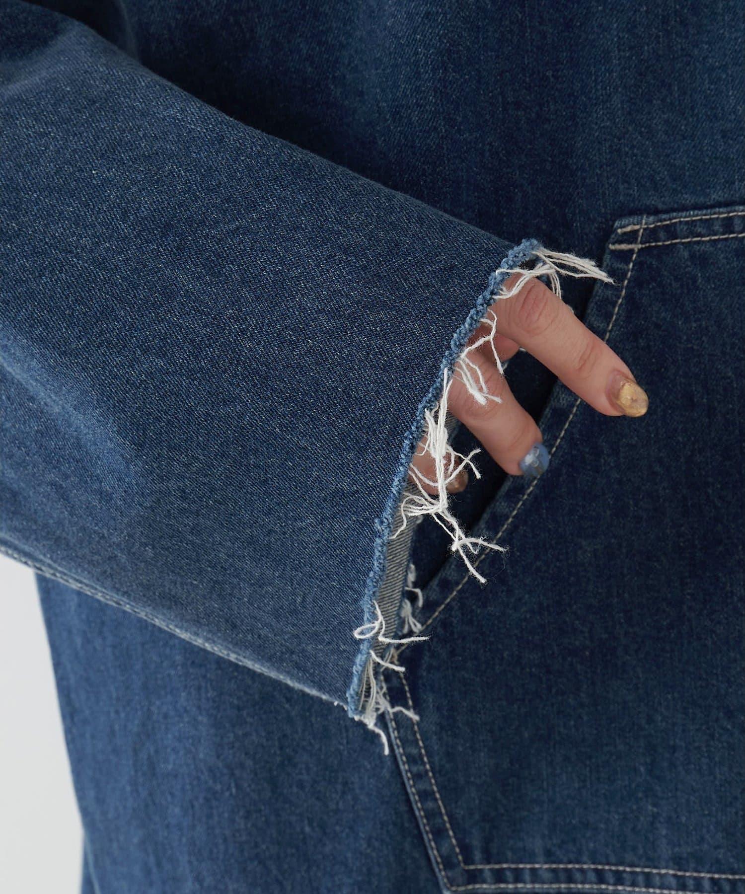 袖口和下襬在晾乾前被剪掉,形成自然的鏤空效果。