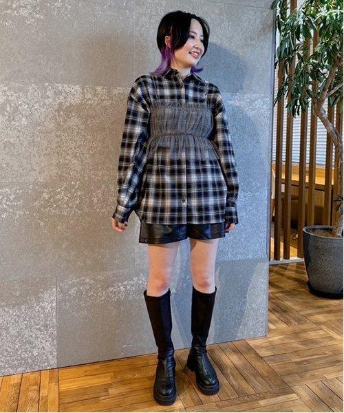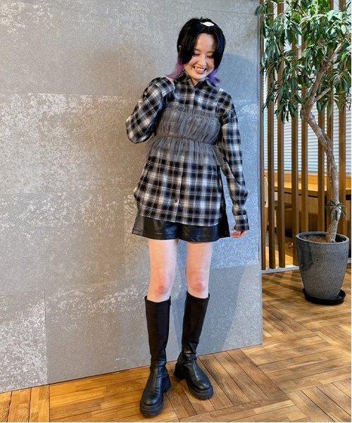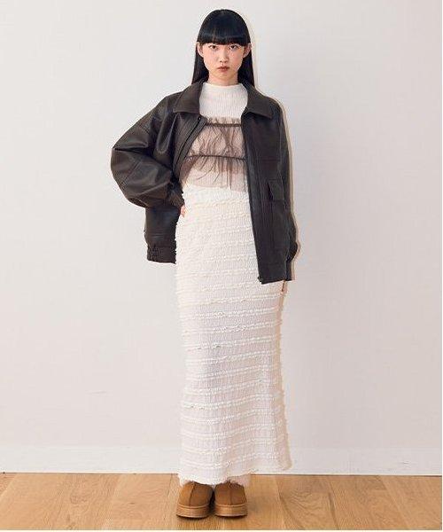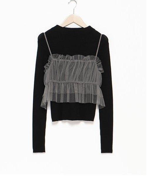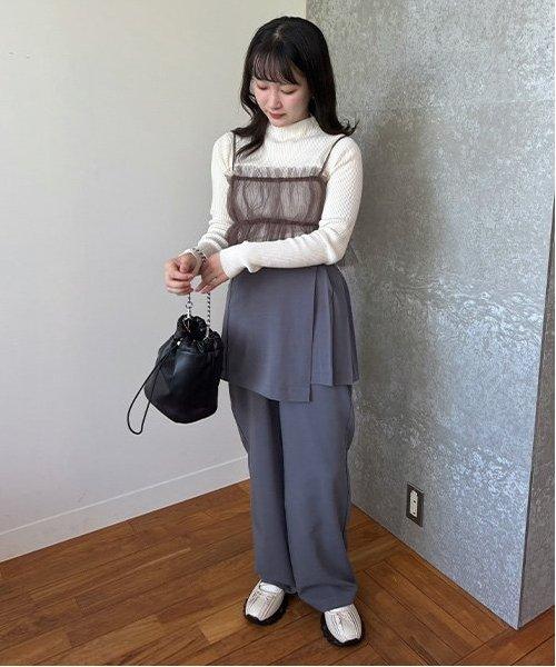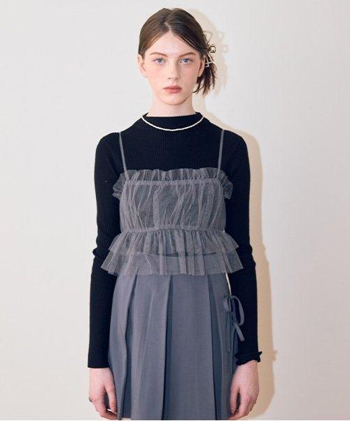 半身裙採用彈力恰到好處的薄紗,褶邊部分輪廓優美 ◎內搭針織衫採用柔軟的彈力紗線,打造貼身輪廓,可成熟穿著。