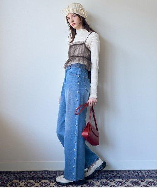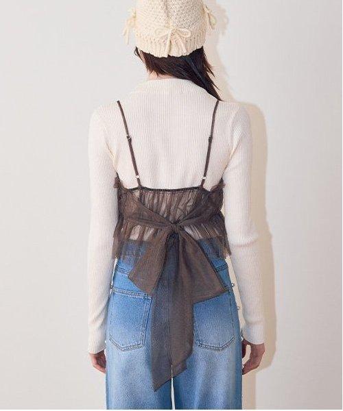 薄紗半身裙具有季節性的通透感,可系在背後的絲帶為後視圖增添了可愛的點綴。套頭針織衫的羅紋質感是一大亮點,即使單穿也能搭配各種服飾。