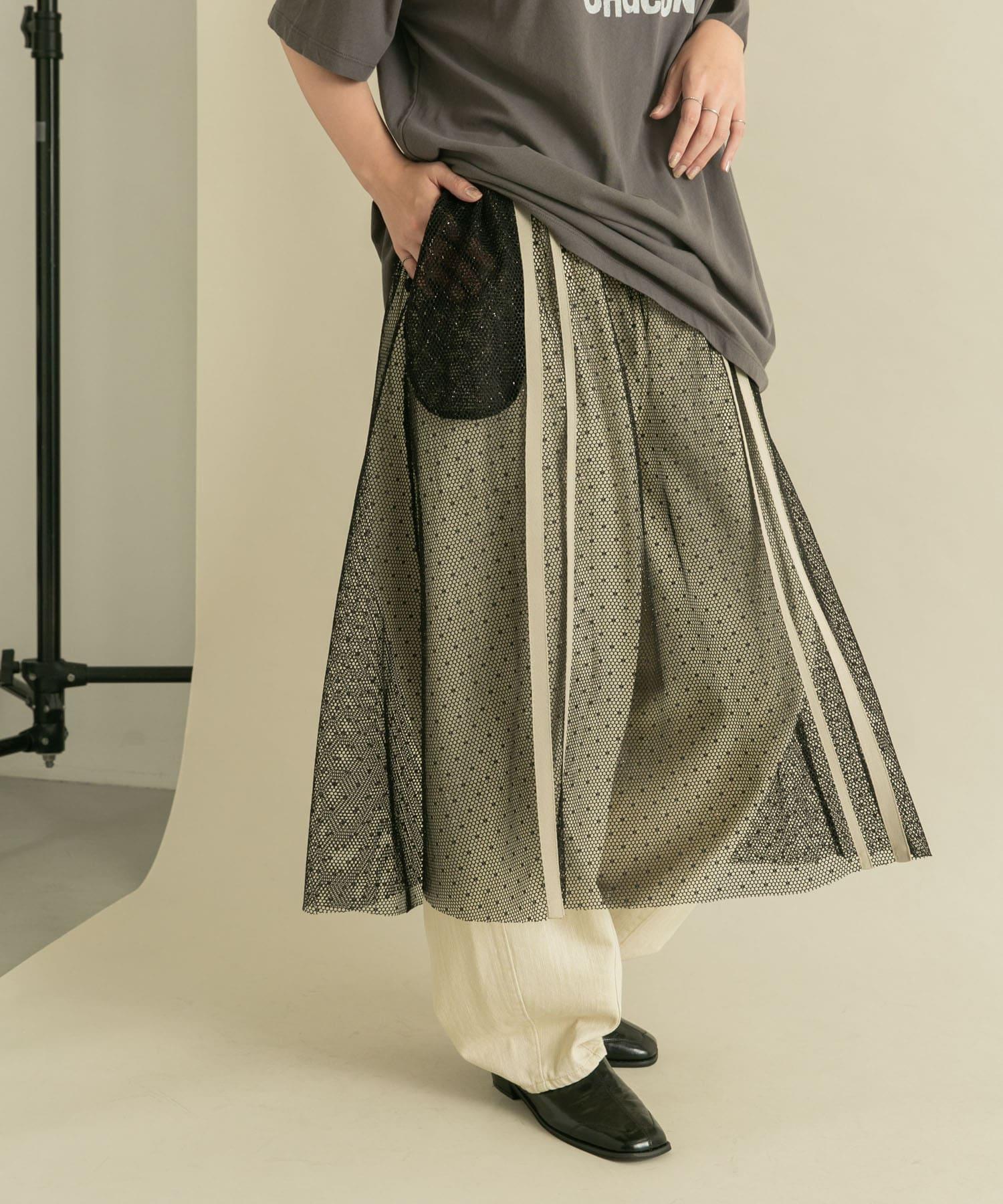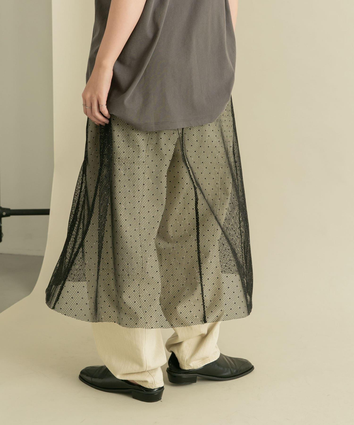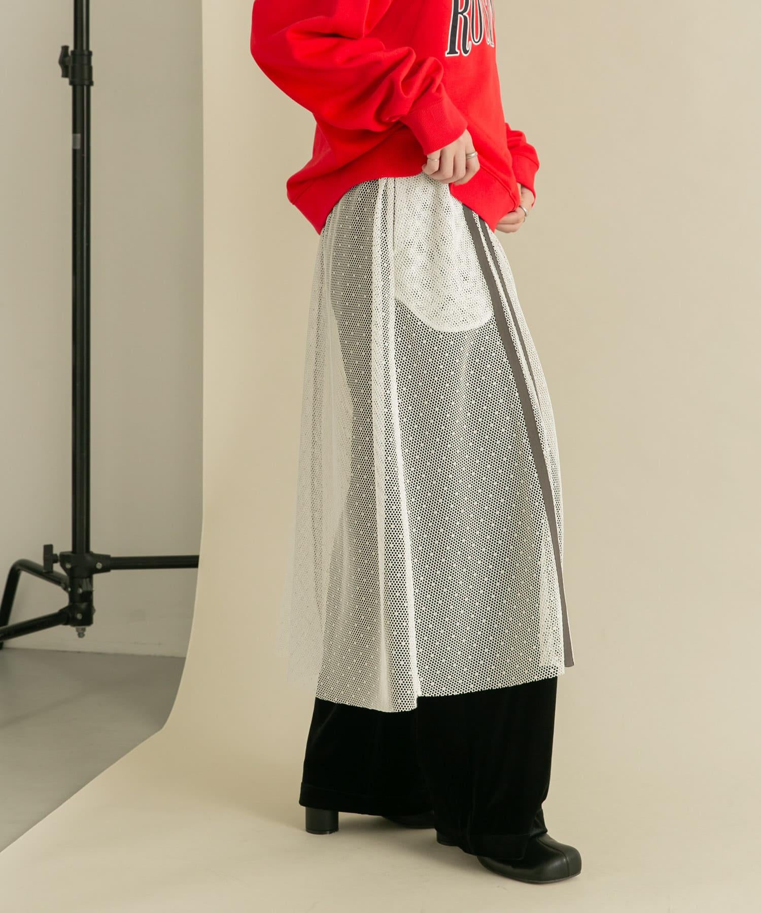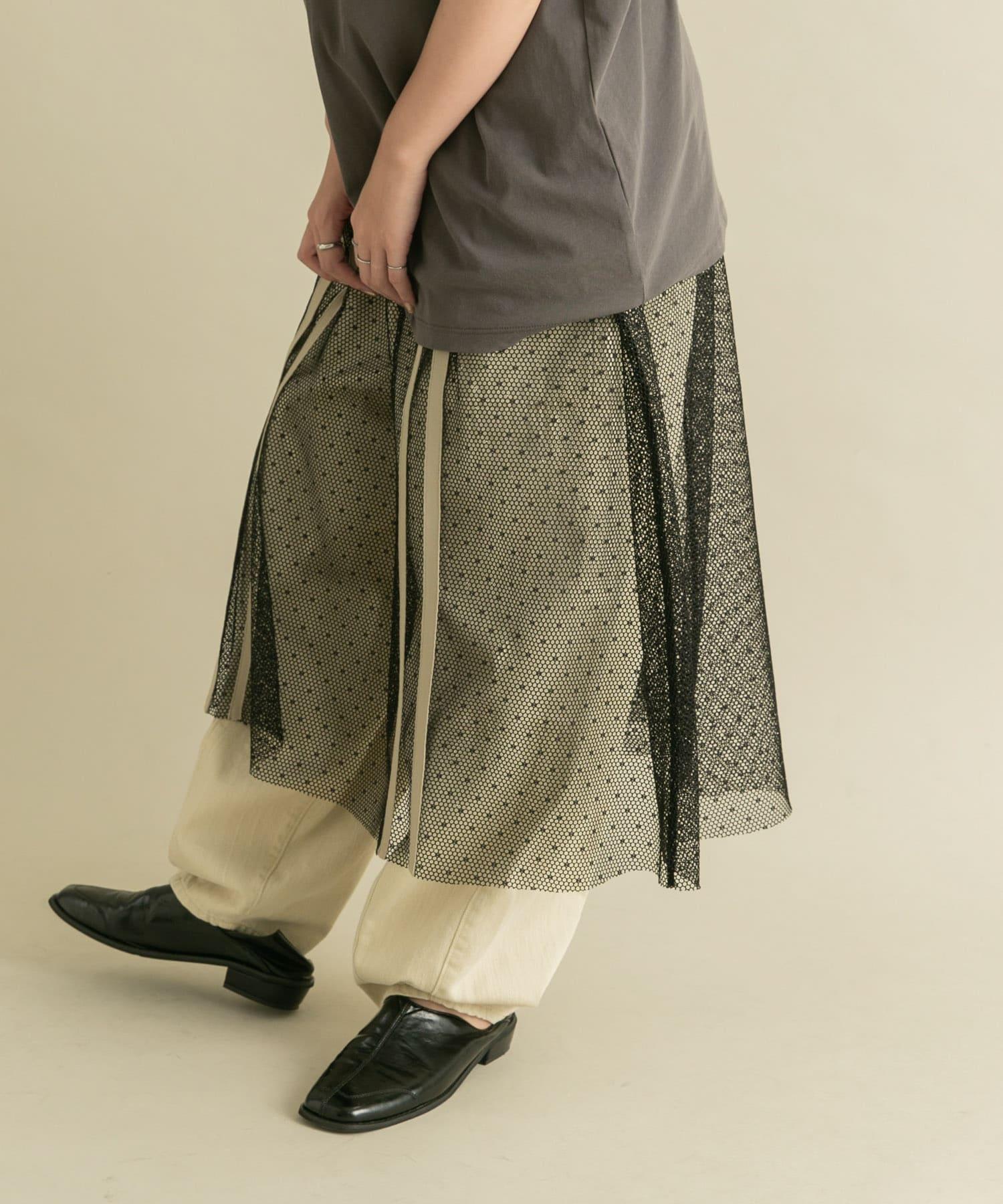 這款裙子一定會為你的造型錦上添花。採用網眼布材質,配以薄紗裝飾,前幅以同色系膠帶點綴。隨性的口袋也是一大亮點。建議多層搭配。