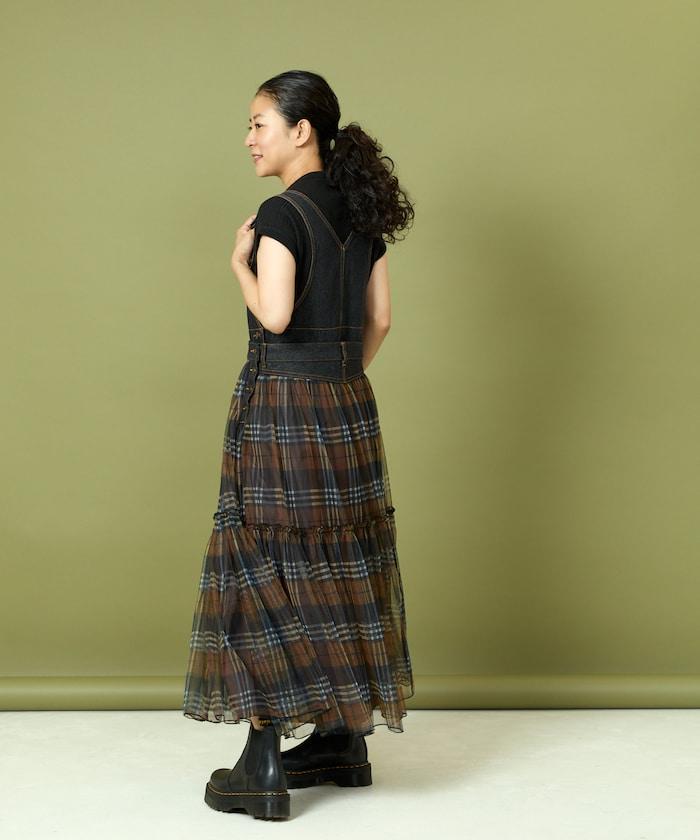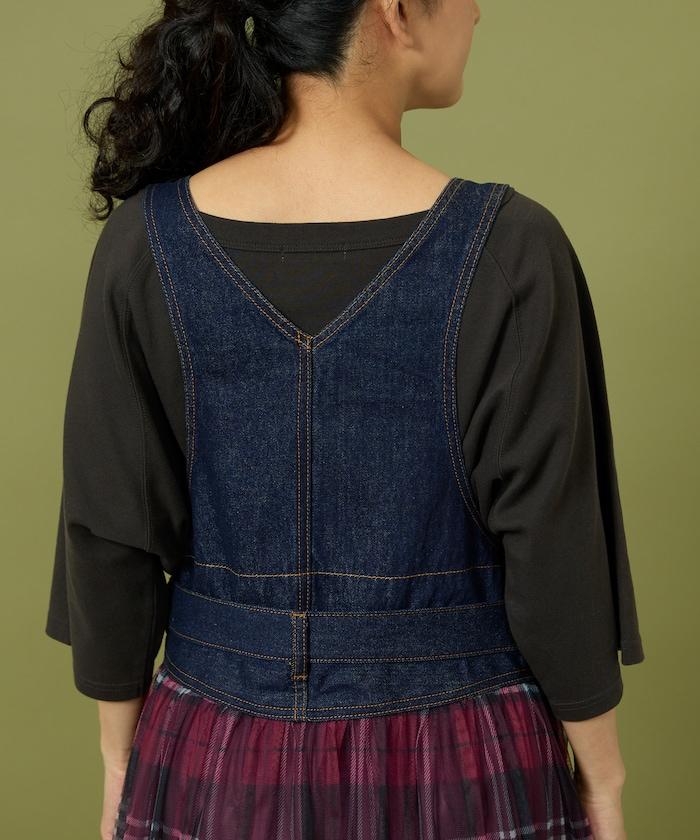 腰部有一個紐扣,上下可分開穿著。上衣部分可以像馬甲一樣穿出層次感,裙子部分可以穿出時髦的格紋裙。