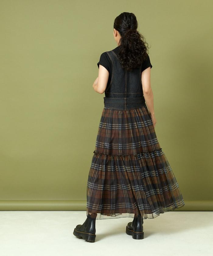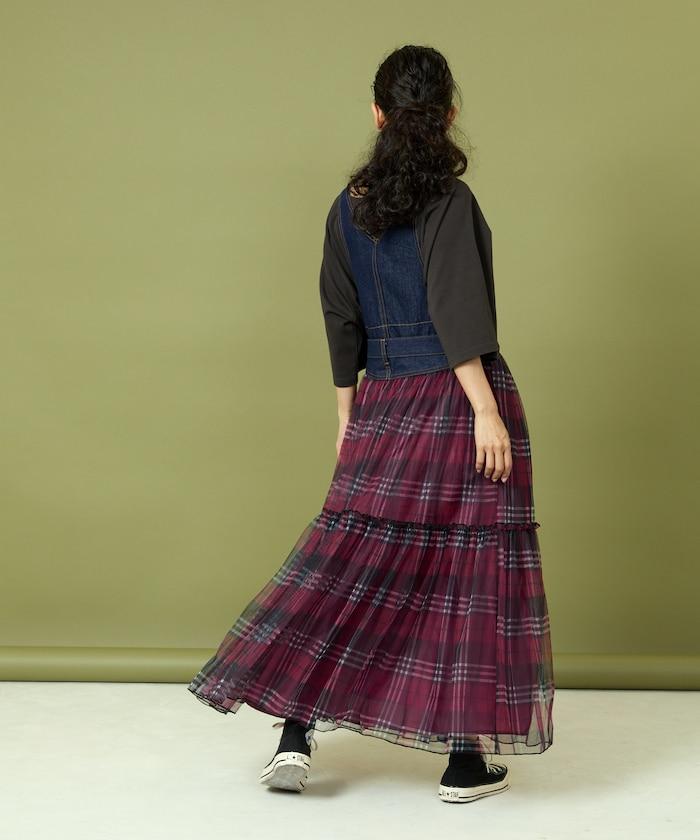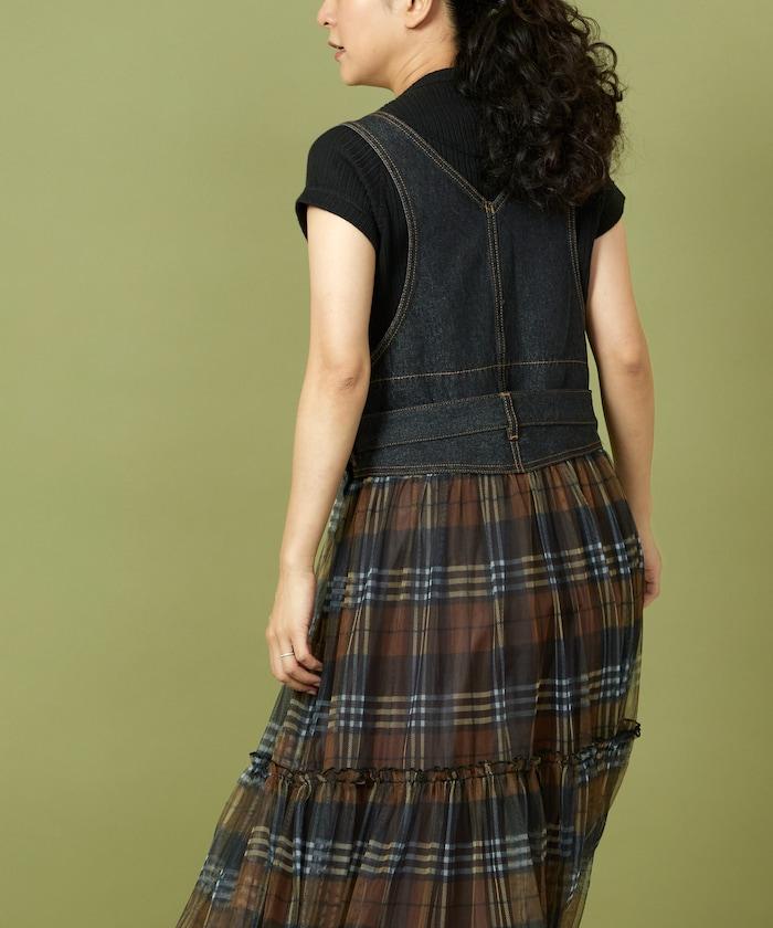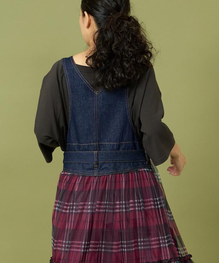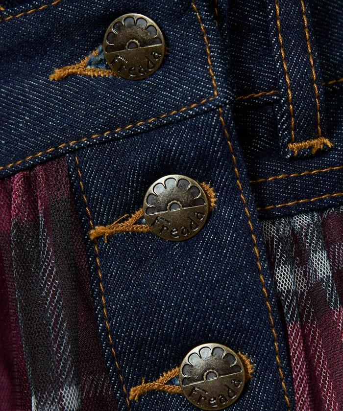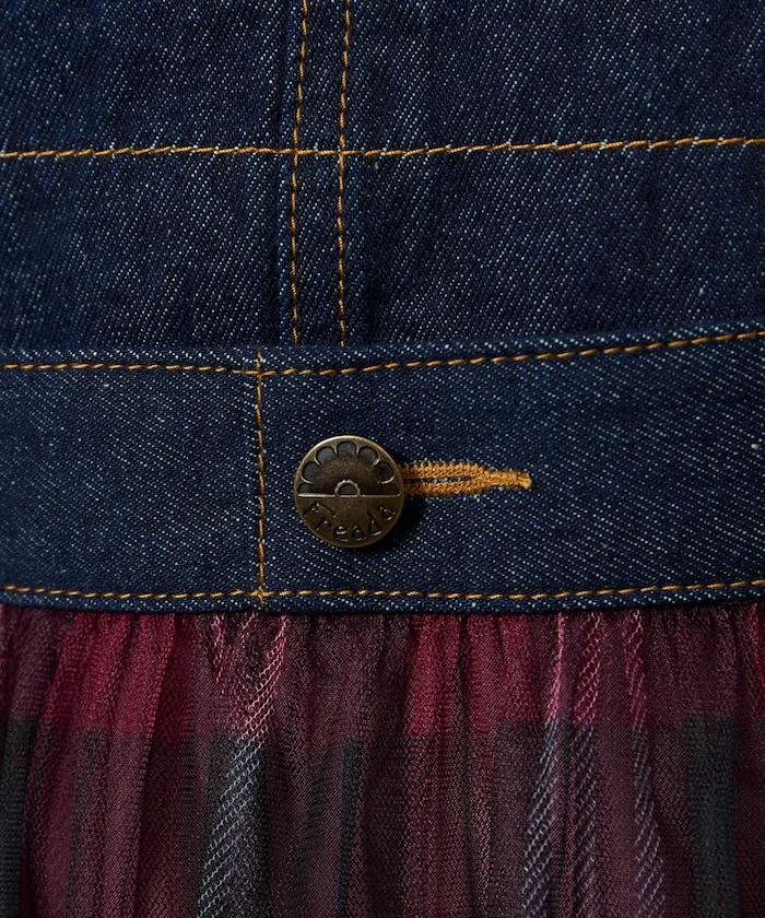 牛仔布與薄紗、硬質面料與柔軟面料的不平衡組合,是一個可愛的對比點。