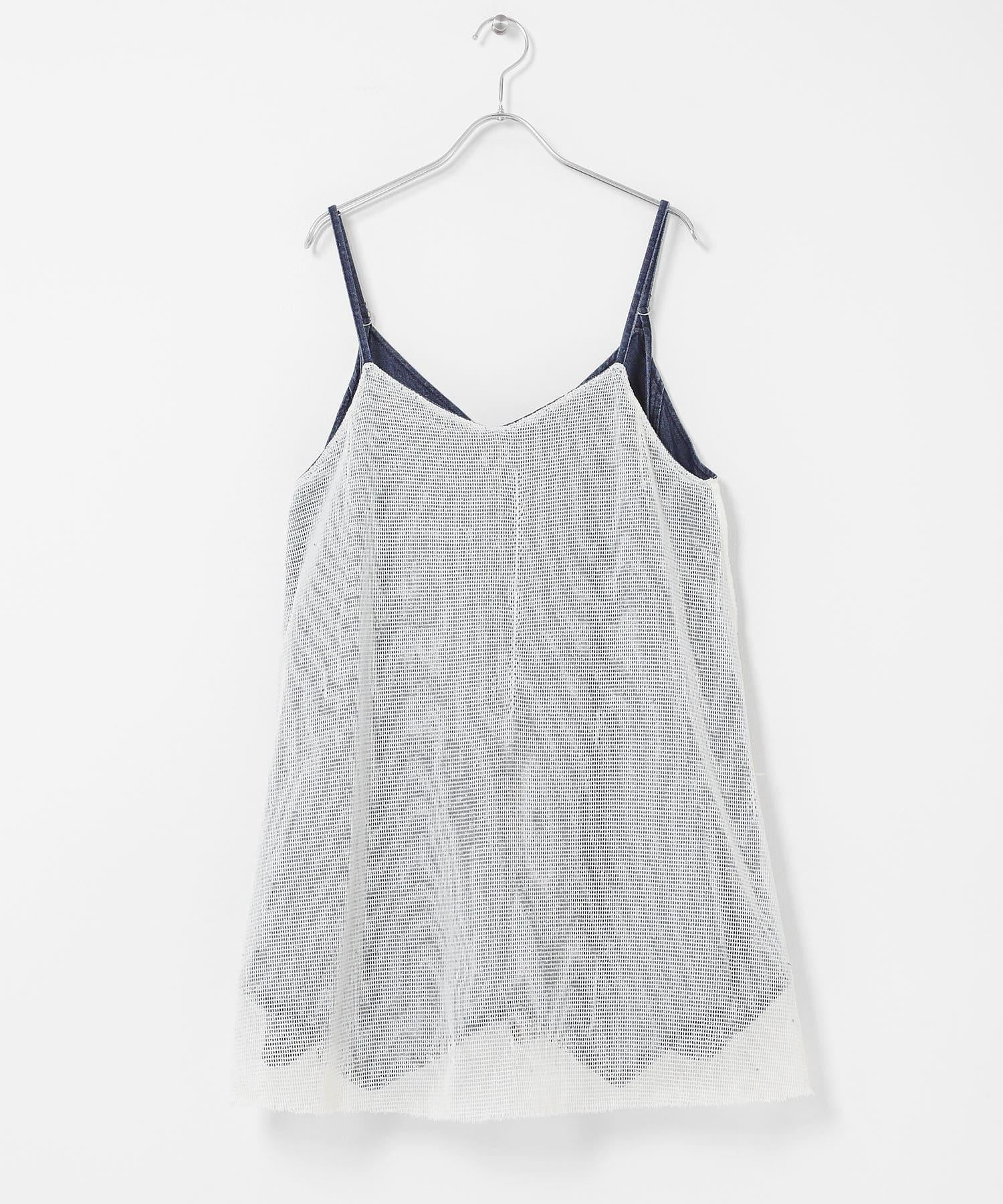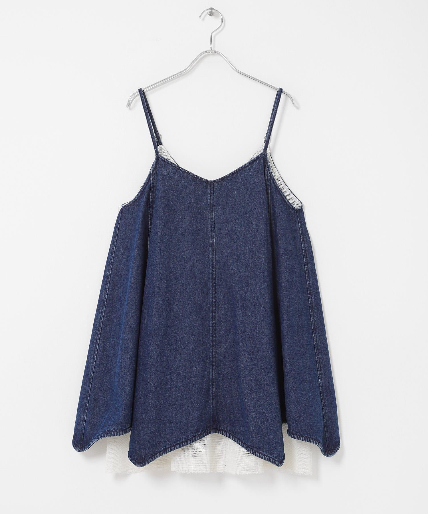 網紗拼接牛仔吊帶連衣裙