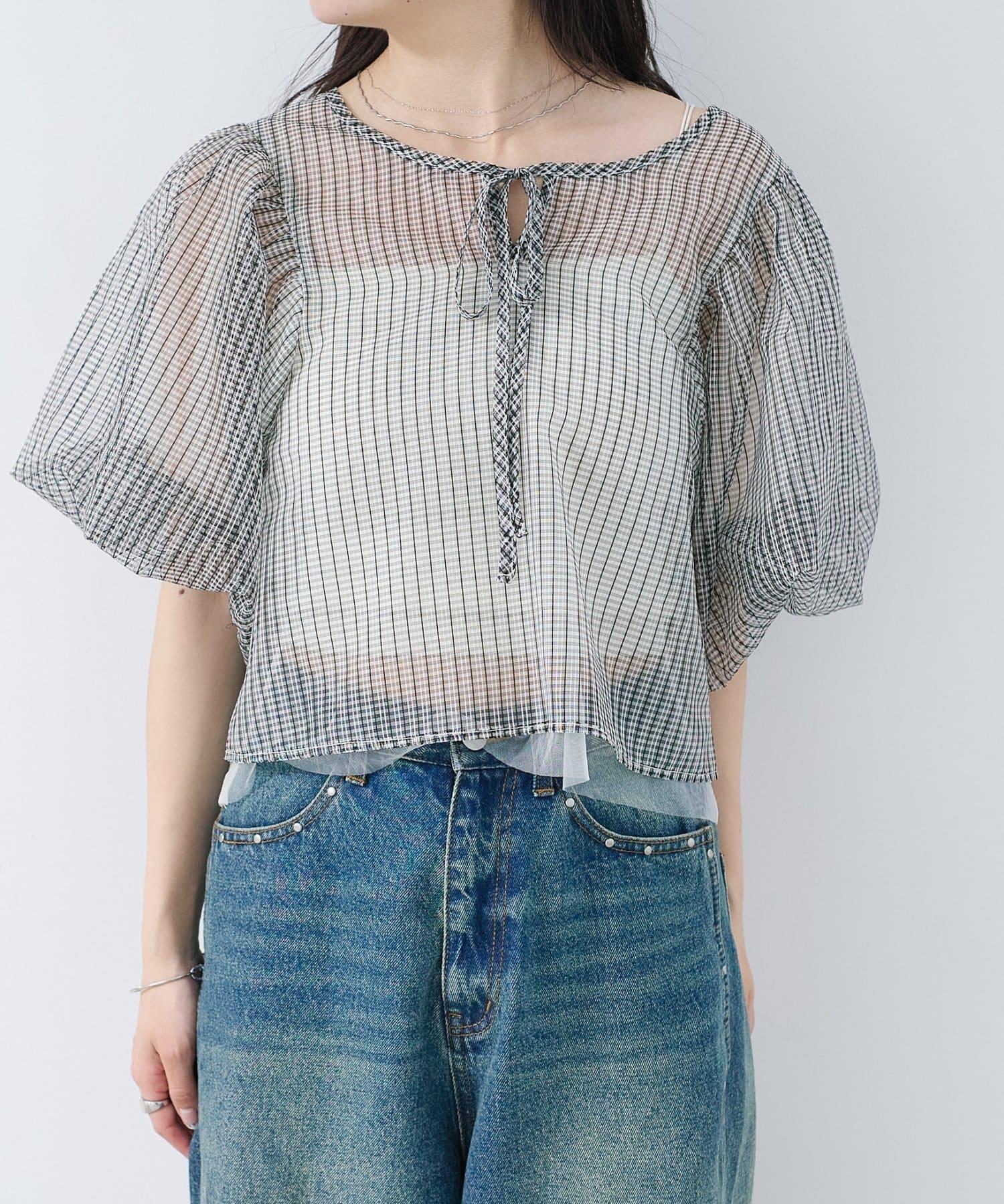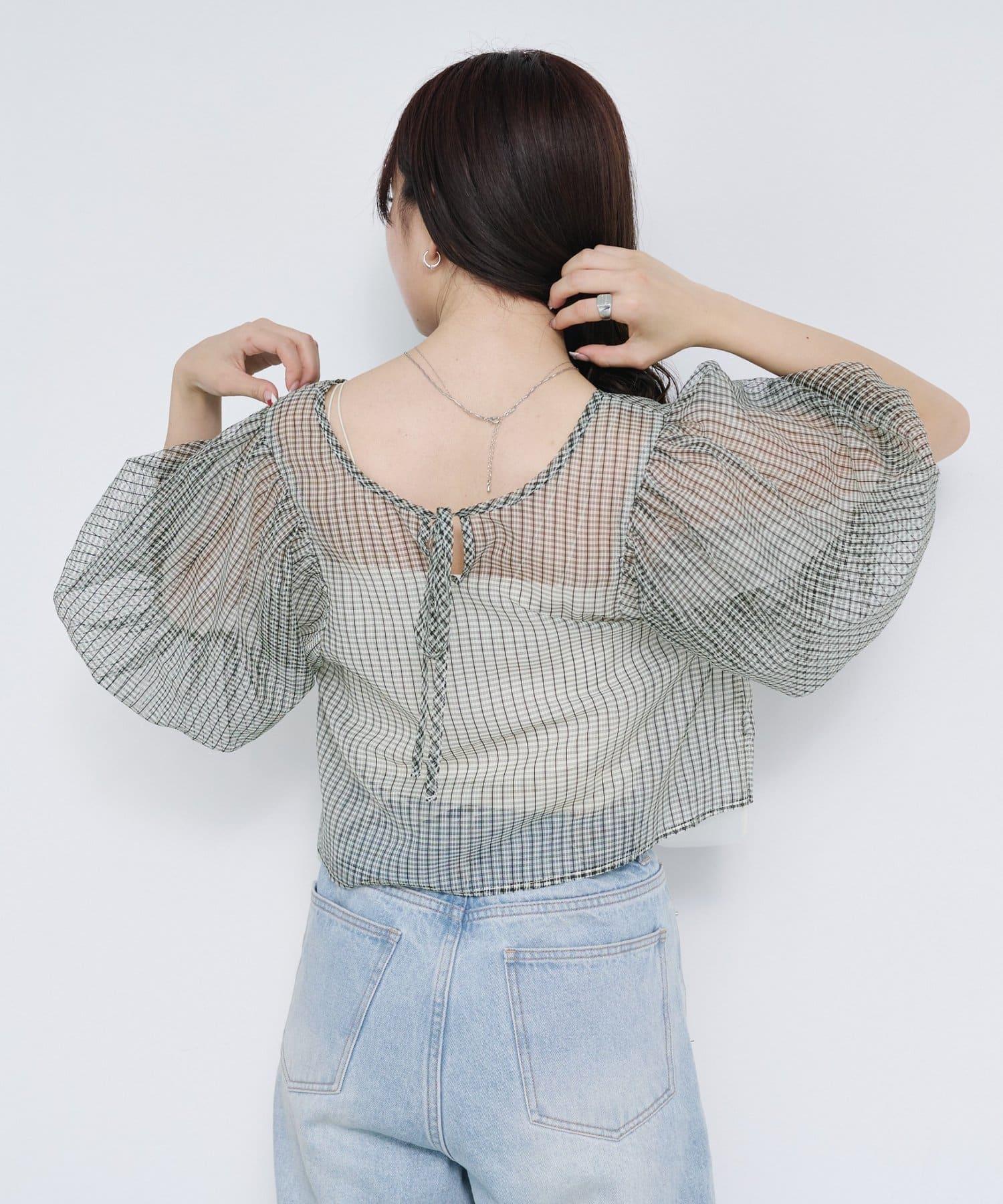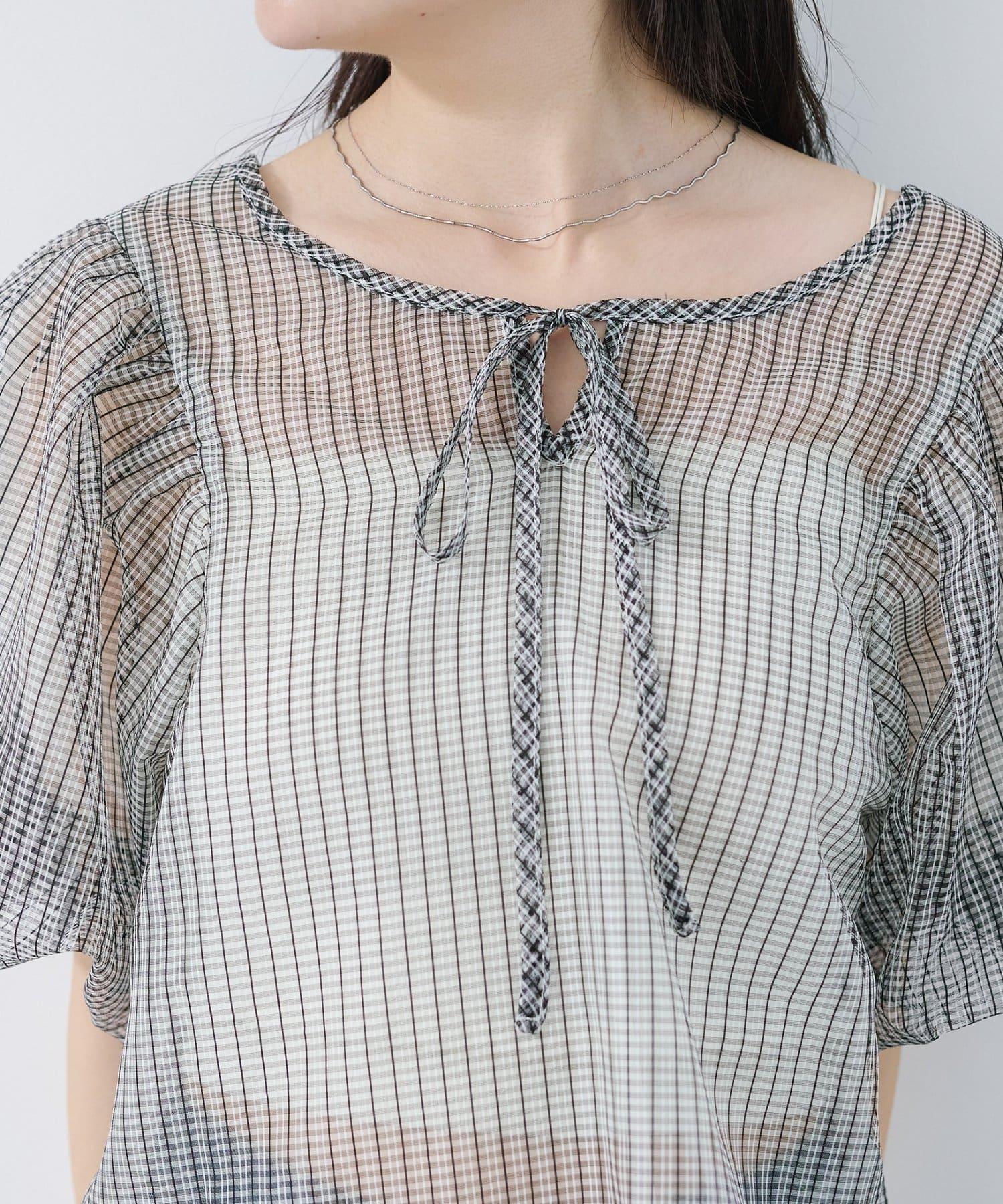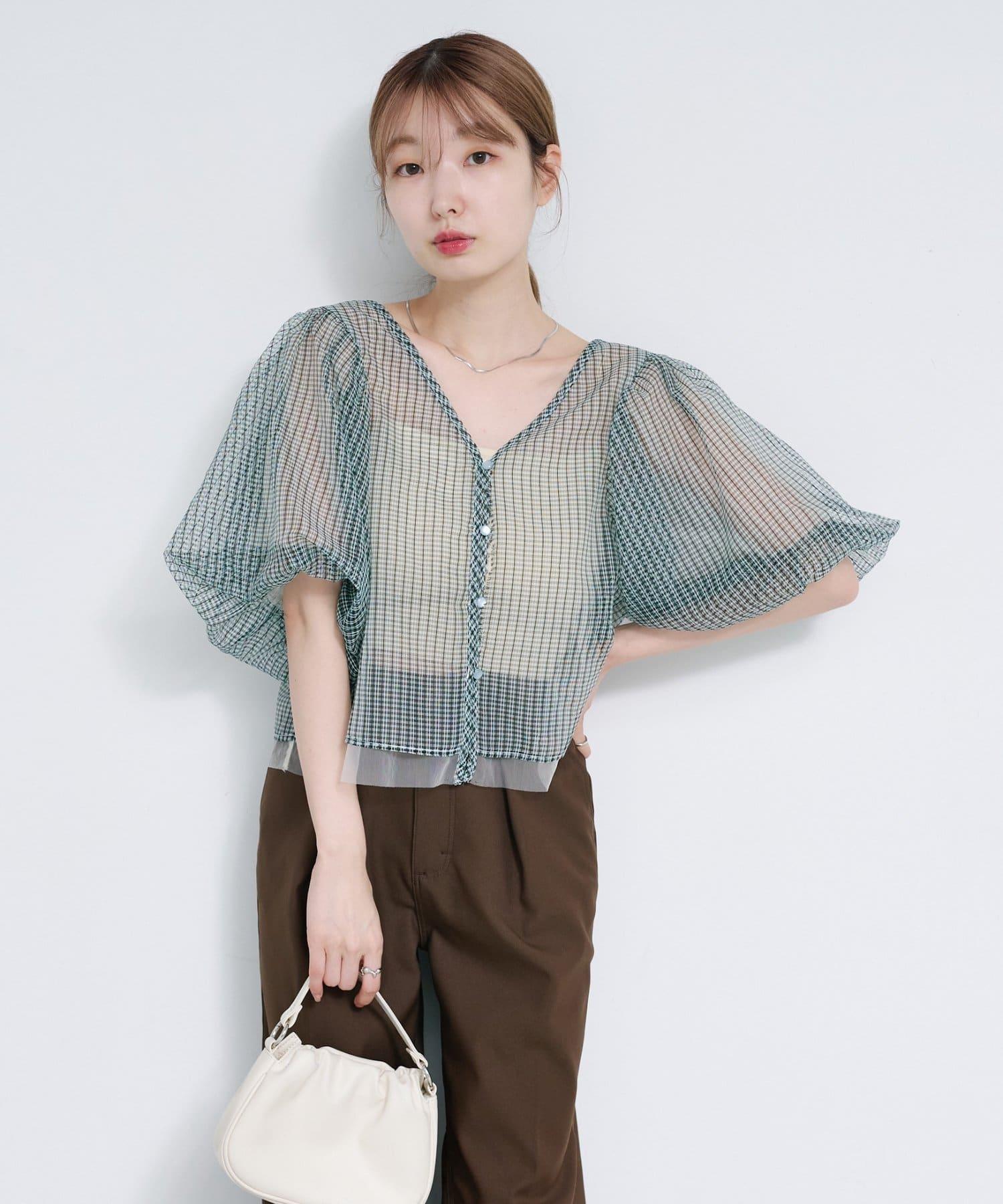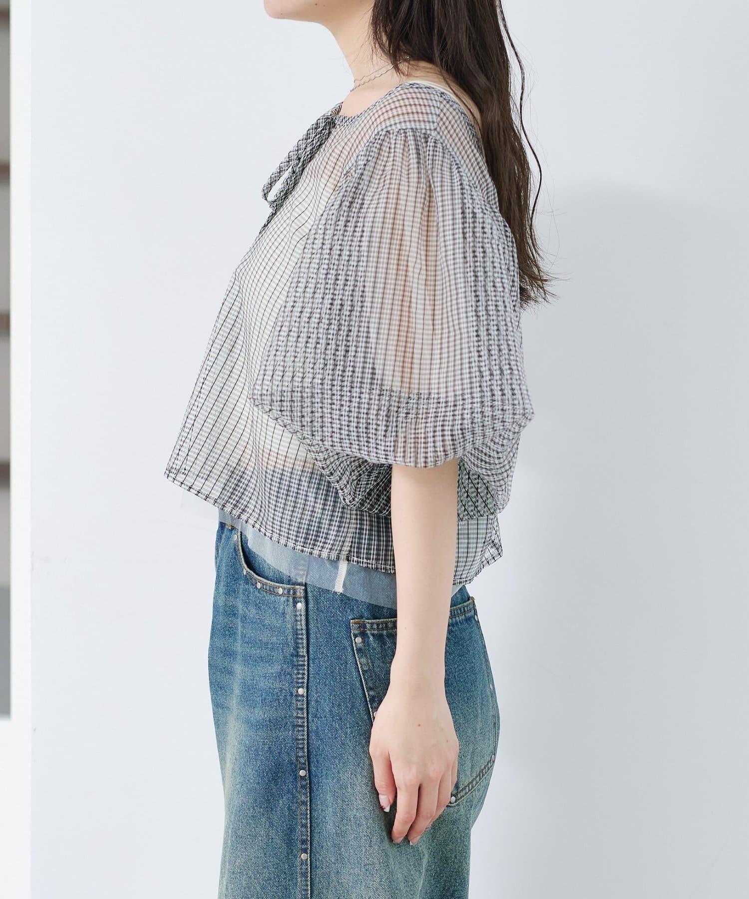 輕盈、柔美的蓬袖襯衫由精緻的棋盤格薄紗製成。