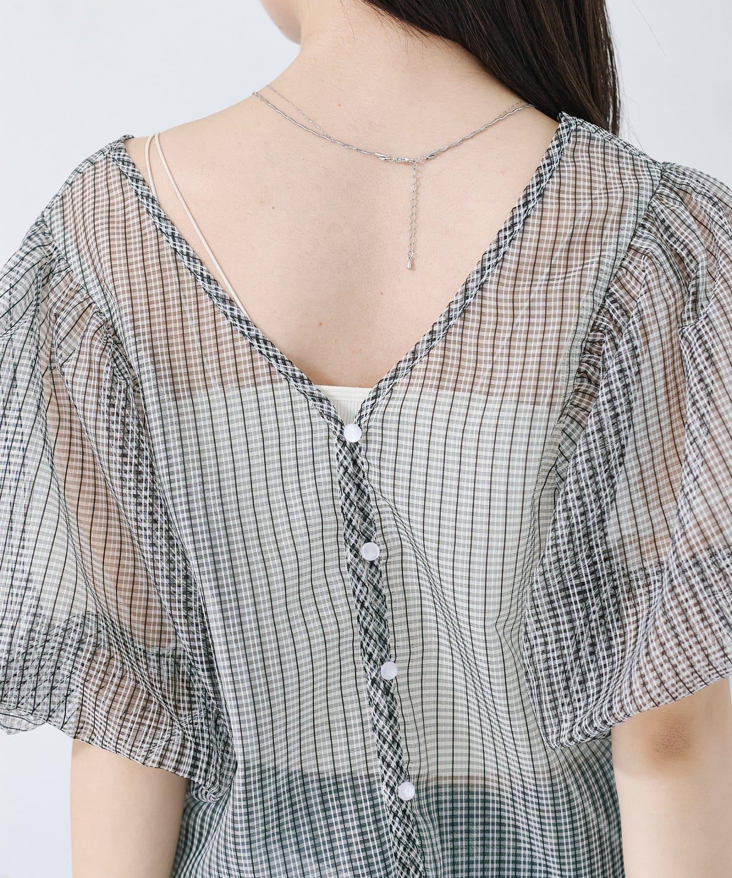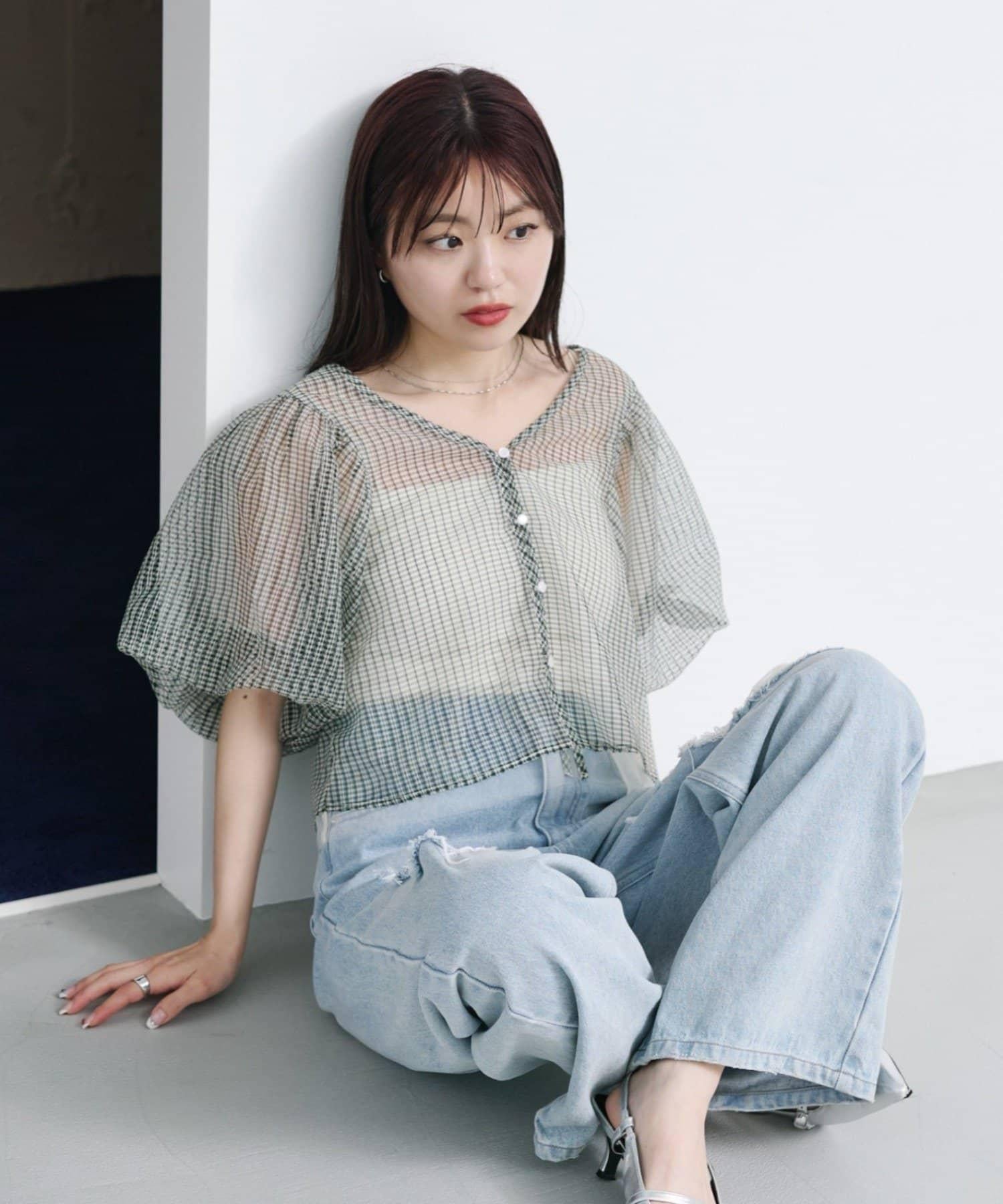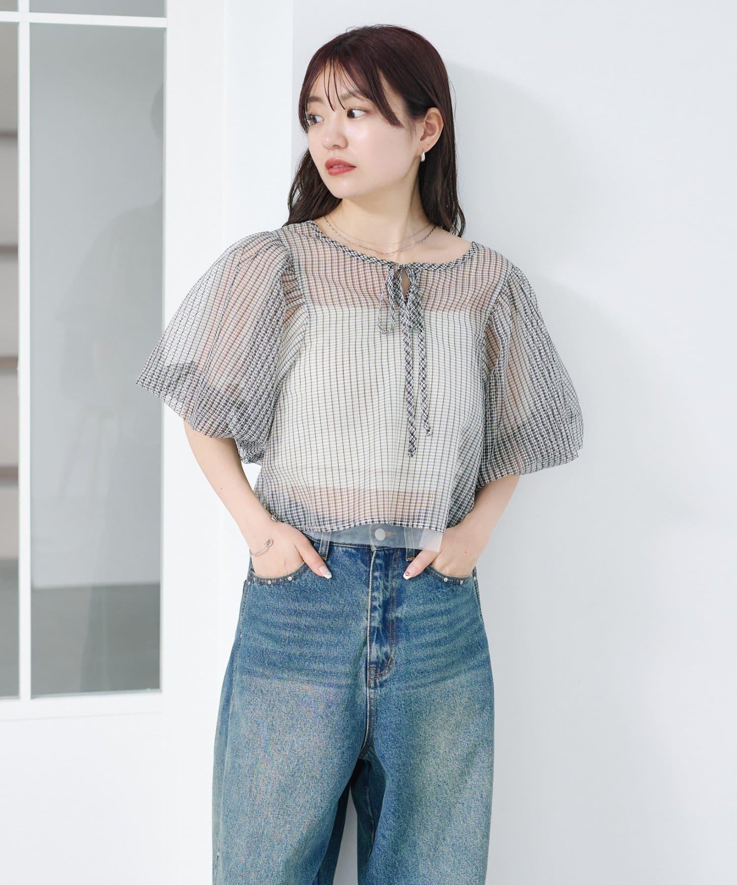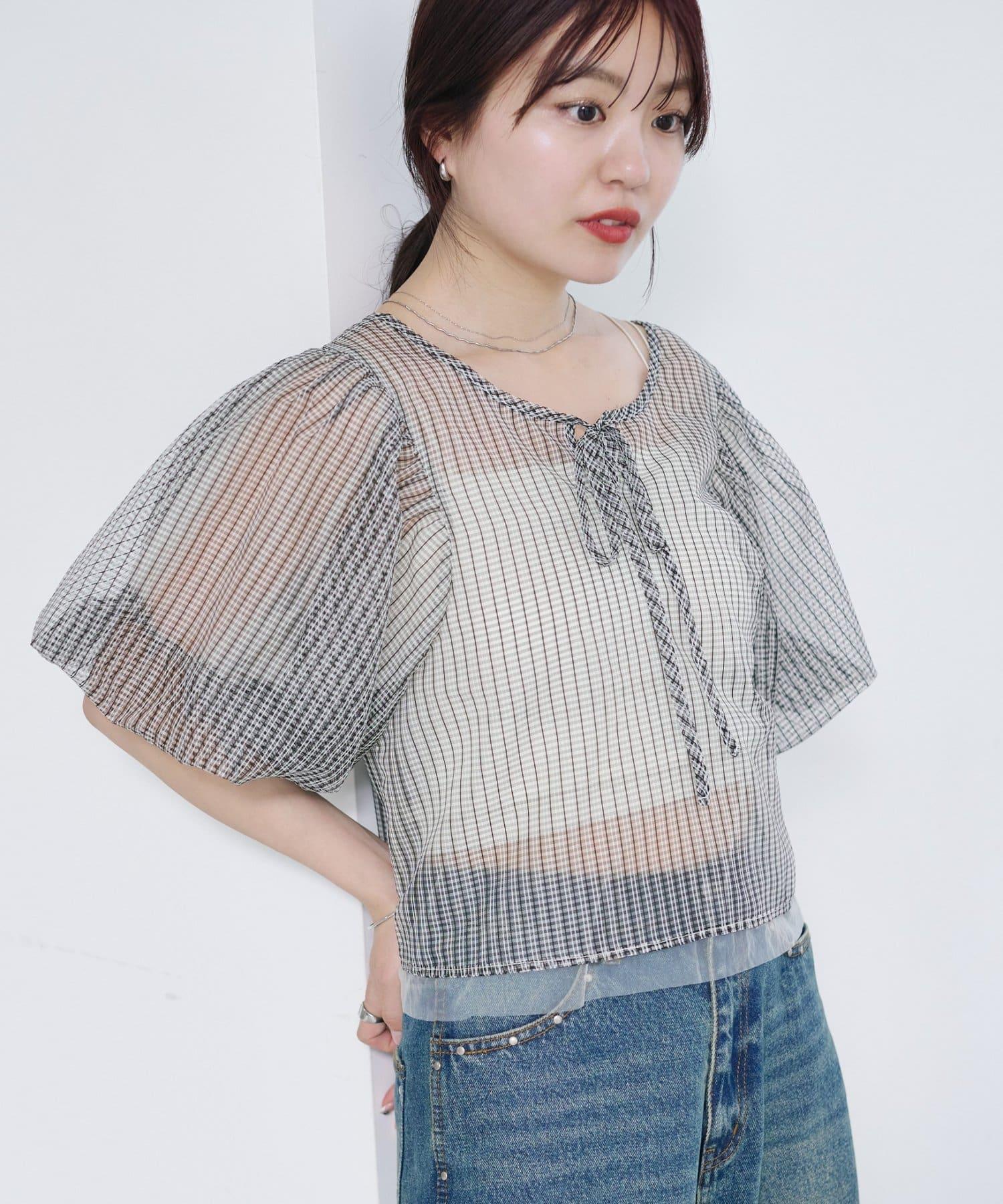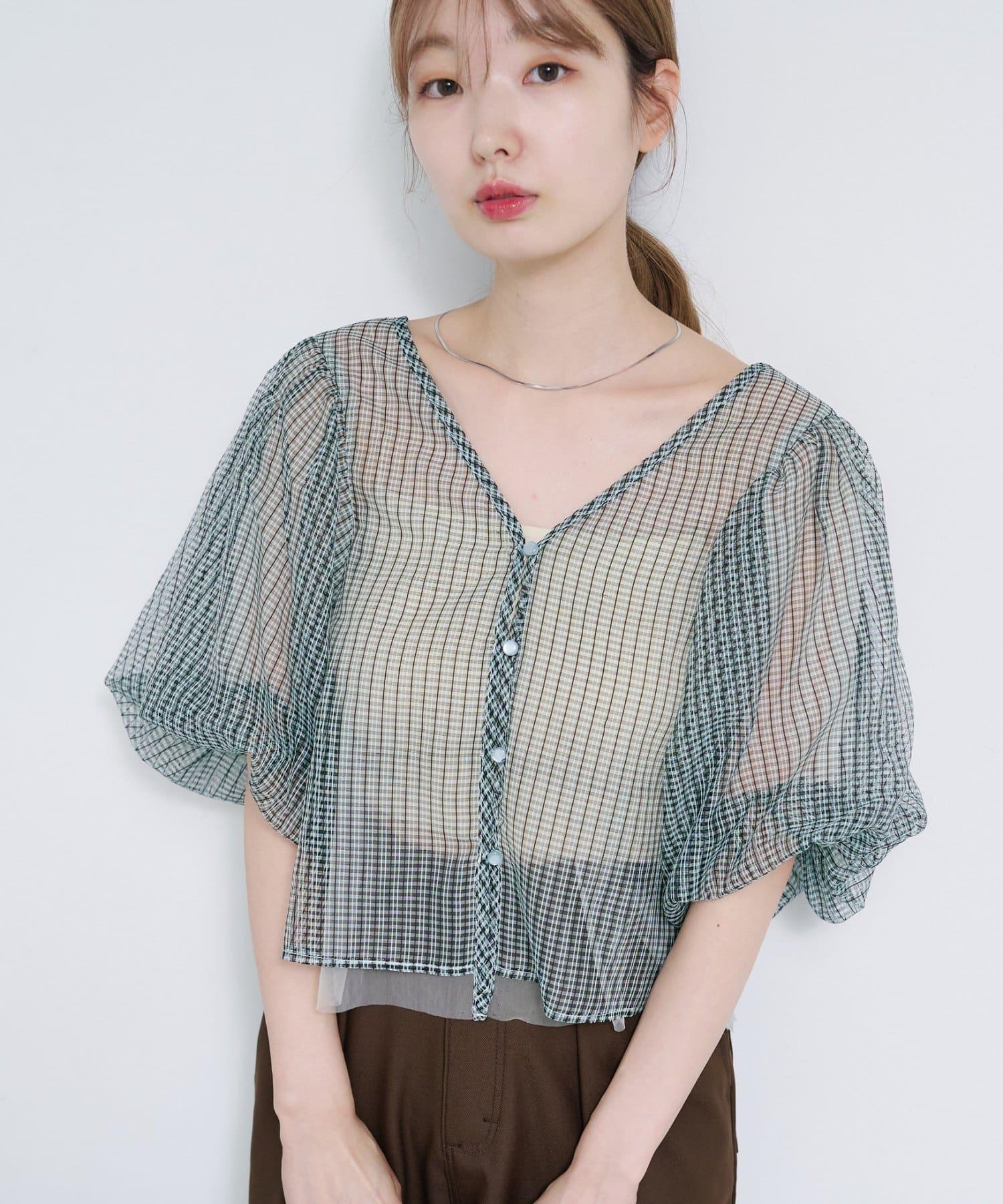 輕盈、柔美的蓬袖襯衫由精緻的棋盤格薄紗製成。