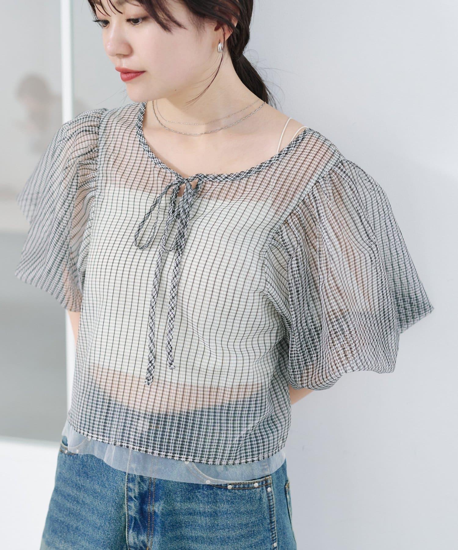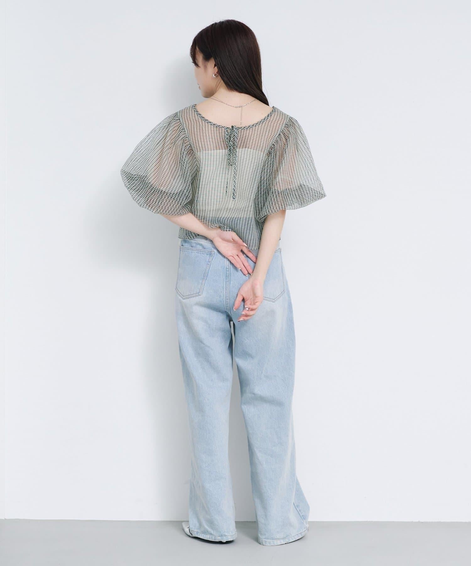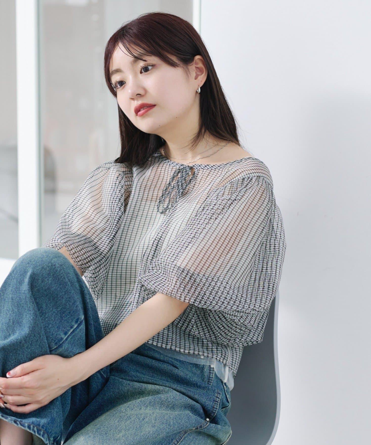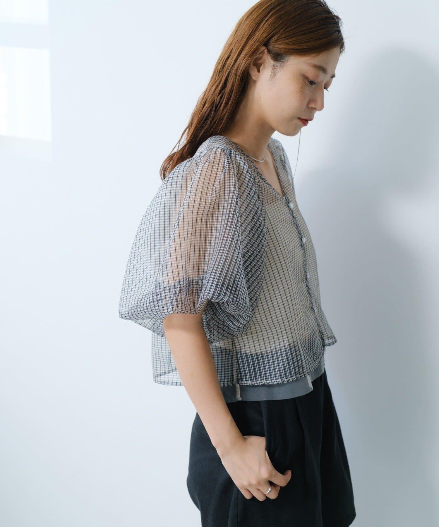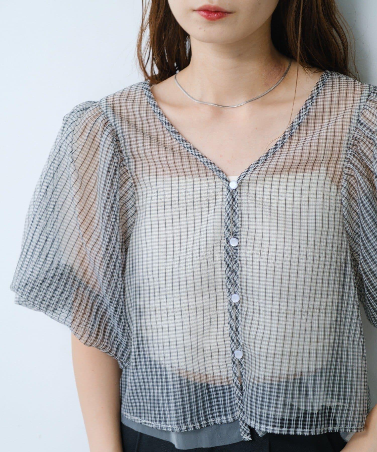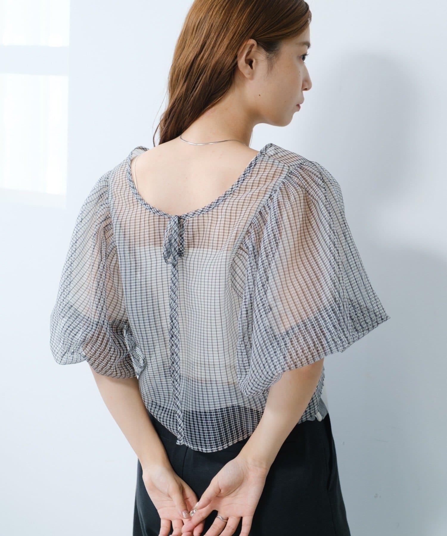 輕盈、柔美的蓬袖襯衫由精緻的棋盤格薄紗製成。