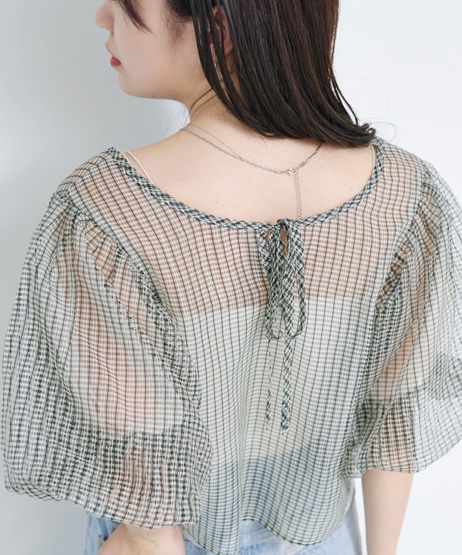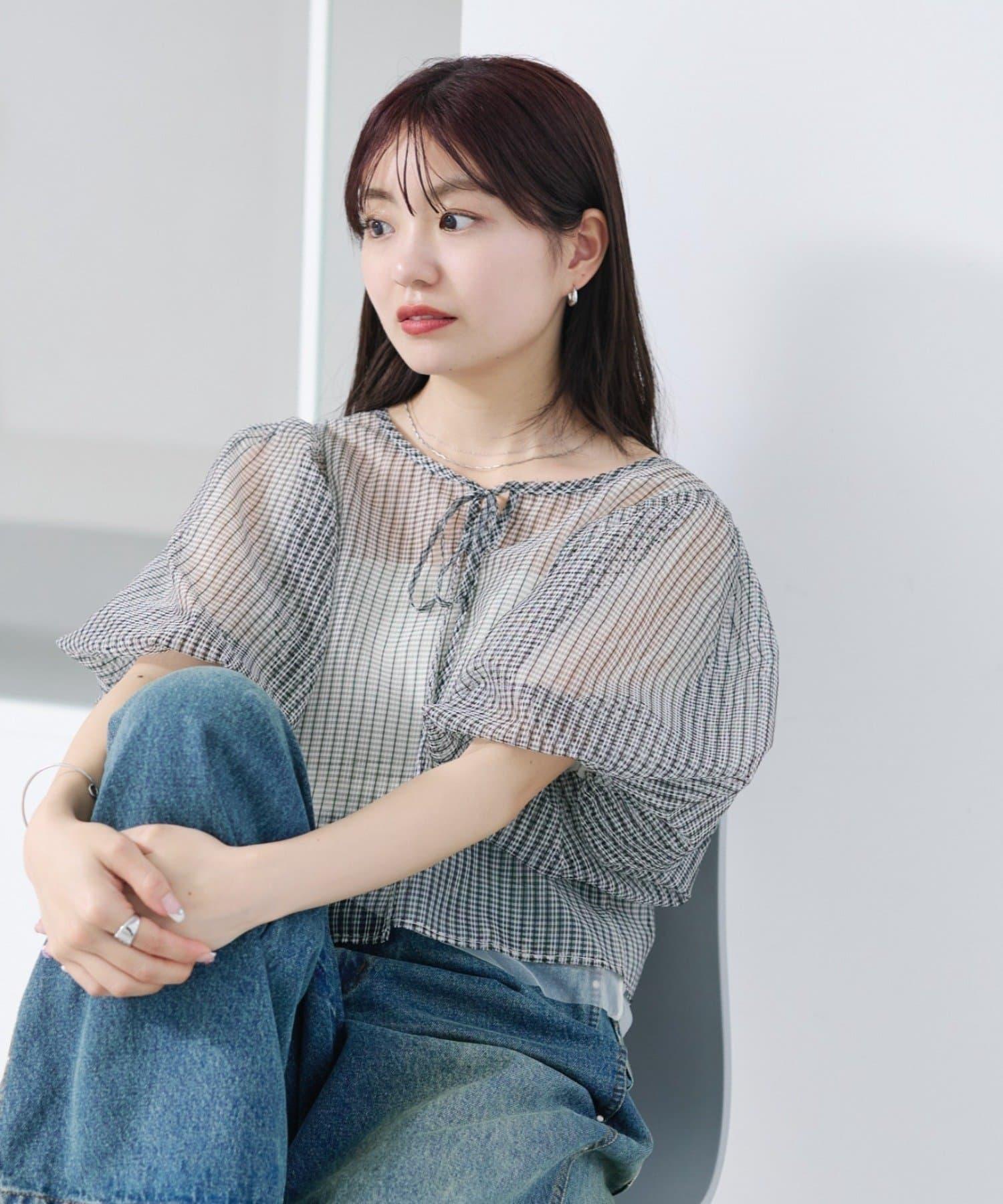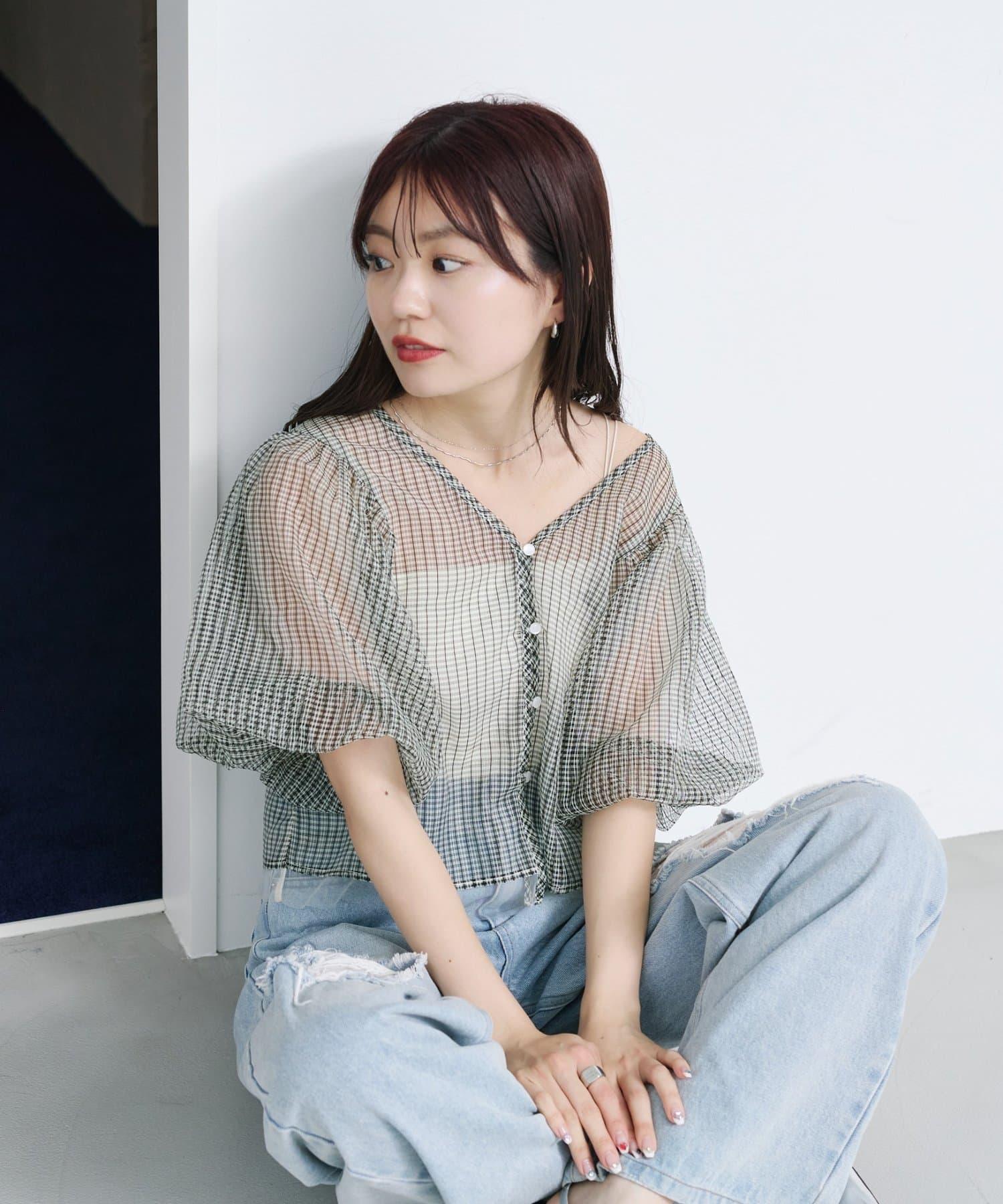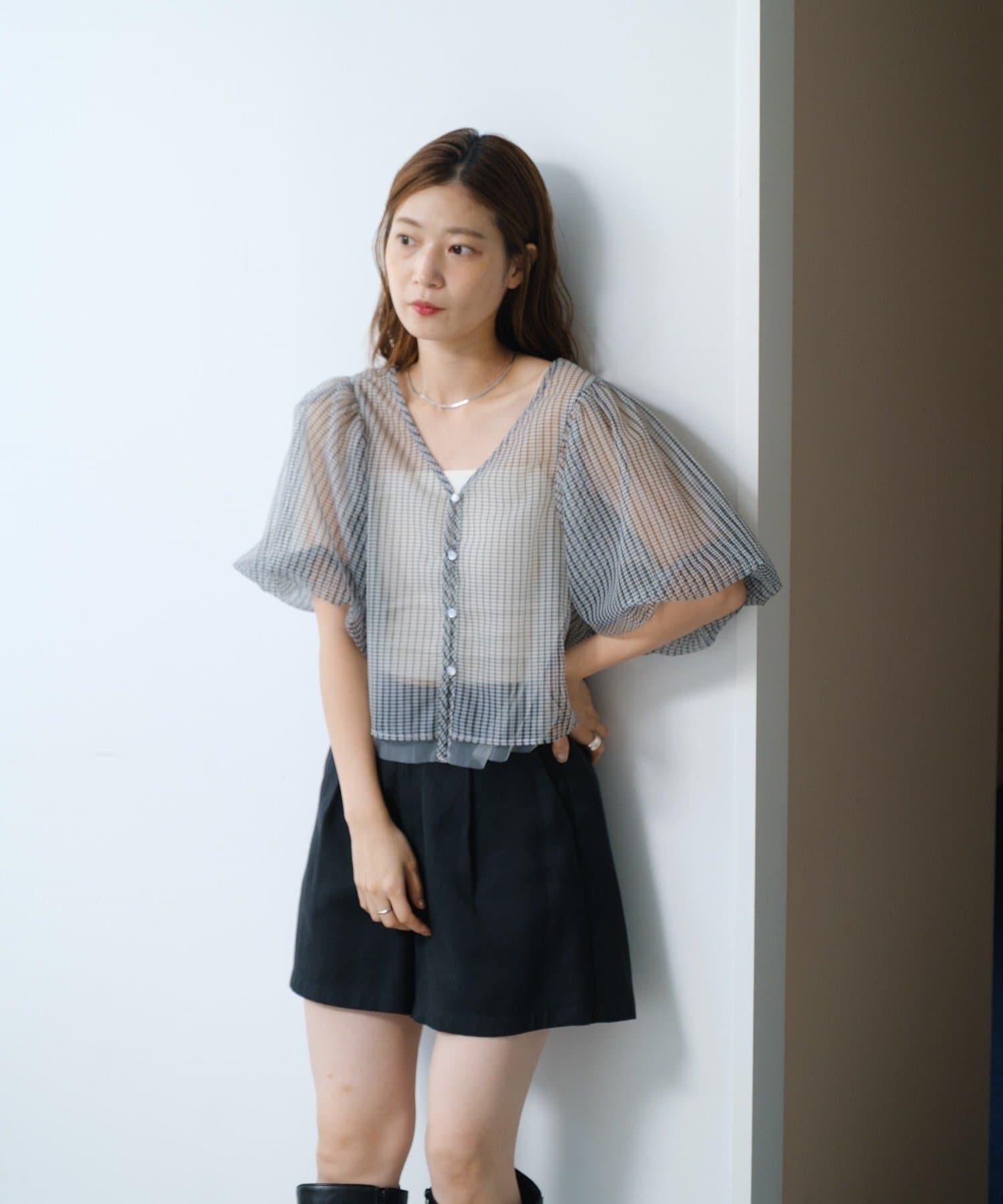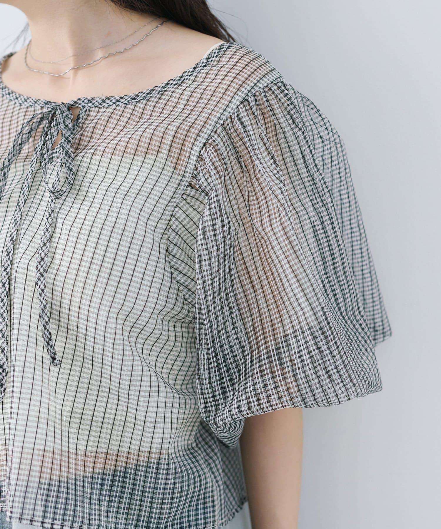 輕盈、柔美的蓬袖襯衫由精緻的棋盤格薄紗製成。