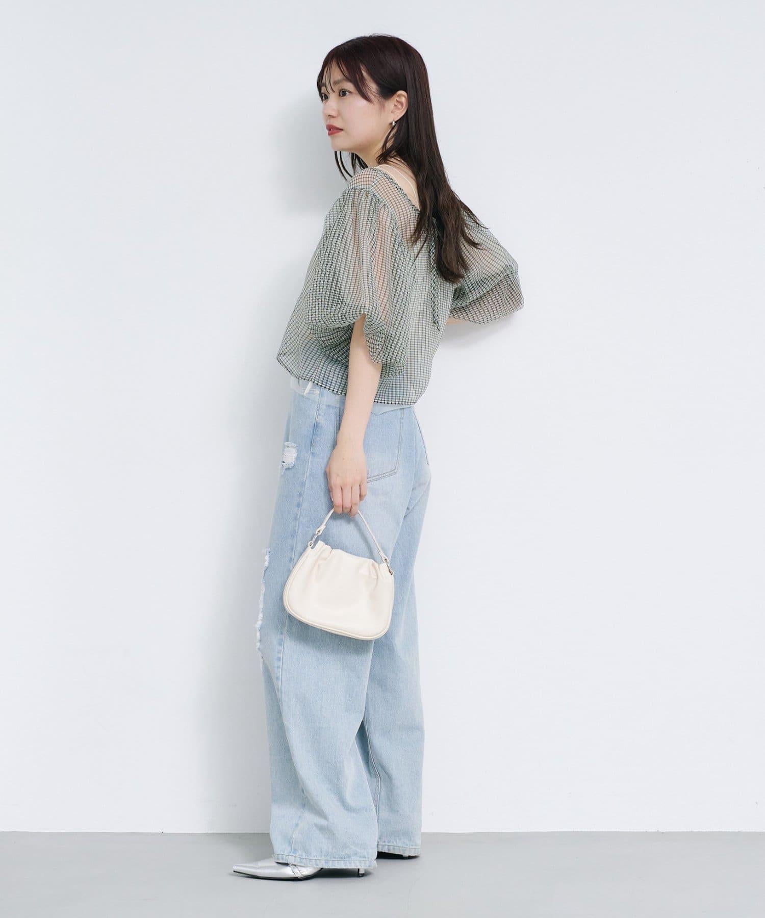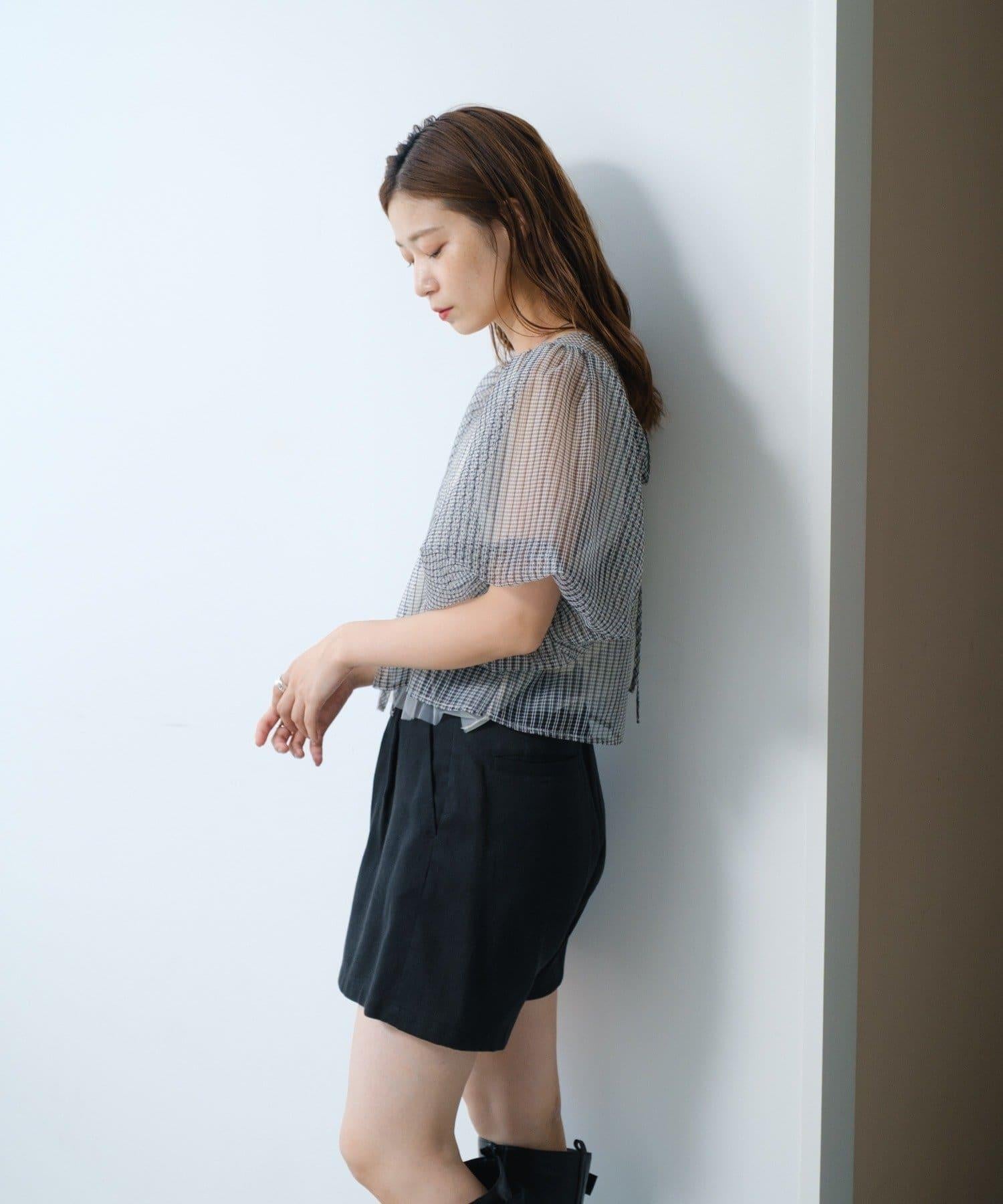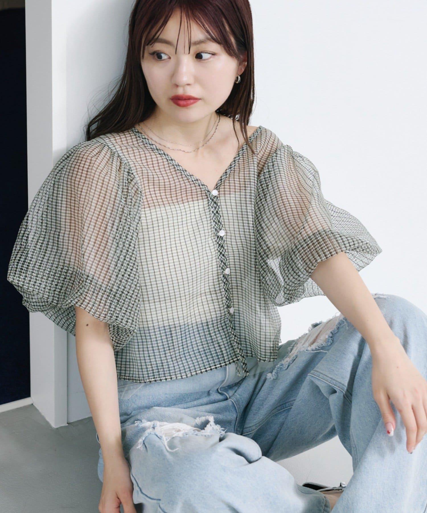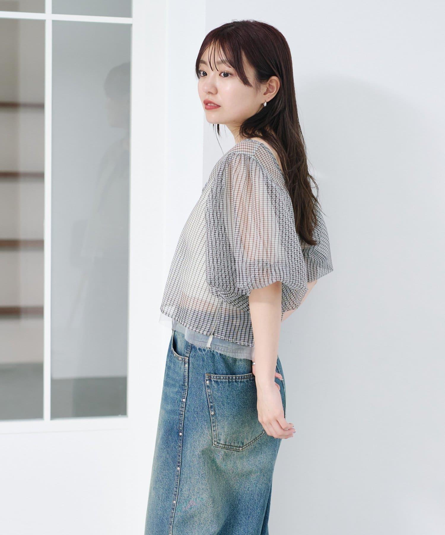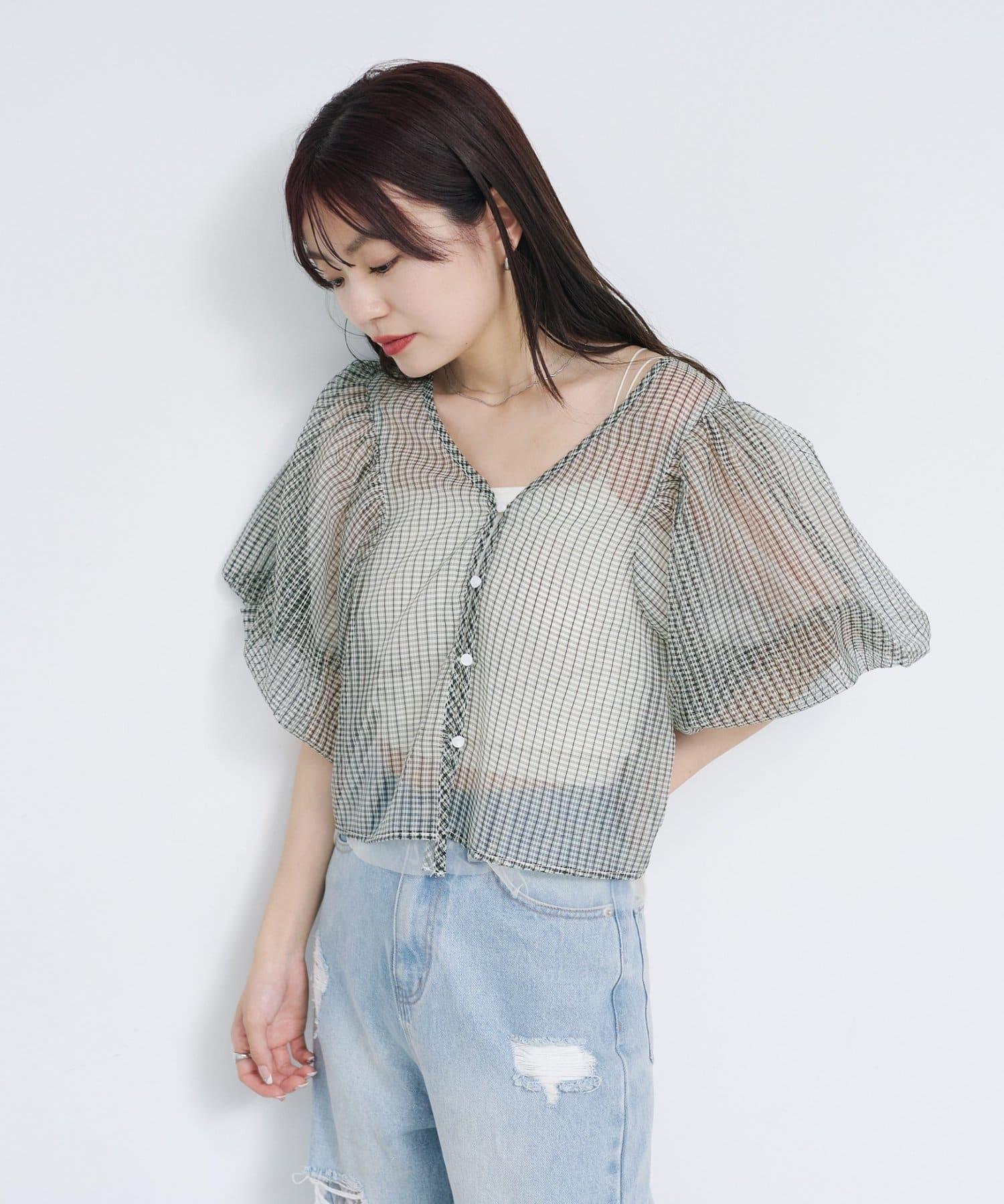 輕盈、柔美的蓬袖襯衫由精緻的棋盤格薄紗製成。