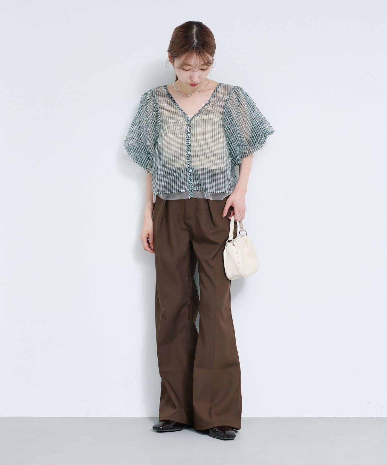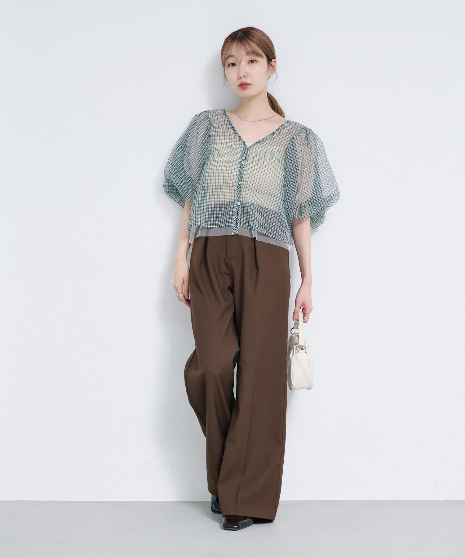 上衣的體積很可愛,因此搭配長褲很有秋天的感覺。