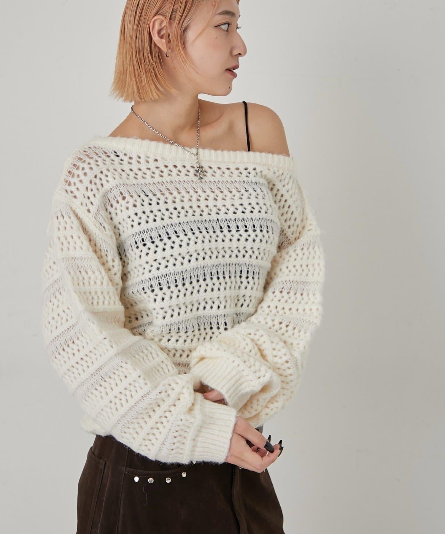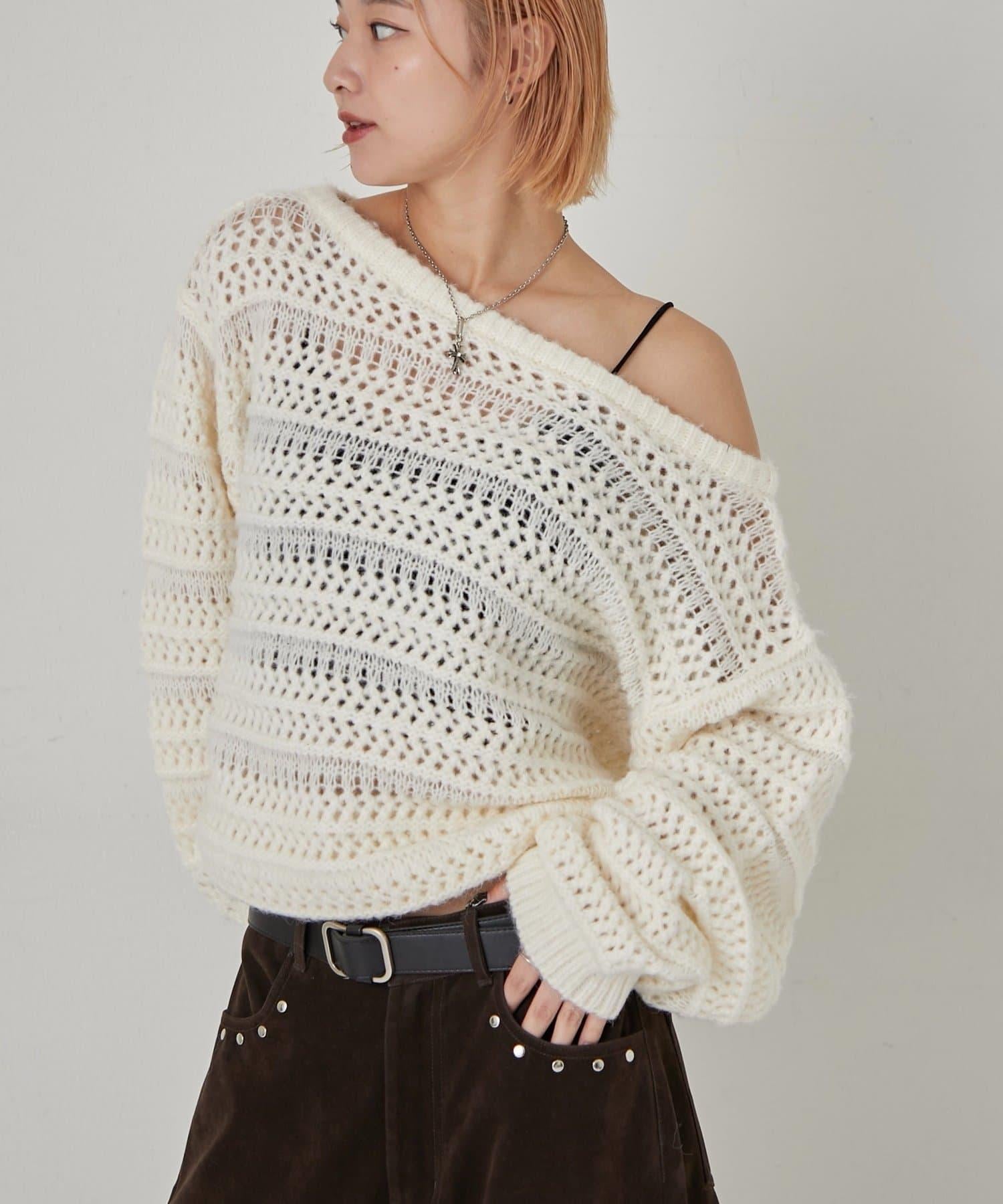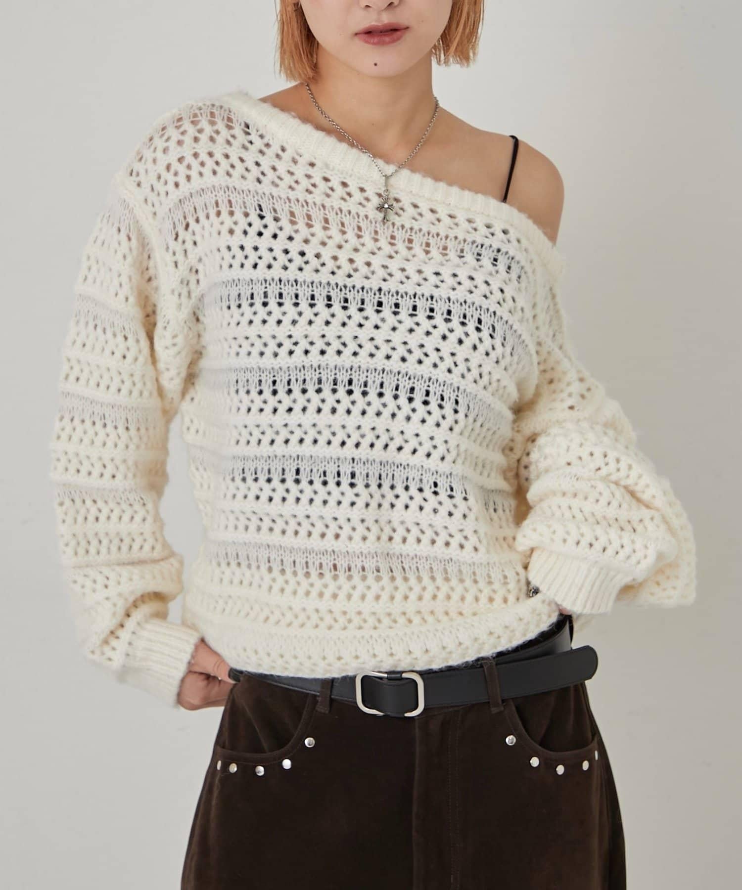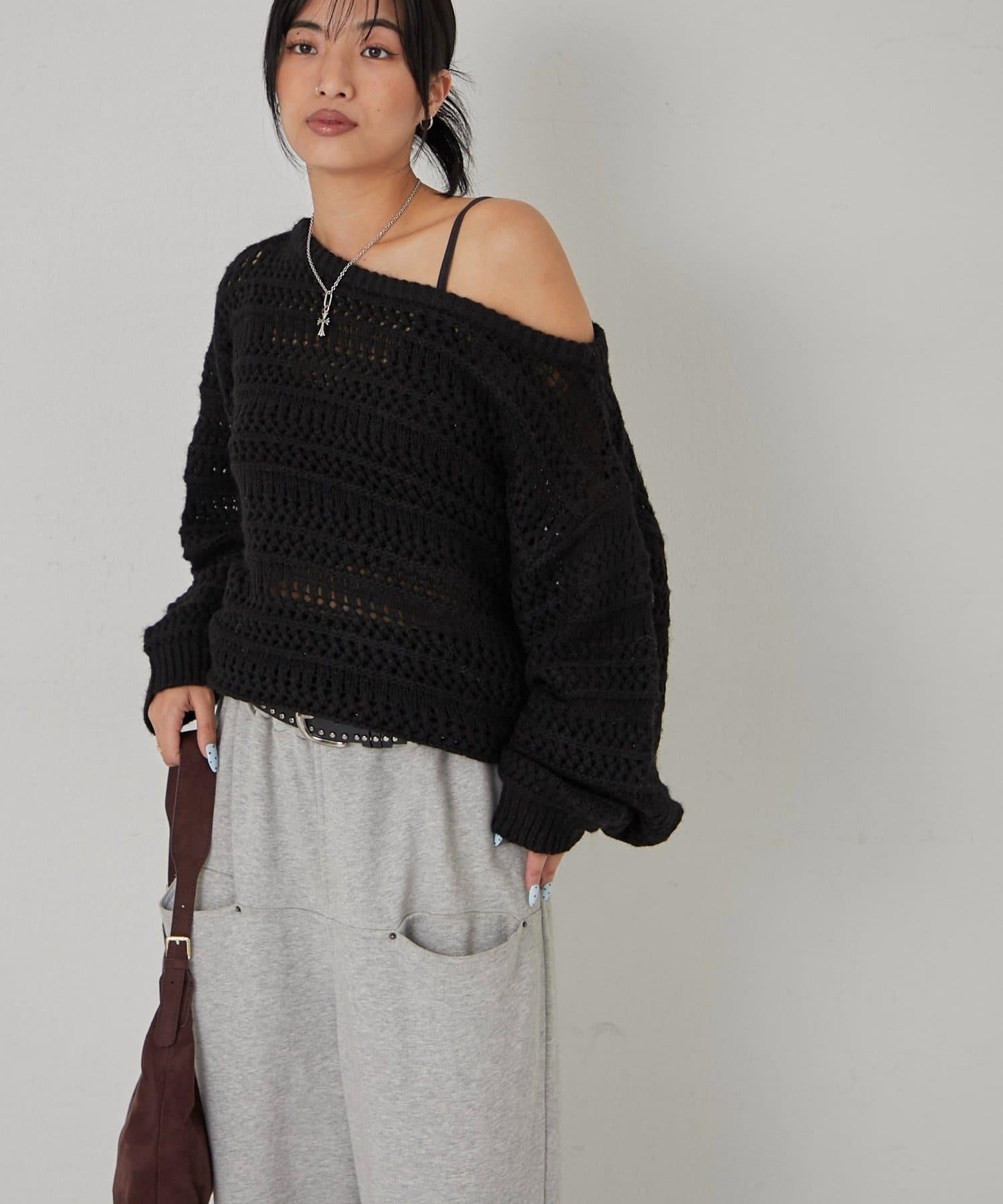 這是一款雙向設計的針織上衣,可露肩穿,也可原樣穿,擴大了穿著範圍。
