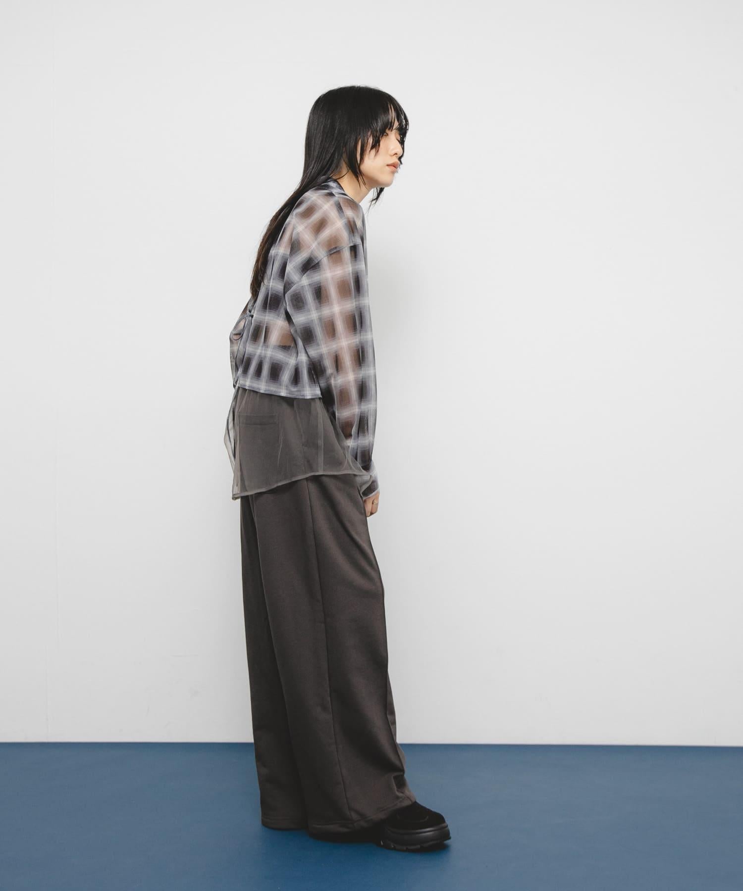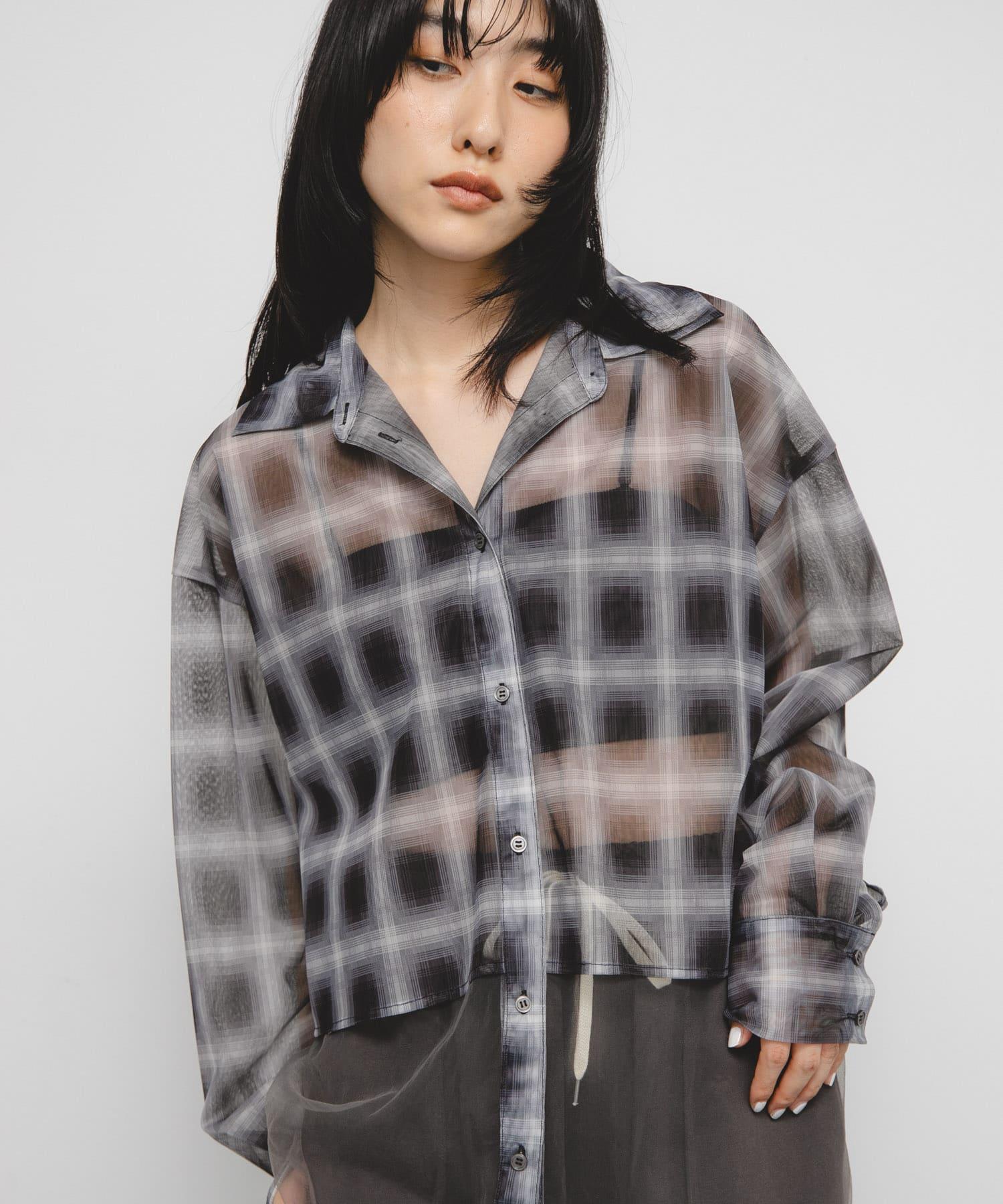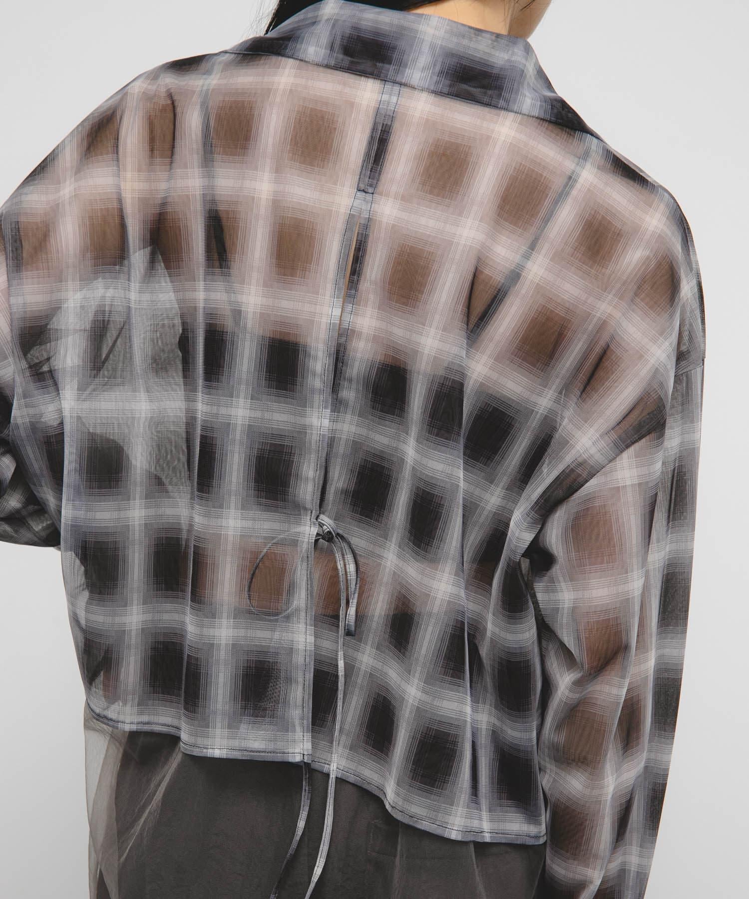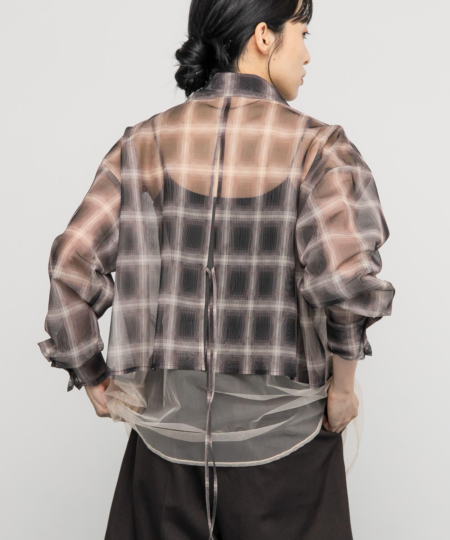 去年非常流行的薄紗多層襯衫在本季進行了升級,加入了棋盤格圖案,增添了一絲端莊感。兩層色彩協調的薄紗面料,以背部開衩和背部緞帶點綴,帶來不一樣的感覺。長度很好地隱藏了腰部,寬鬆的衣身寬度有一種墜落感,穿起來不會臃腫。素色和棋盤格圖案的表現力不同也是一個要點。