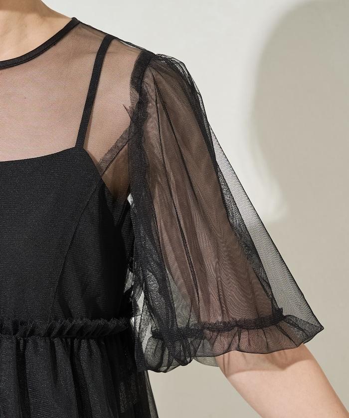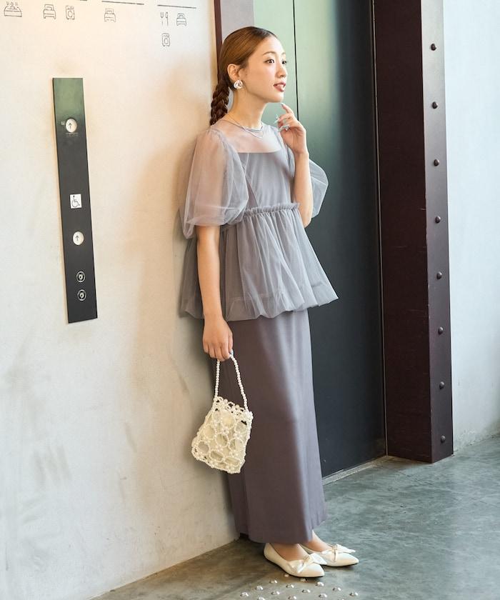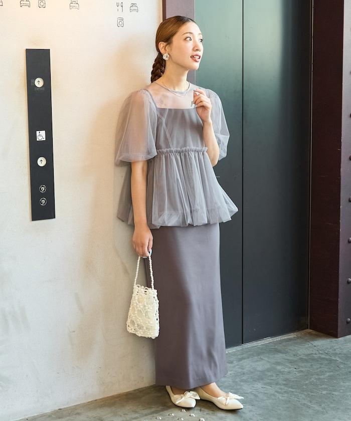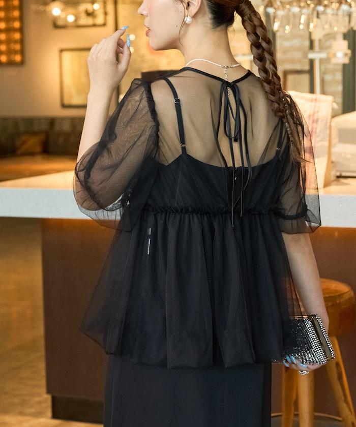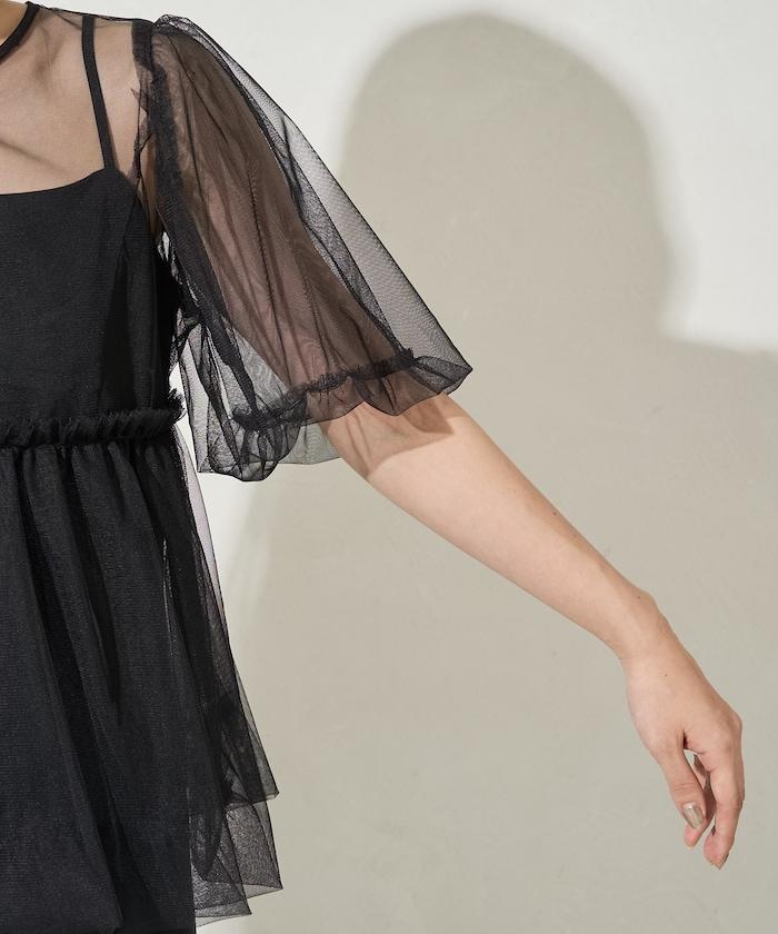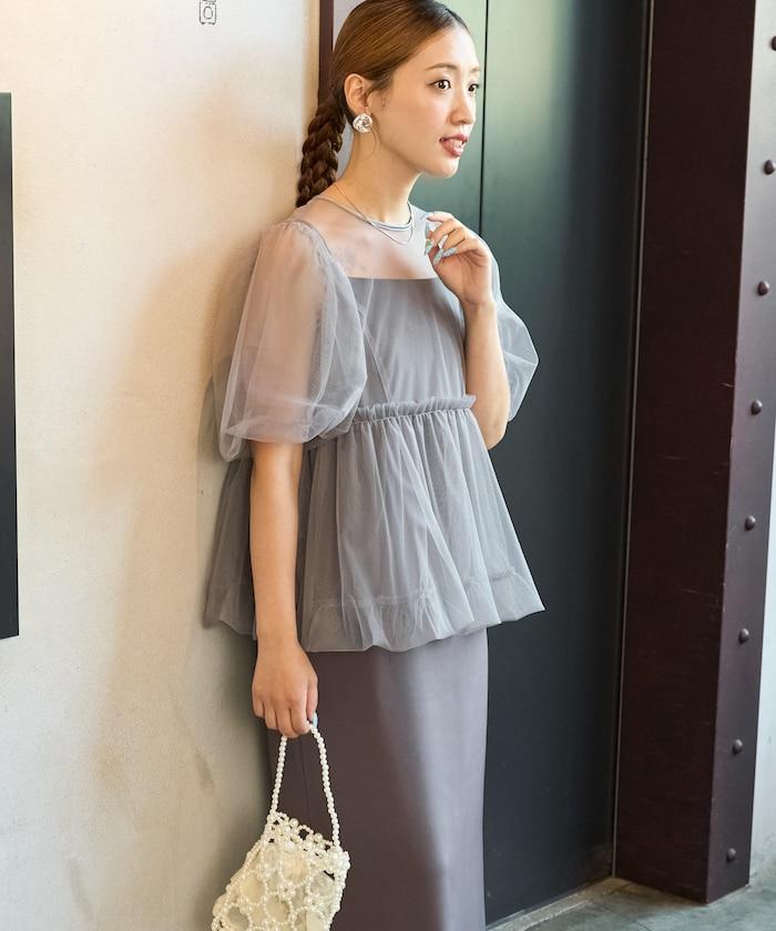 透明薄紗材質營造出成熟可愛的氛圍。