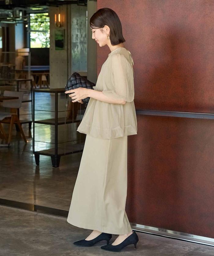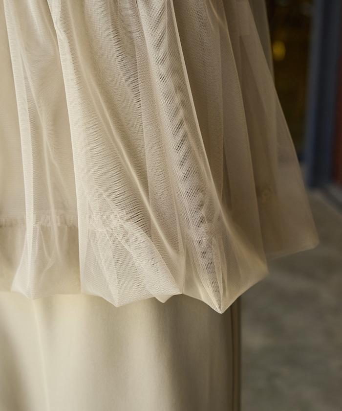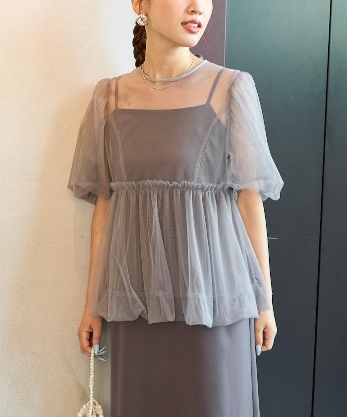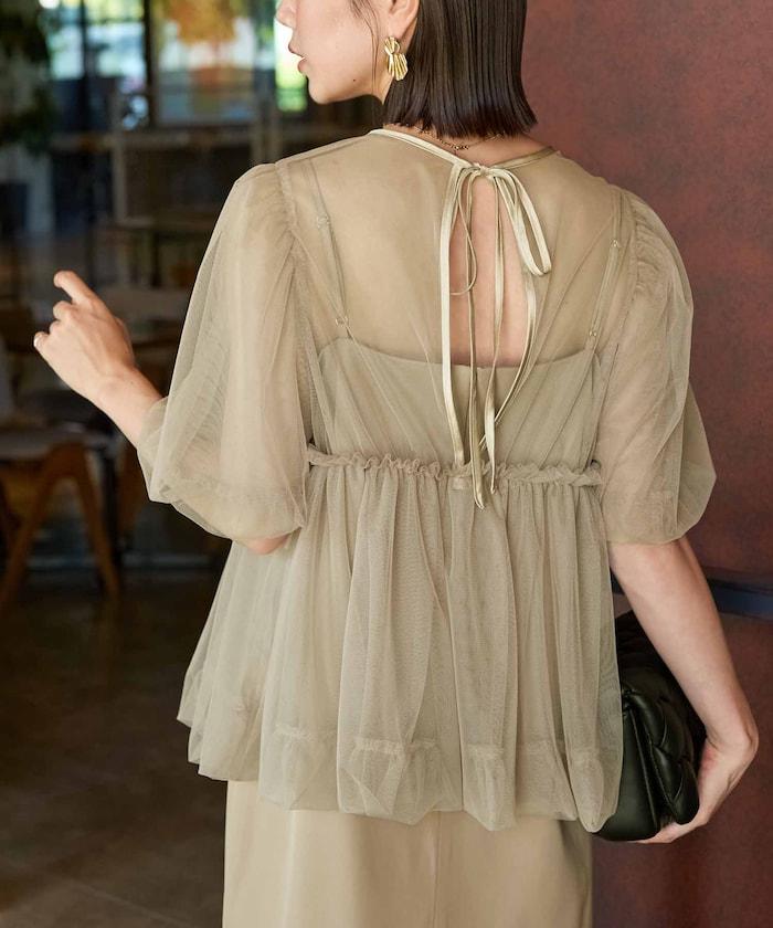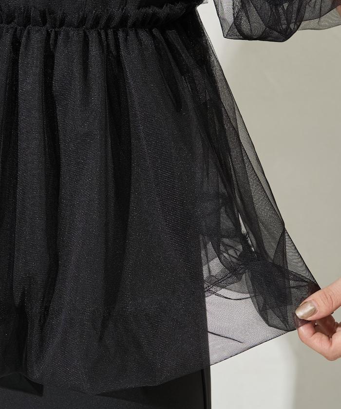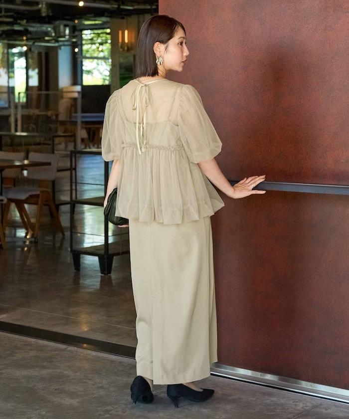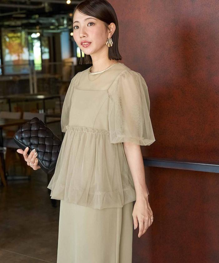 透明薄紗材質營造出成熟可愛的氛圍。