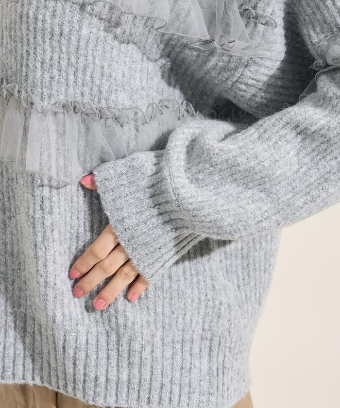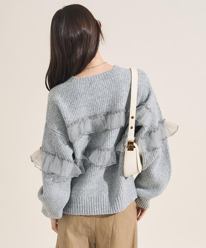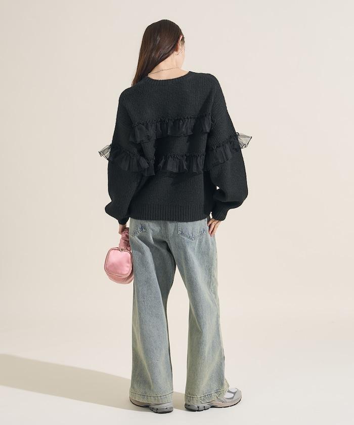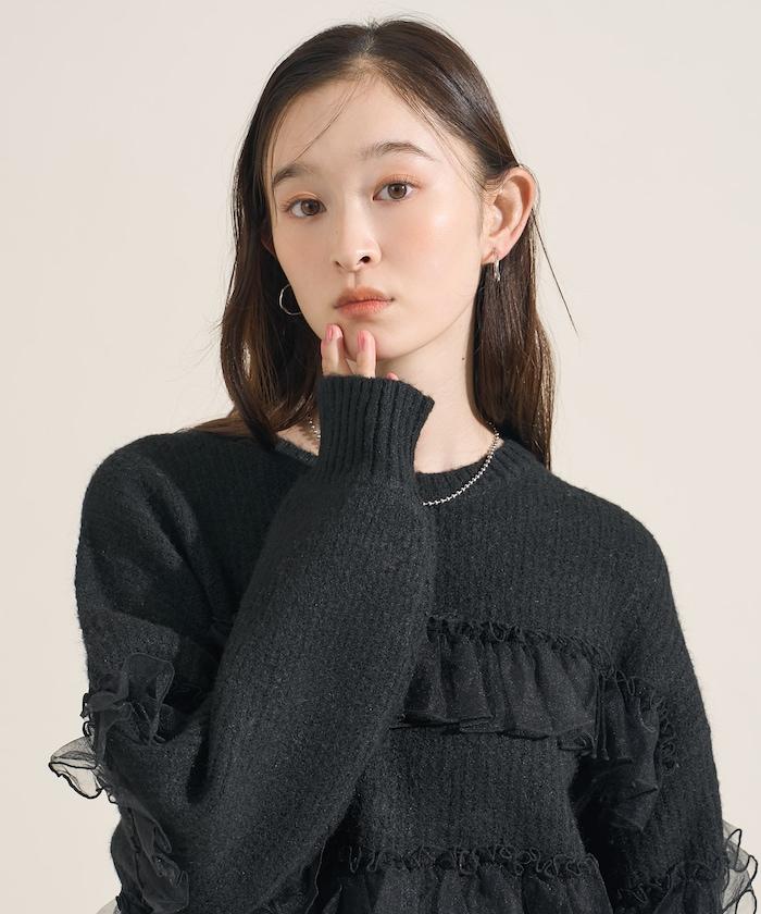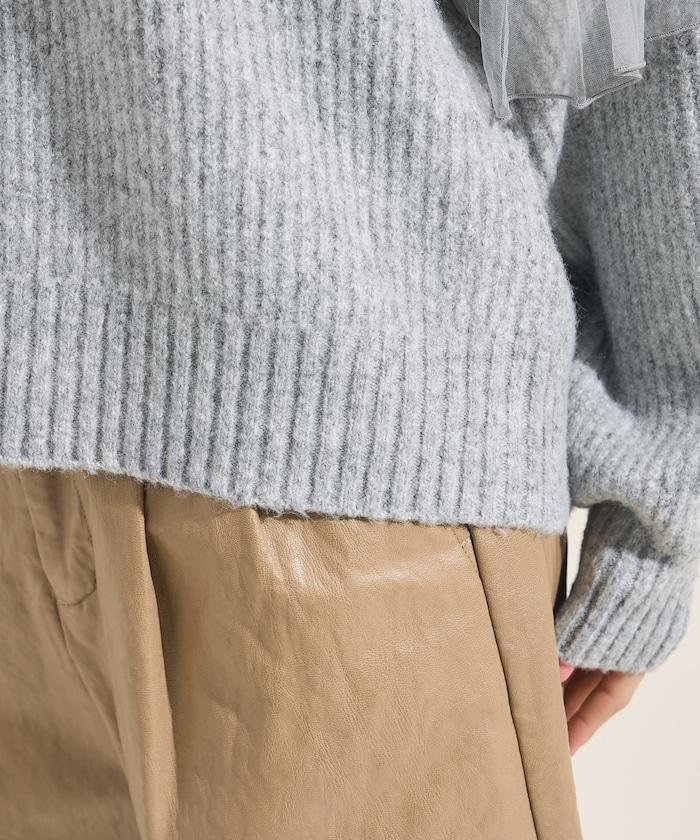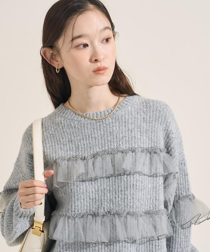 這是一款華麗而充滿女性魅力的套頭衫,蓬鬆的針織面料上帶有薄紗流蘇。