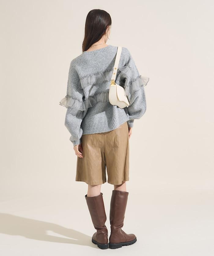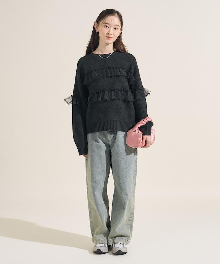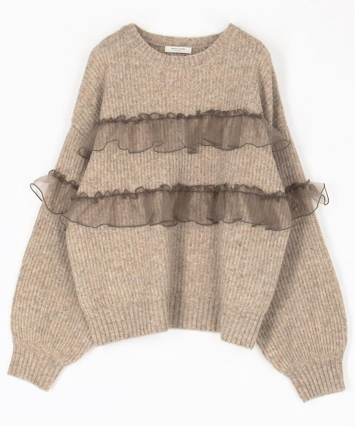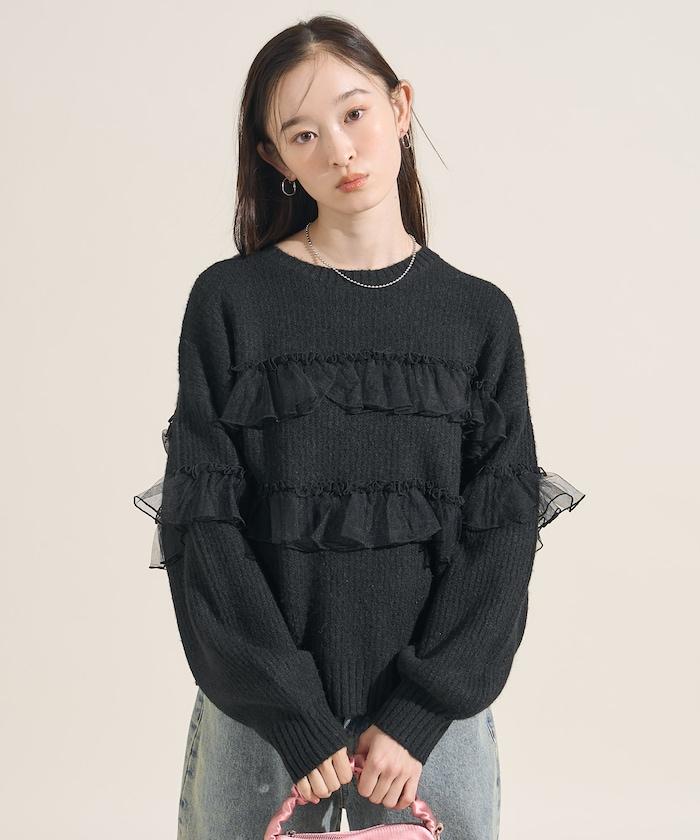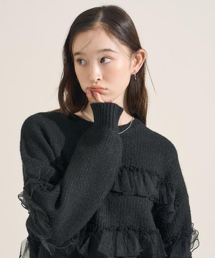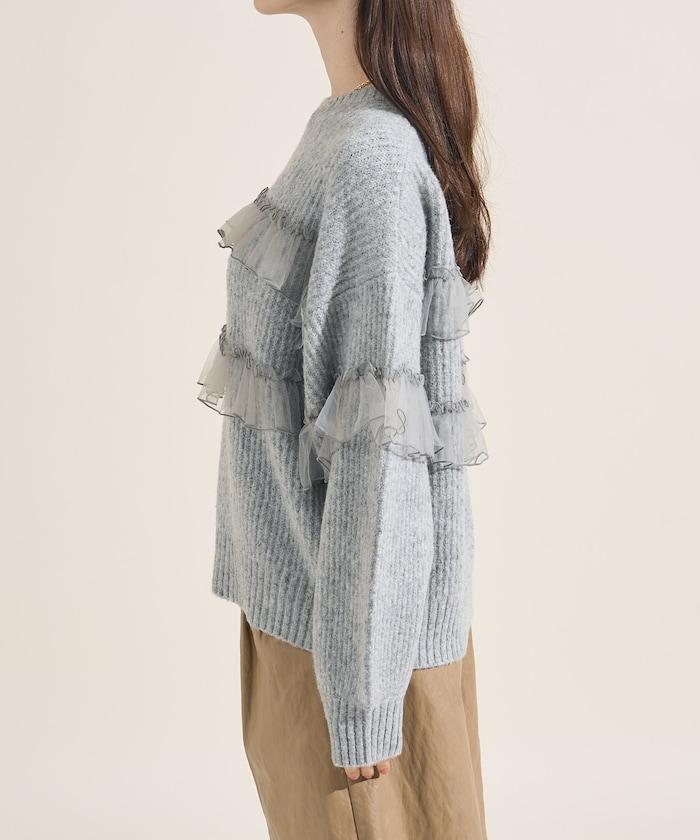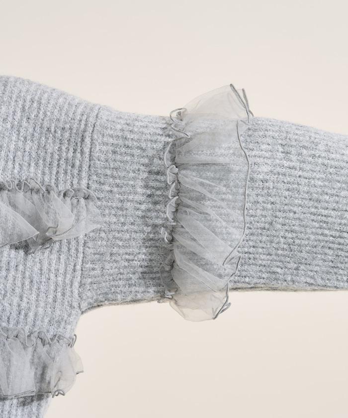 這是一款華麗而充滿女性魅力的套頭衫,蓬鬆的針織面料上帶有薄紗流蘇。