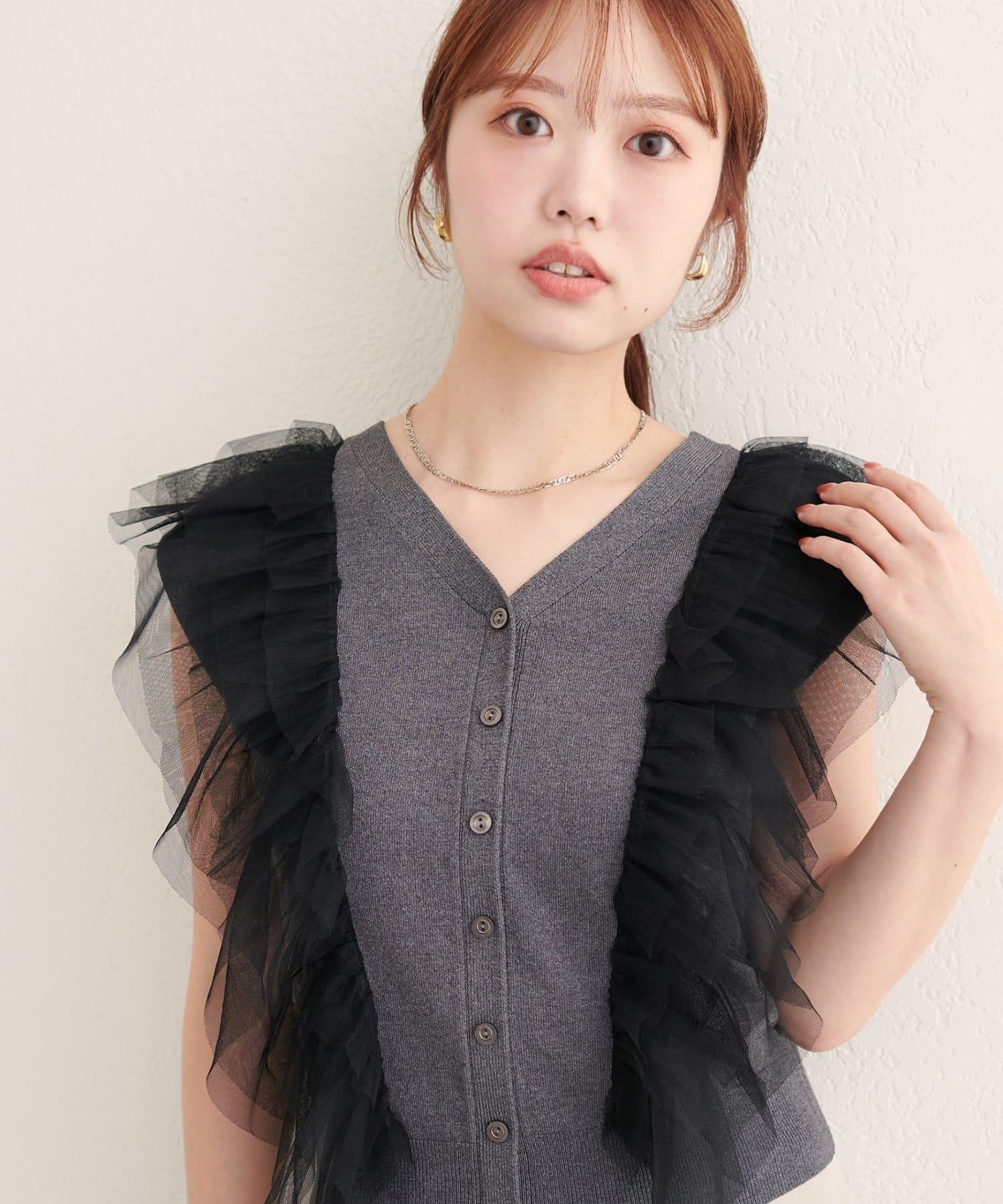 [WEB 👍] 薄紗荷葉邊針織馬甲