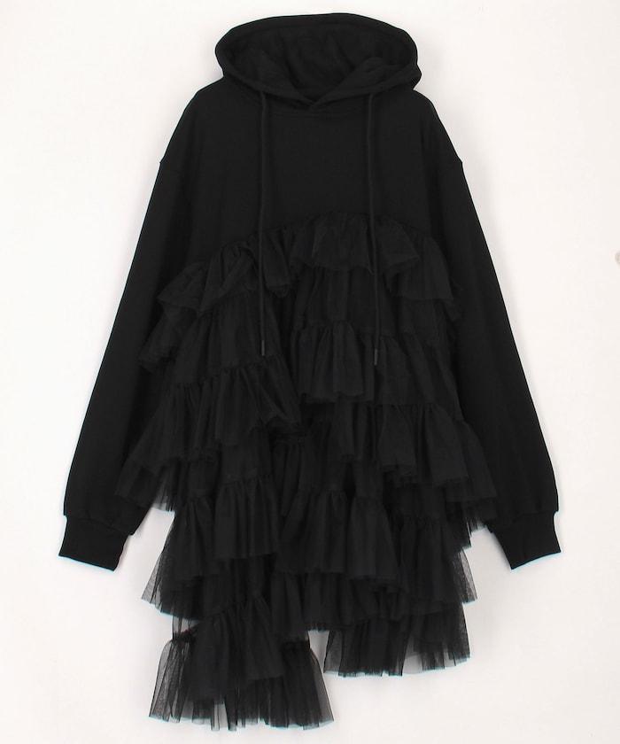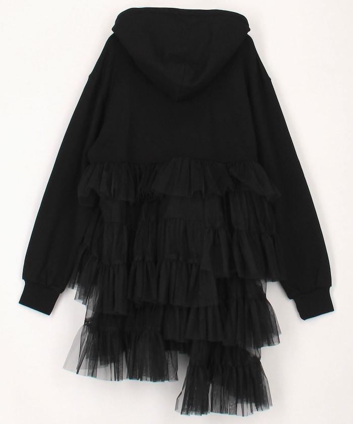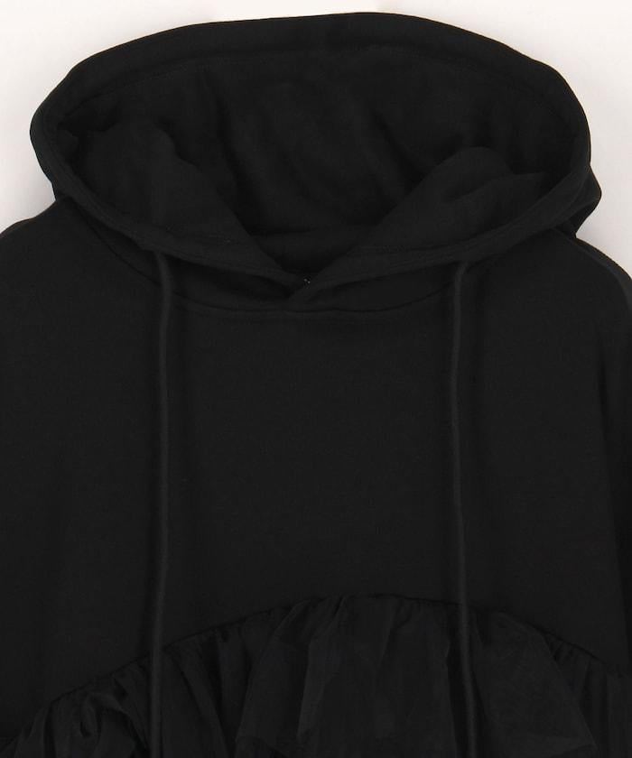 帶大量薄紗的套頭連帽衫。