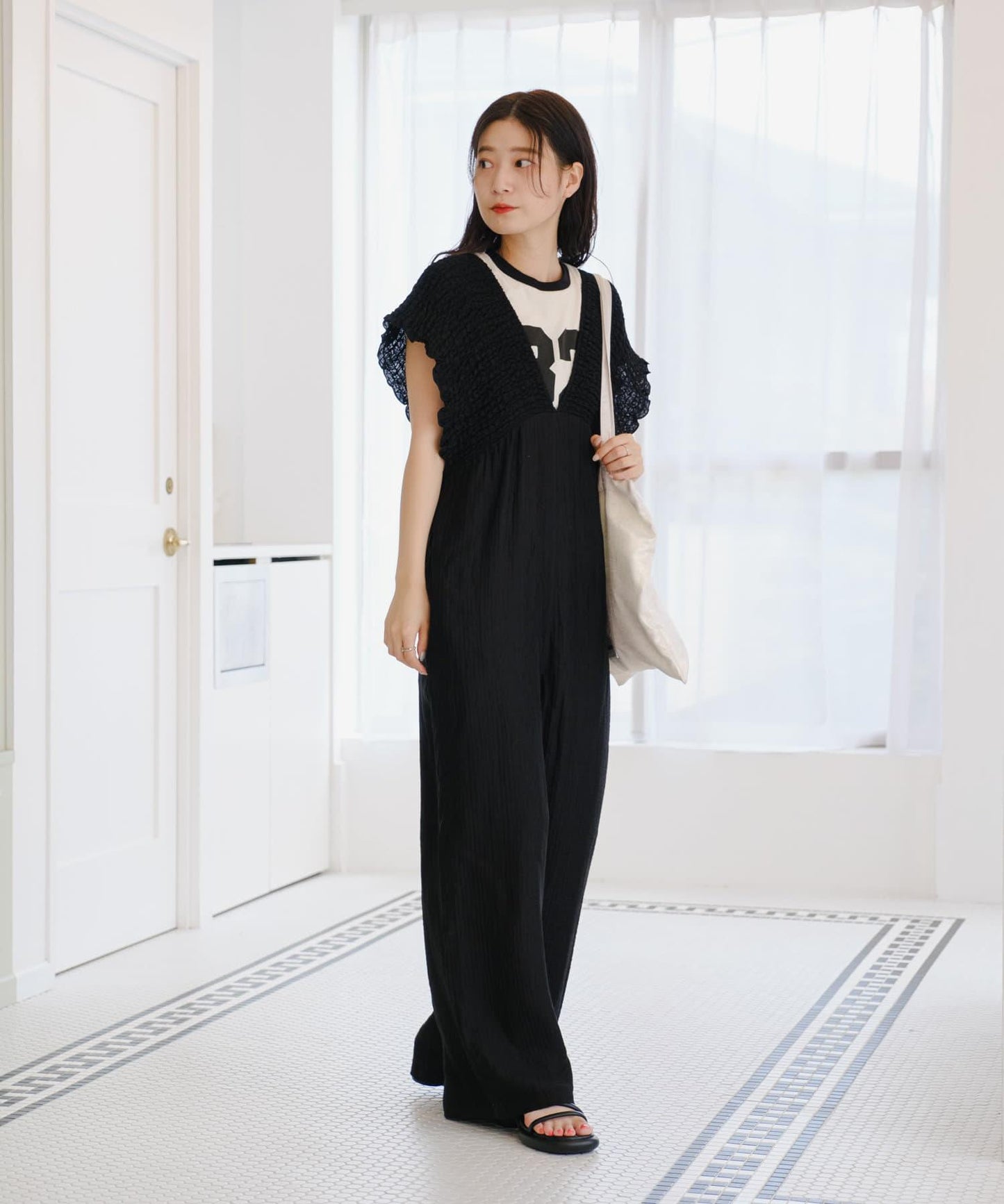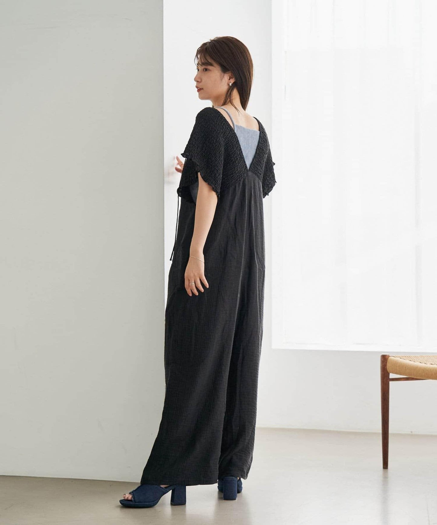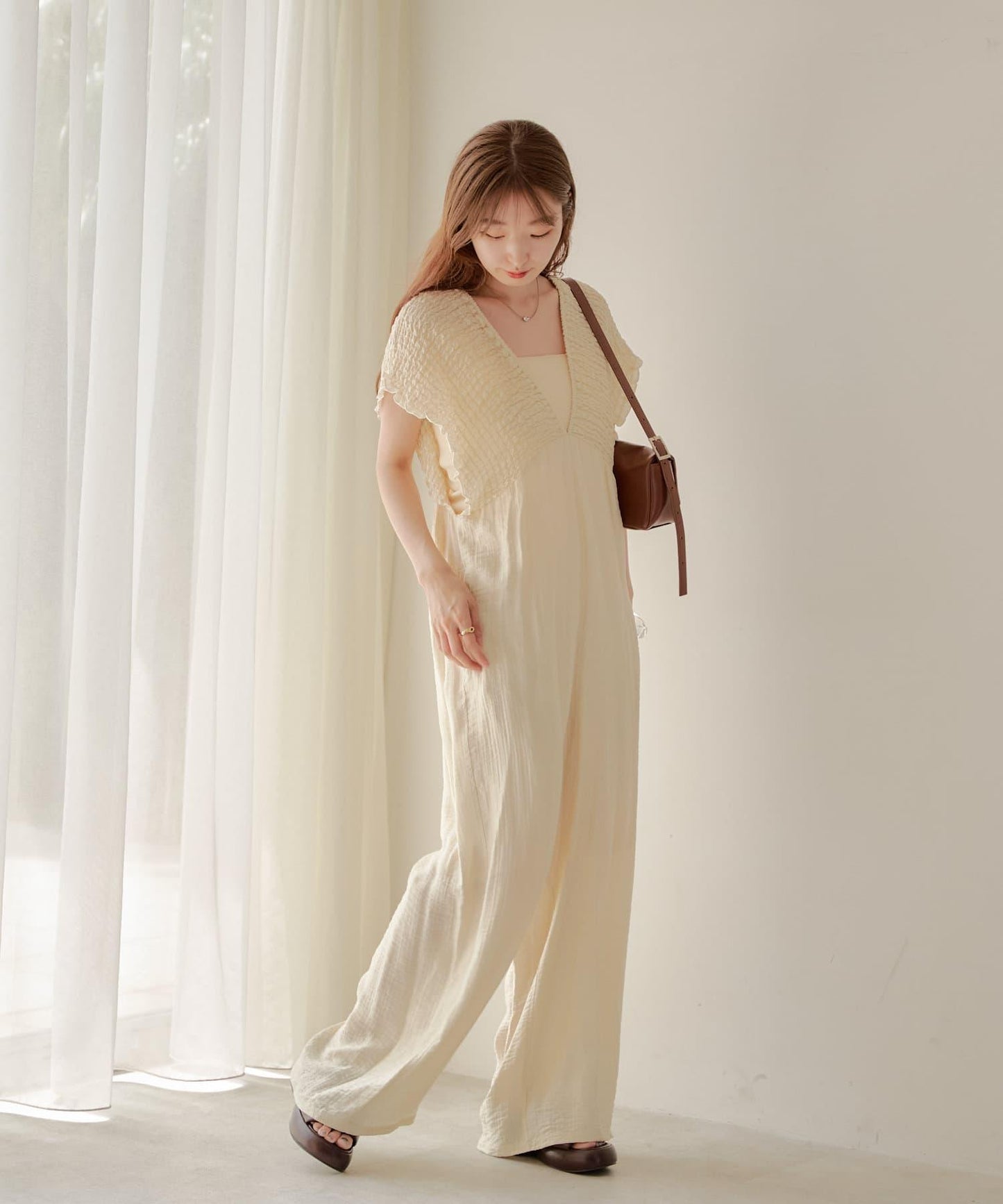 【網絡/2尺碼展開/低身高尺碼】褶皺連體褲