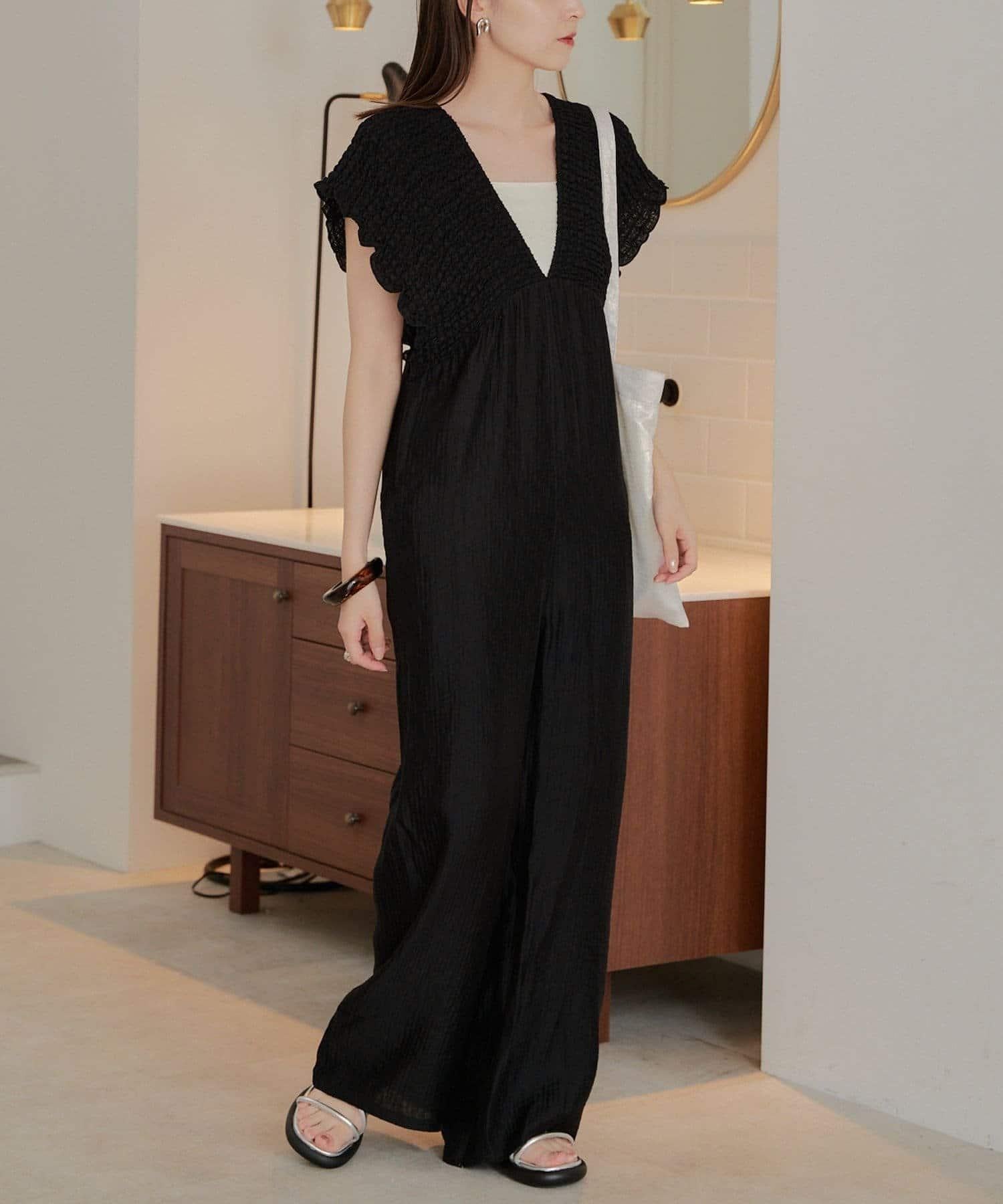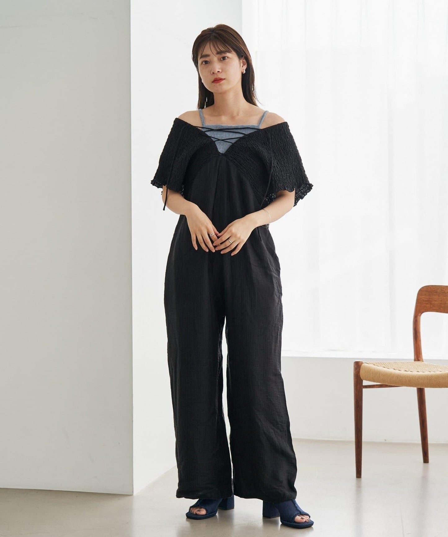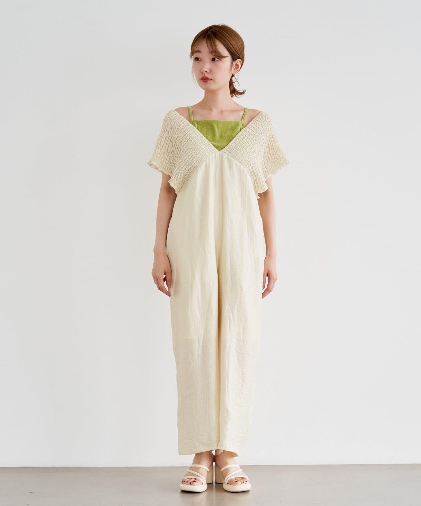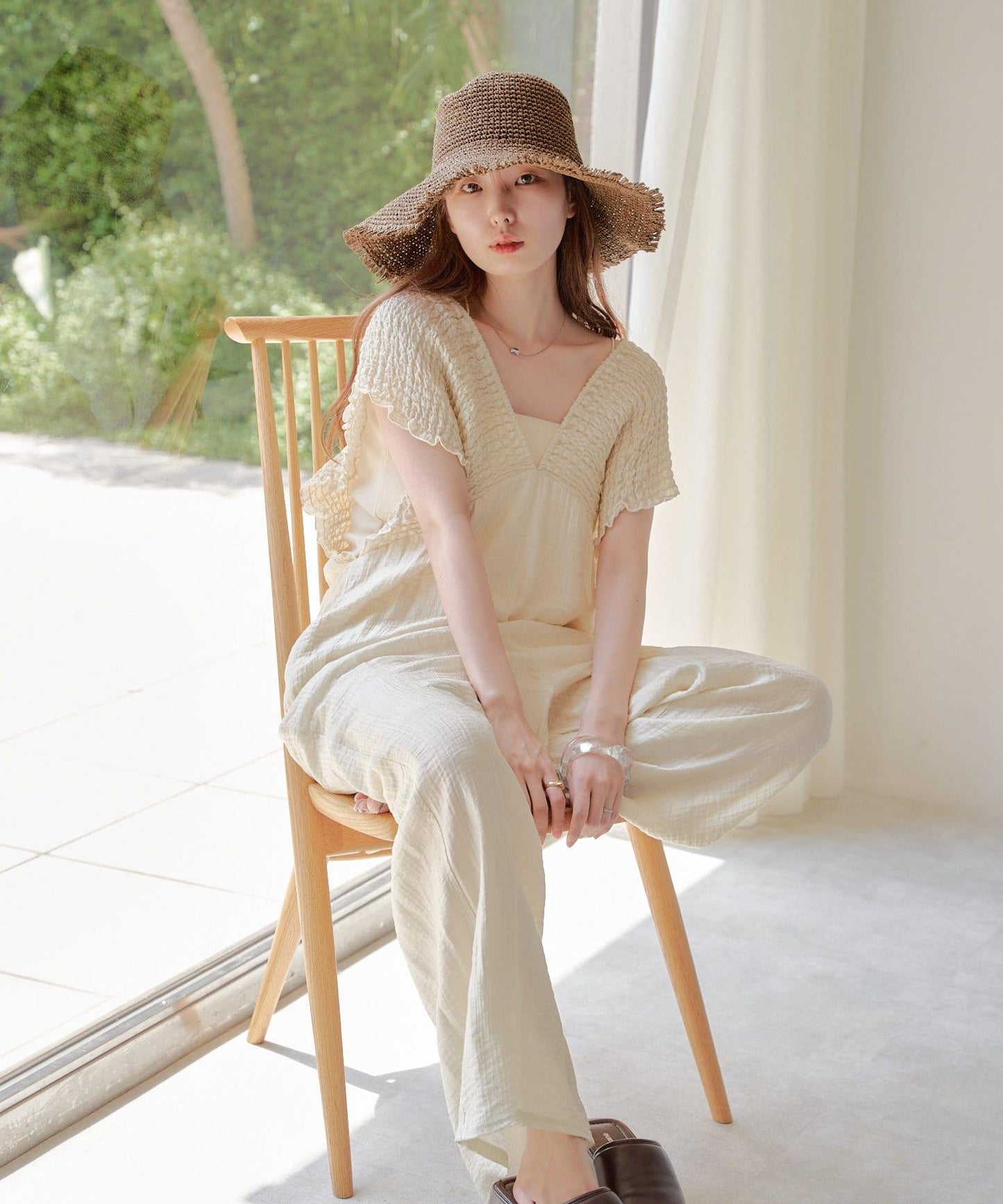 【網絡/2尺碼展開/低身高尺碼】褶皺連體褲