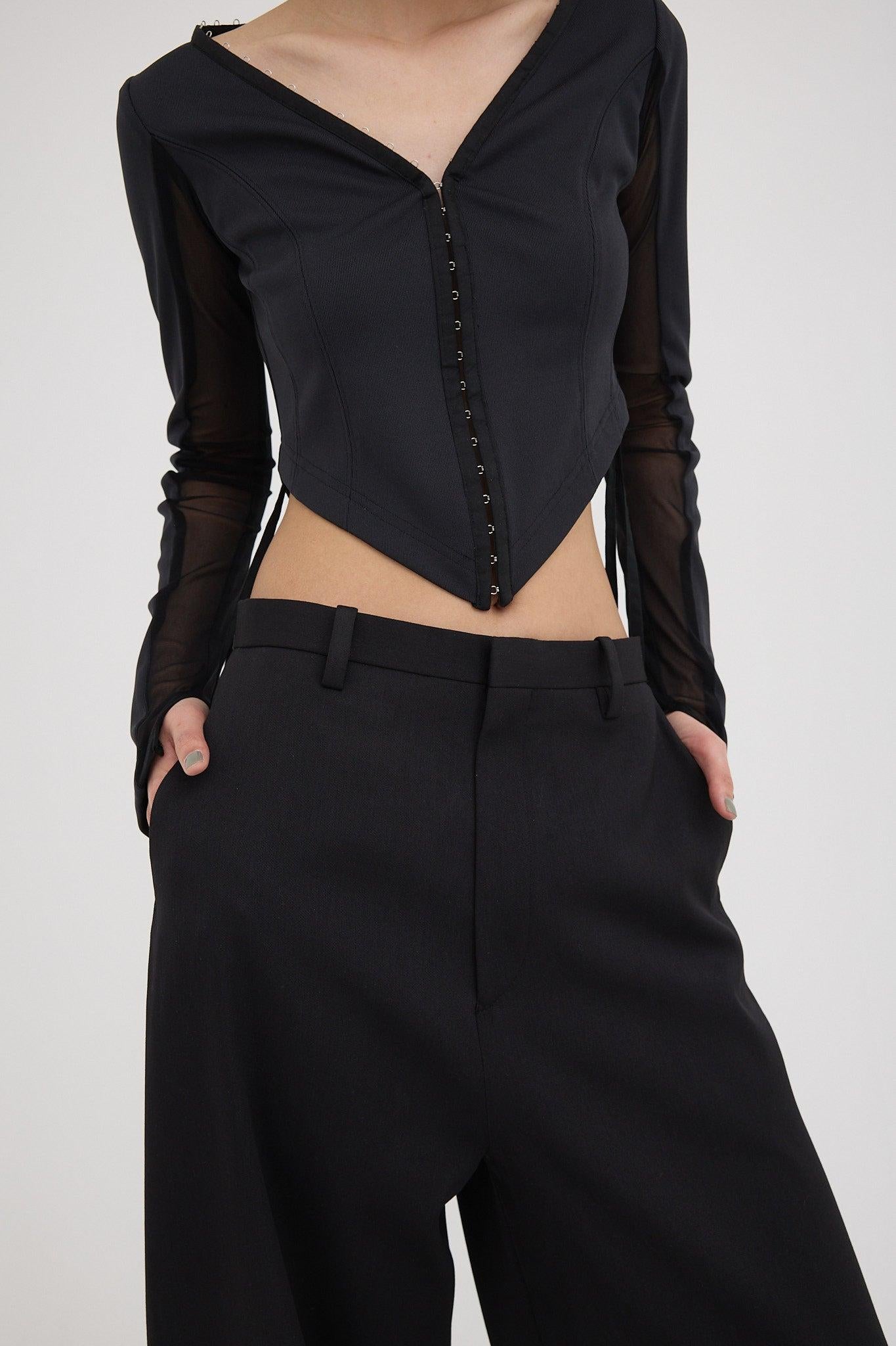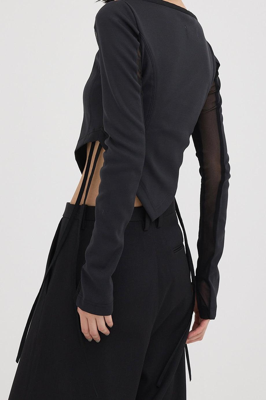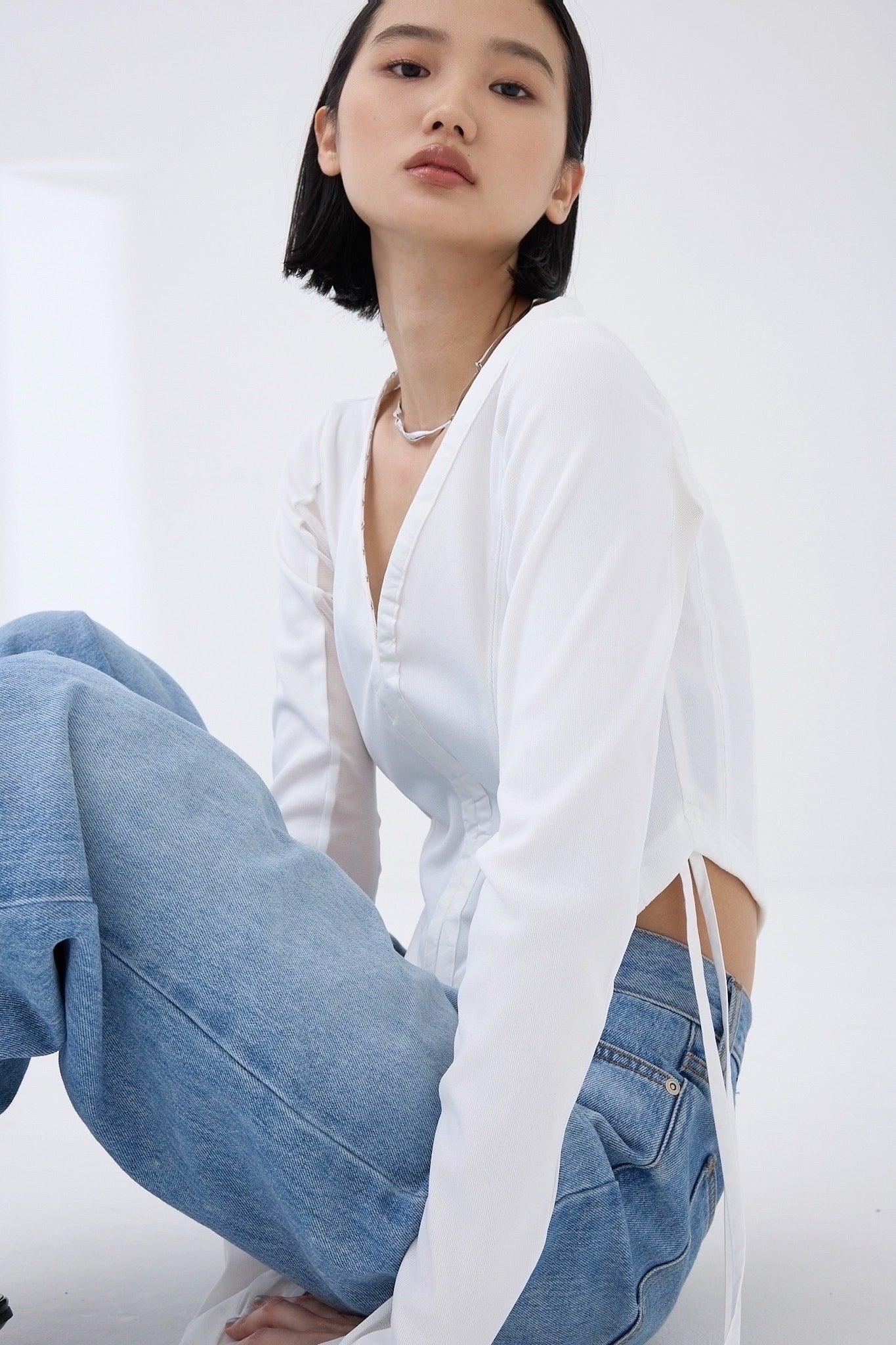 精心設計的弧形下襬能很好地突出腰線,而透視袖則給人一種輕鬆的感覺,恰到好處地展現了性感。