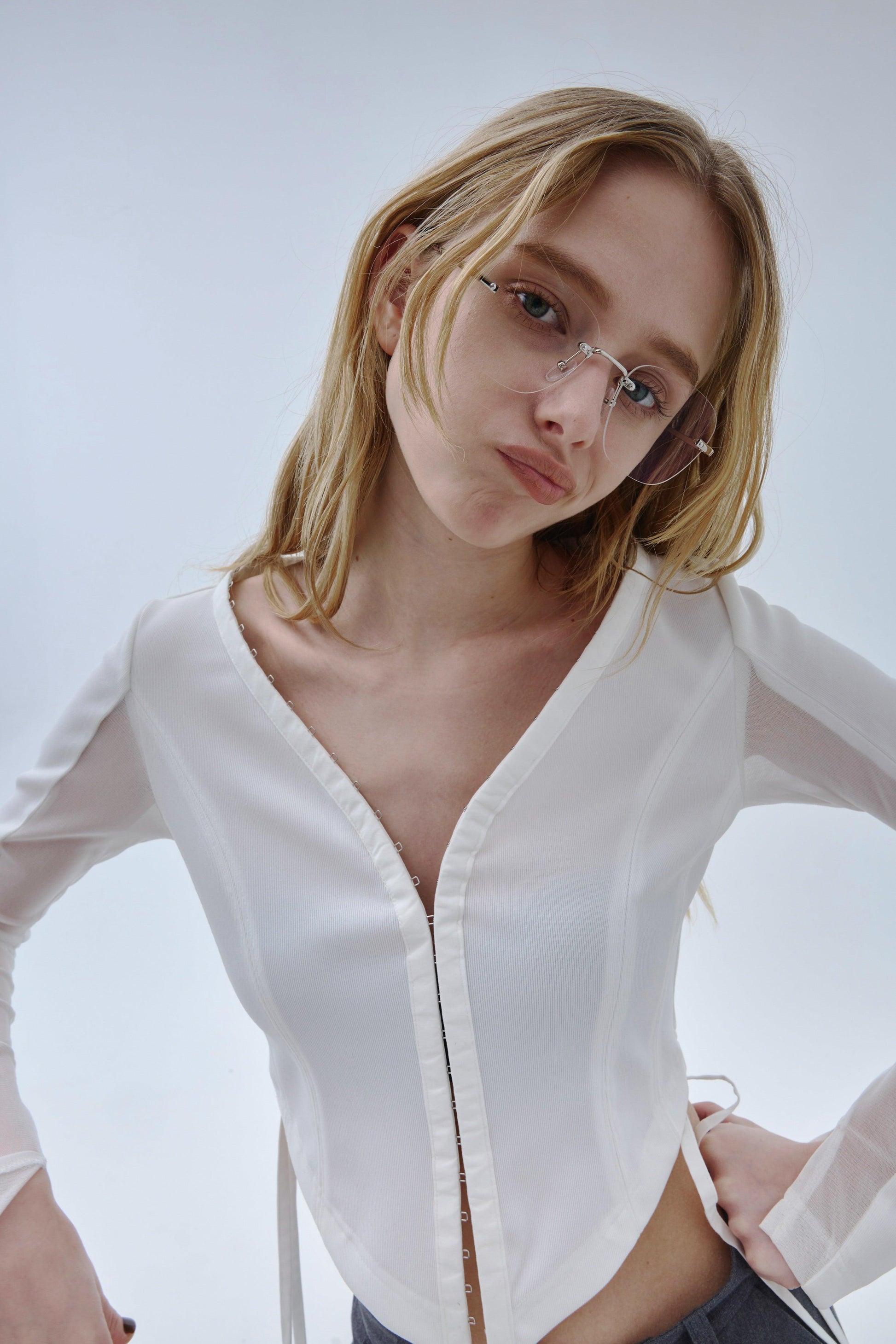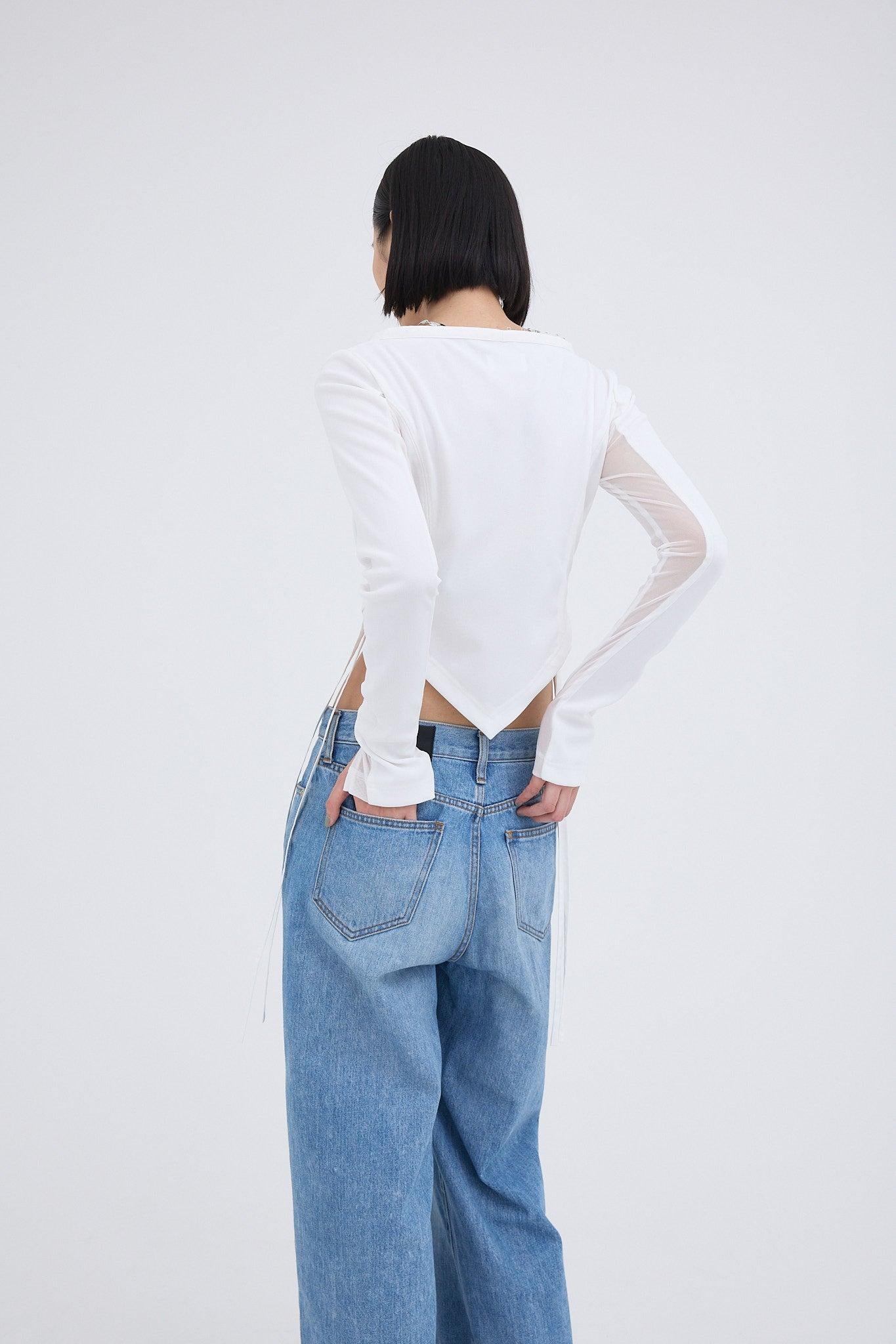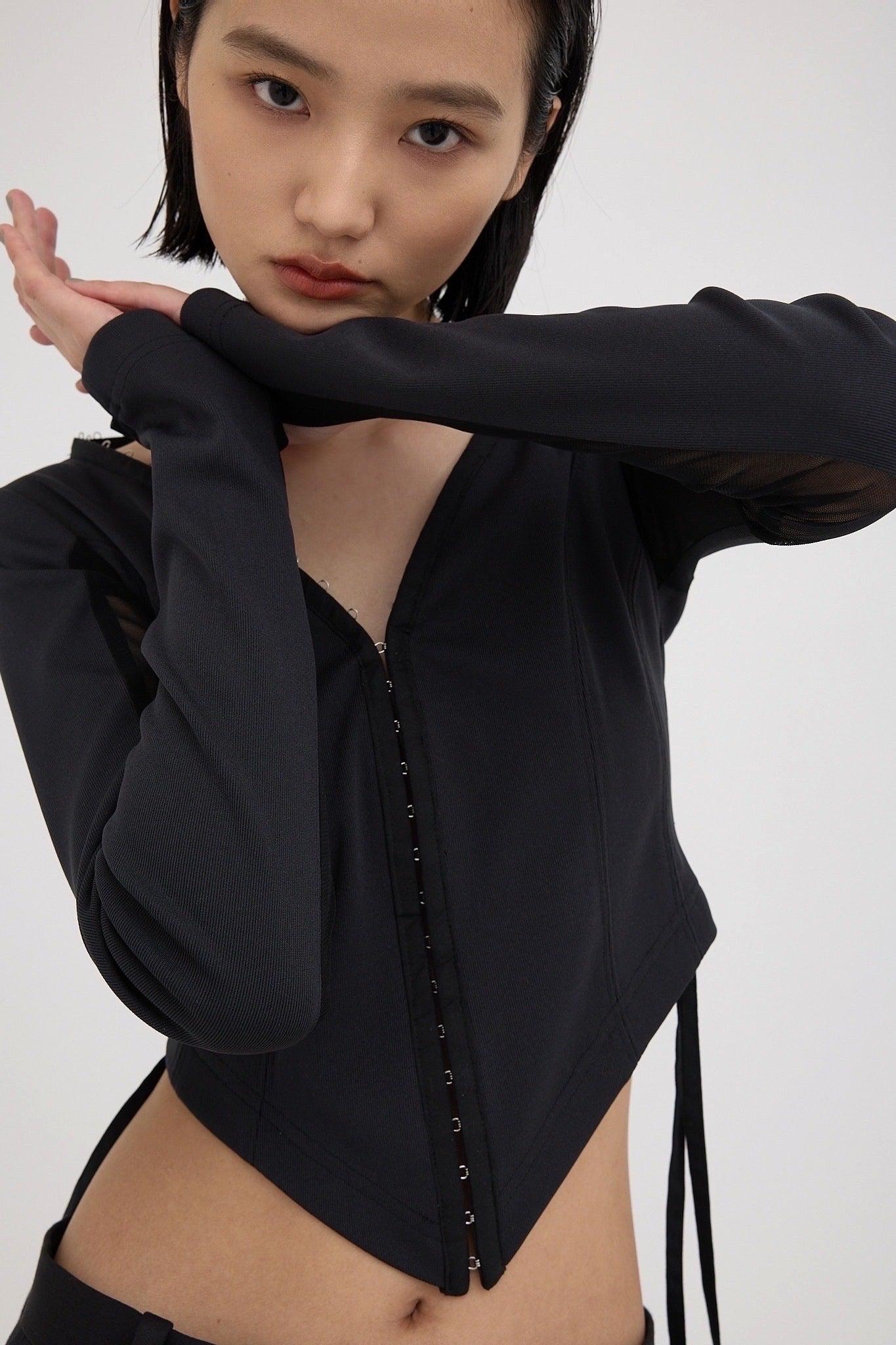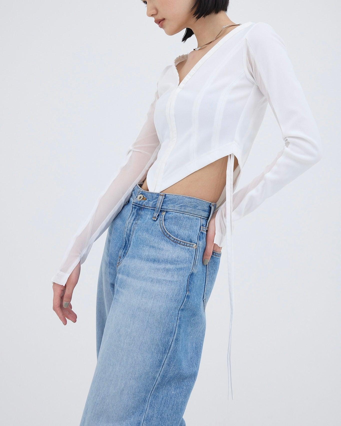 精心設計的弧形下襬能很好地突出腰線,而透視袖則給人一種輕鬆的感覺,恰到好處地展現了性感。