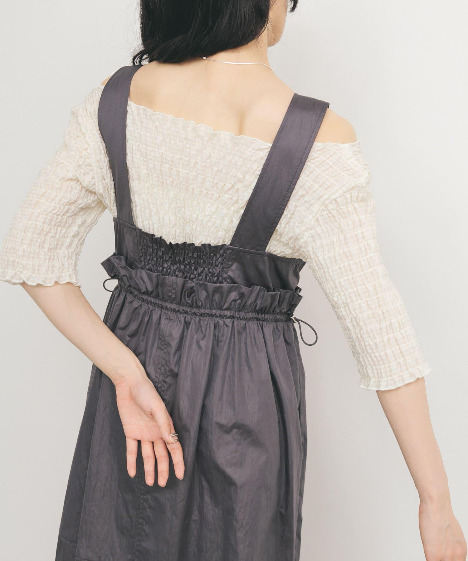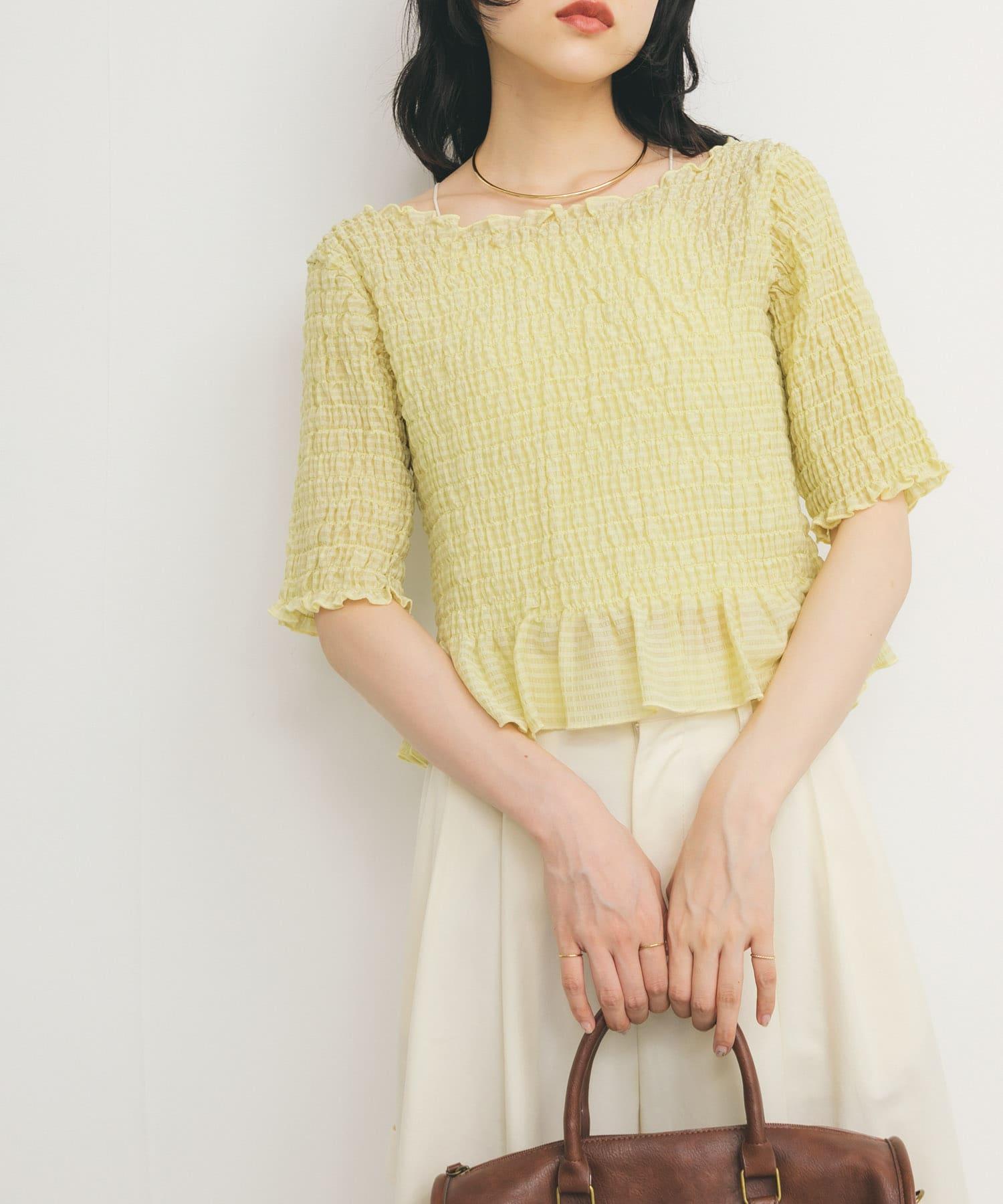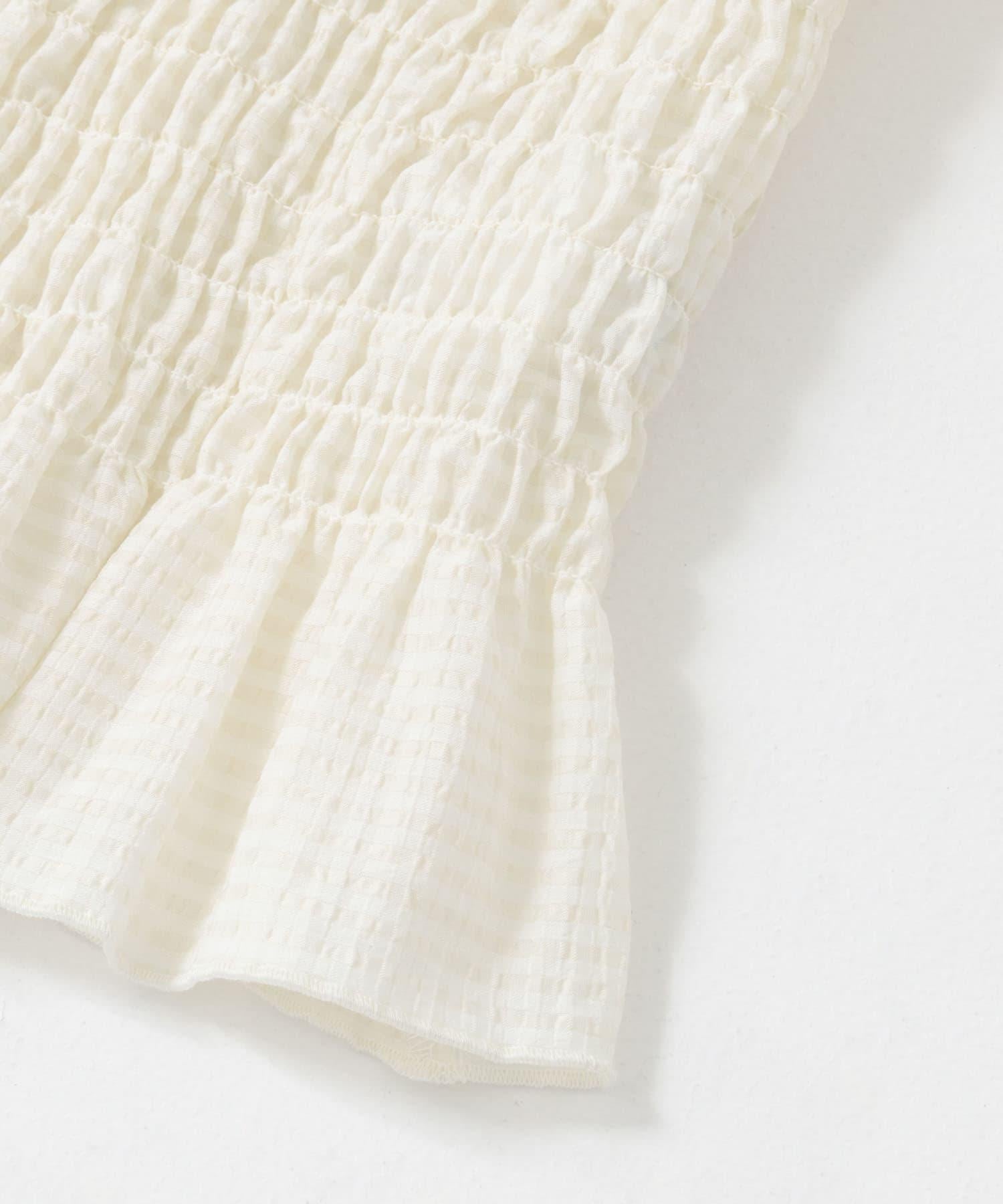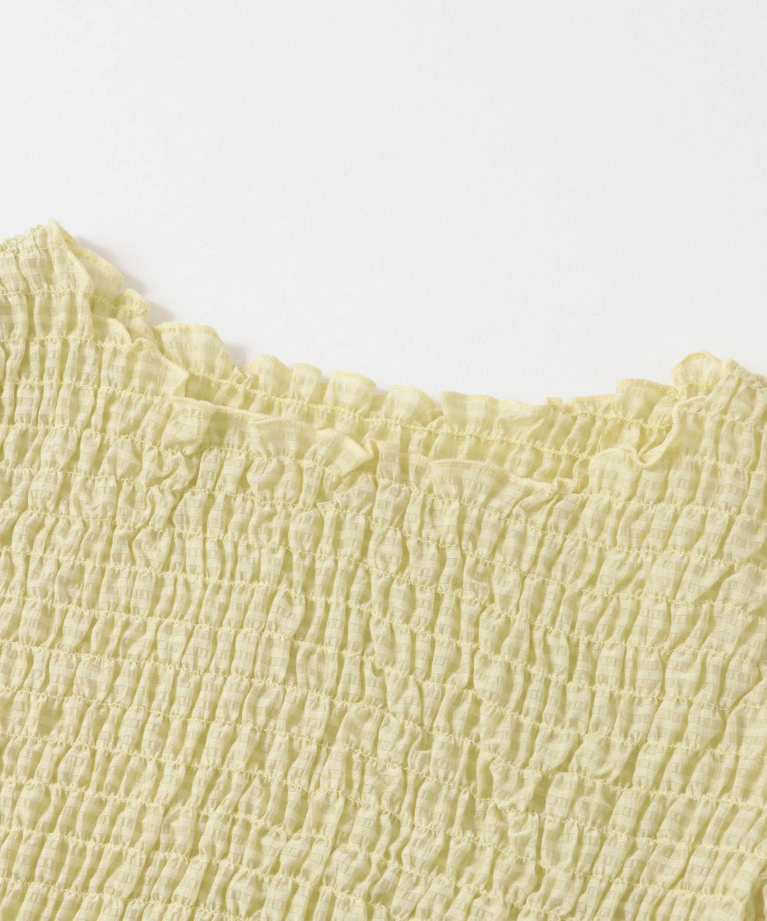 這款襯衫的四面都採用了碎花設計,打造出女性化的迷人外觀。簡潔的領口採用雙向設計,也可改為露肩款式。不僅可作為主衣,也可作為連衣裙的內搭。