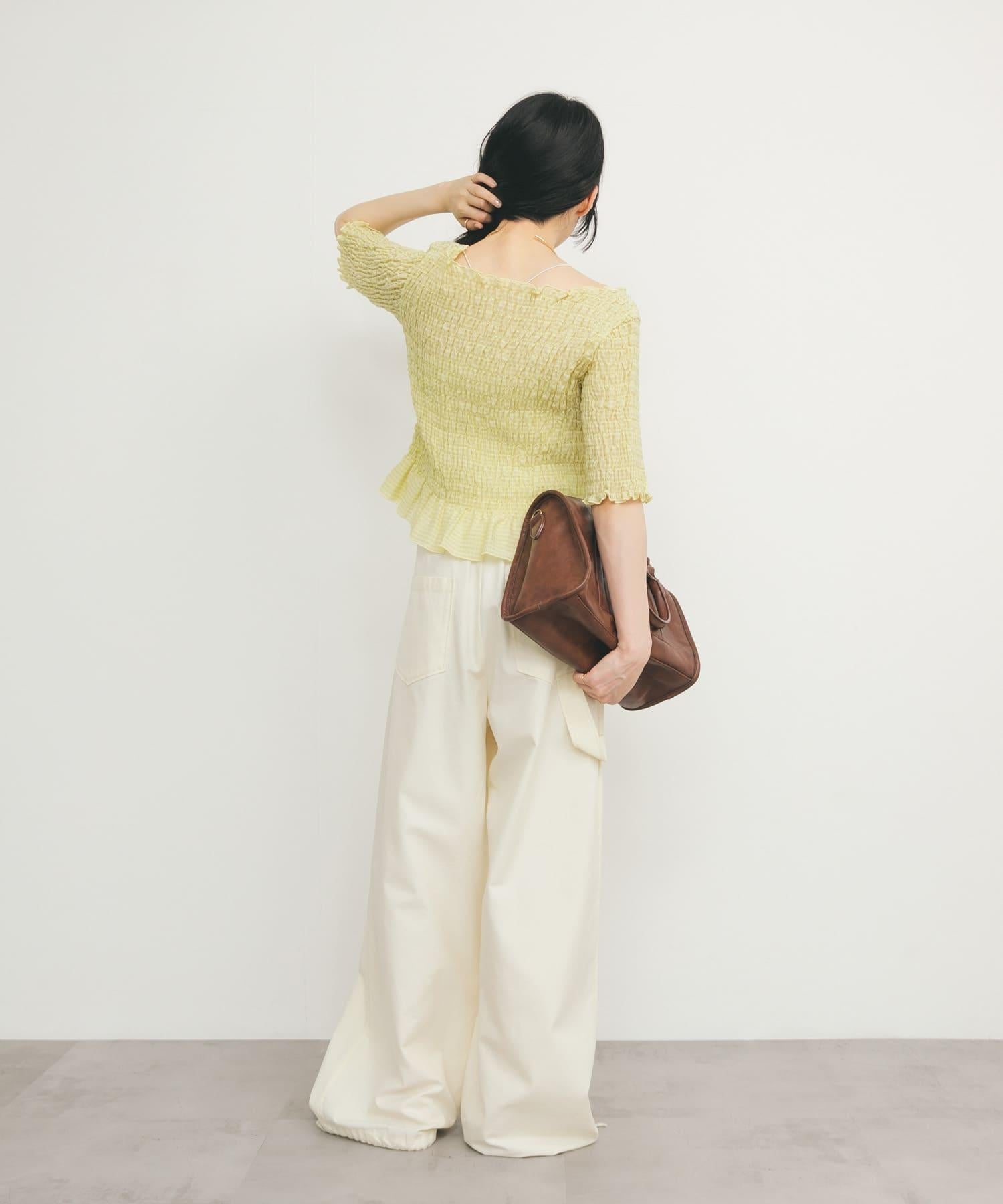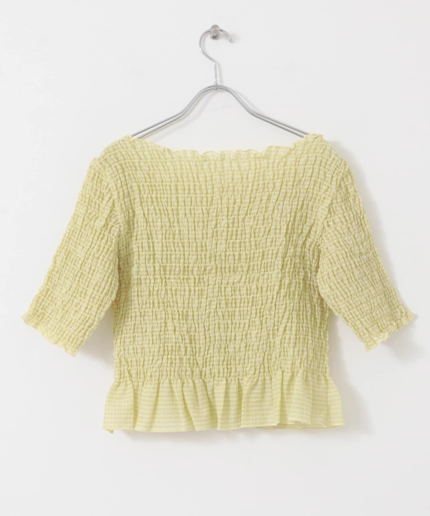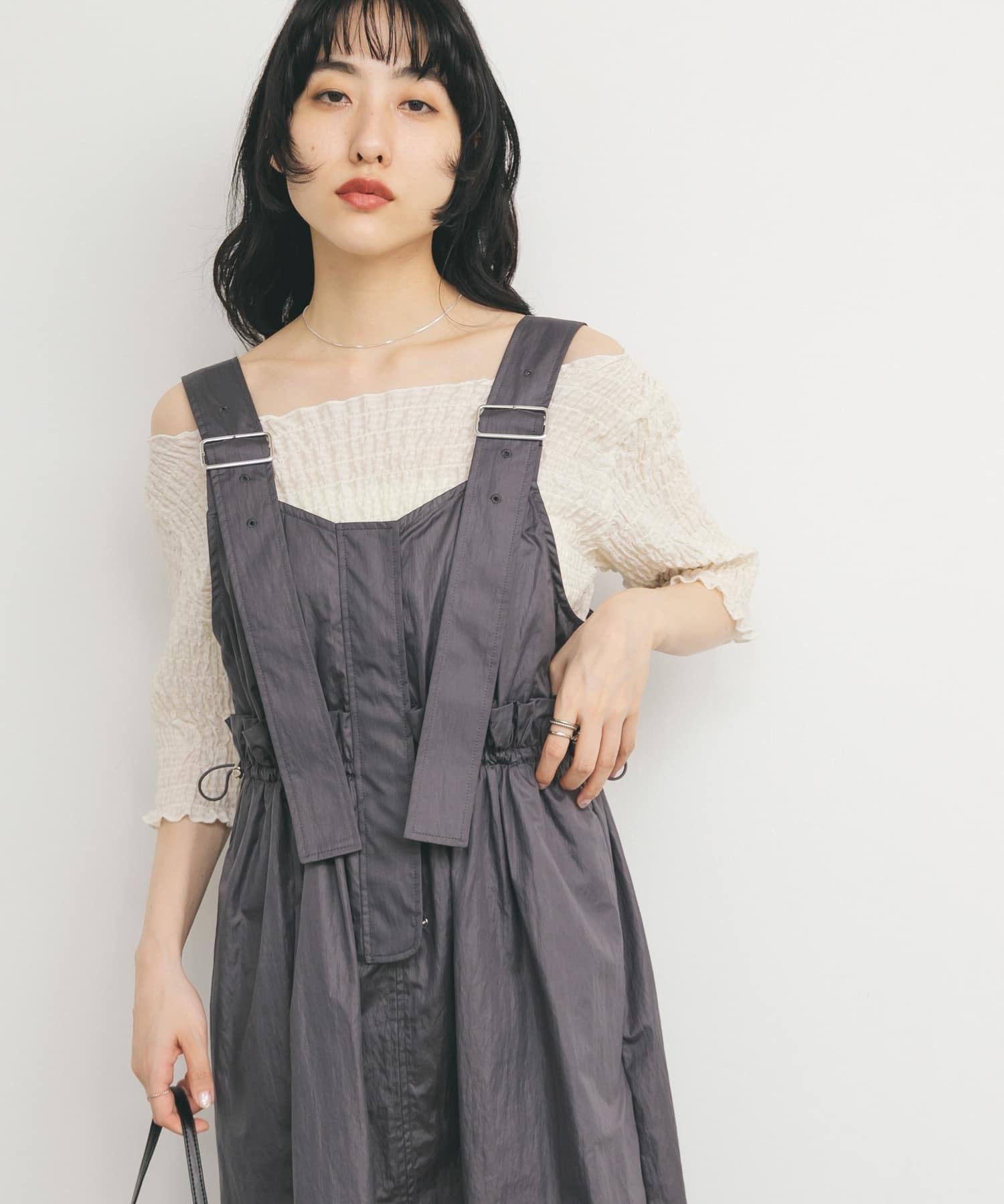 這款襯衫的四面都採用了碎花設計,打造出女性化的迷人外觀。簡潔的領口採用雙向設計,也可改為露肩款式。不僅可作為主衣,也可作為連衣裙的內搭。