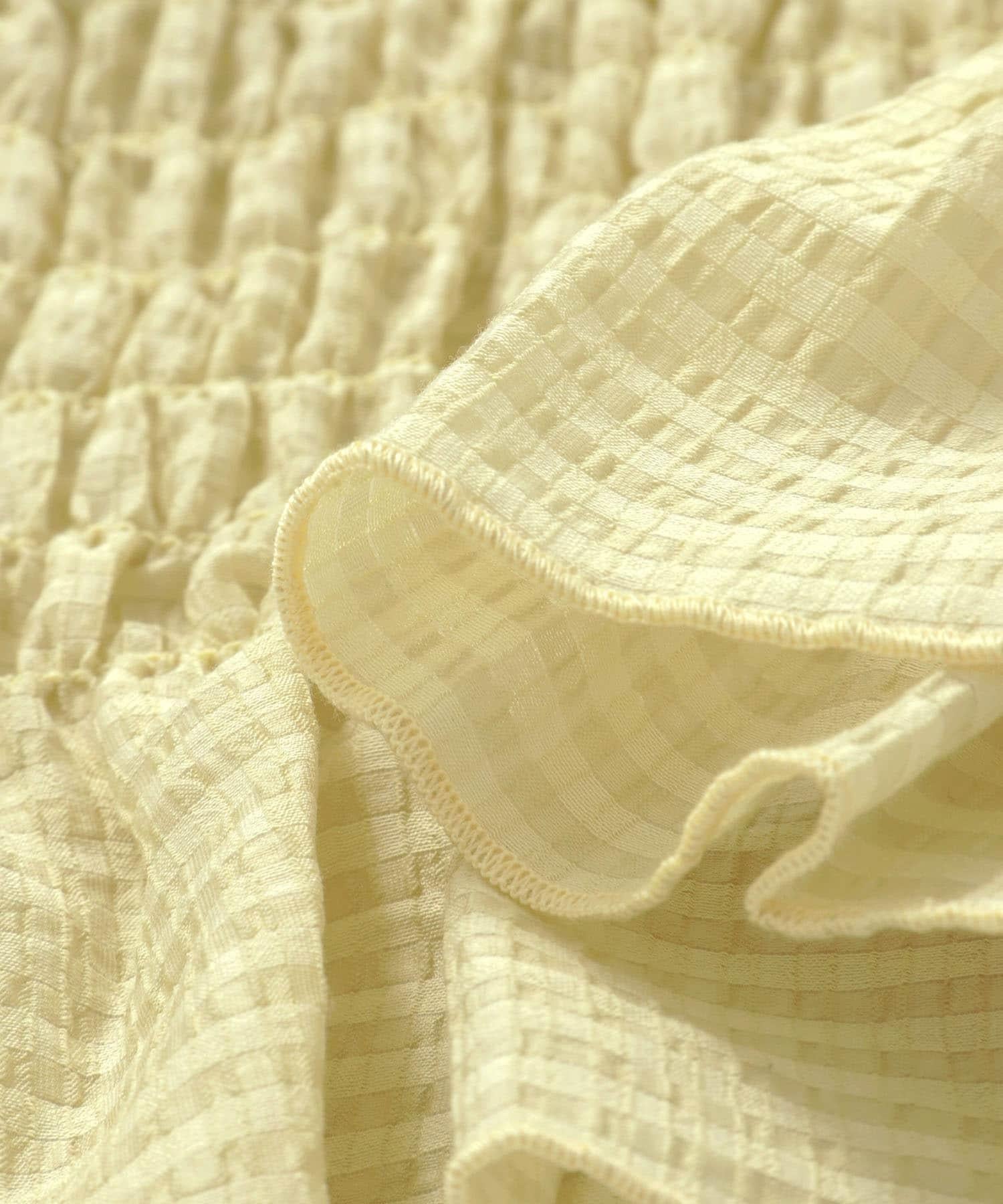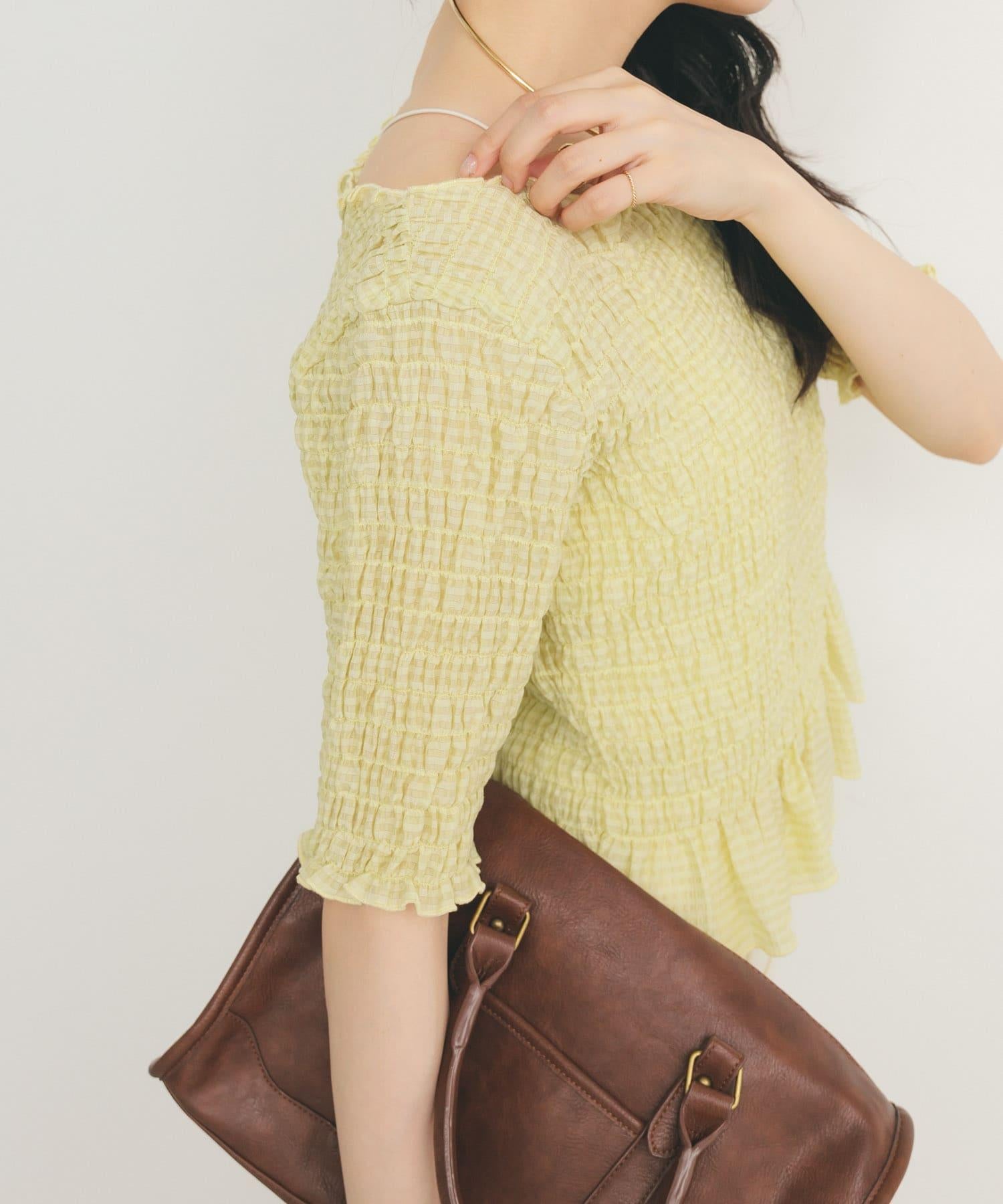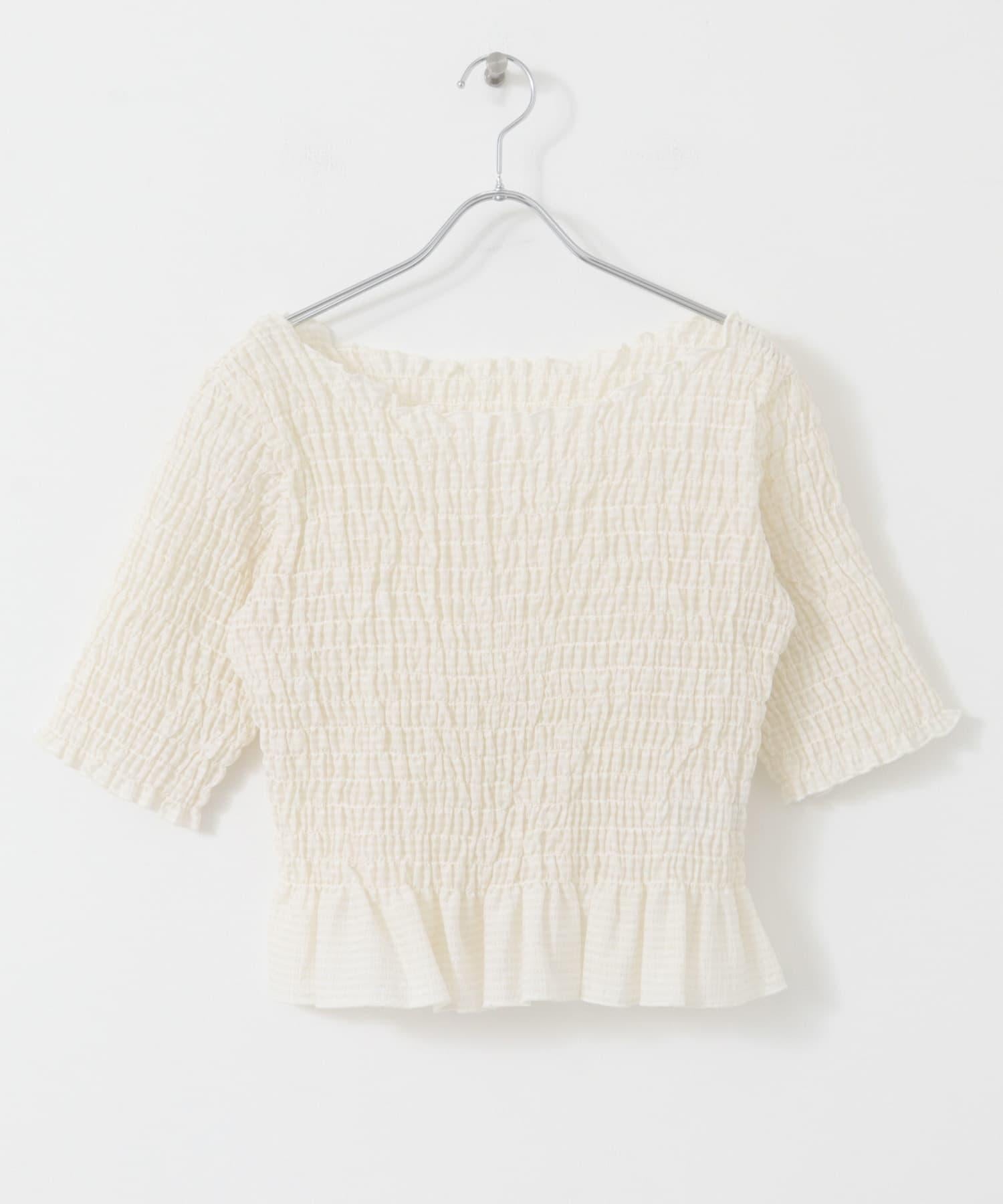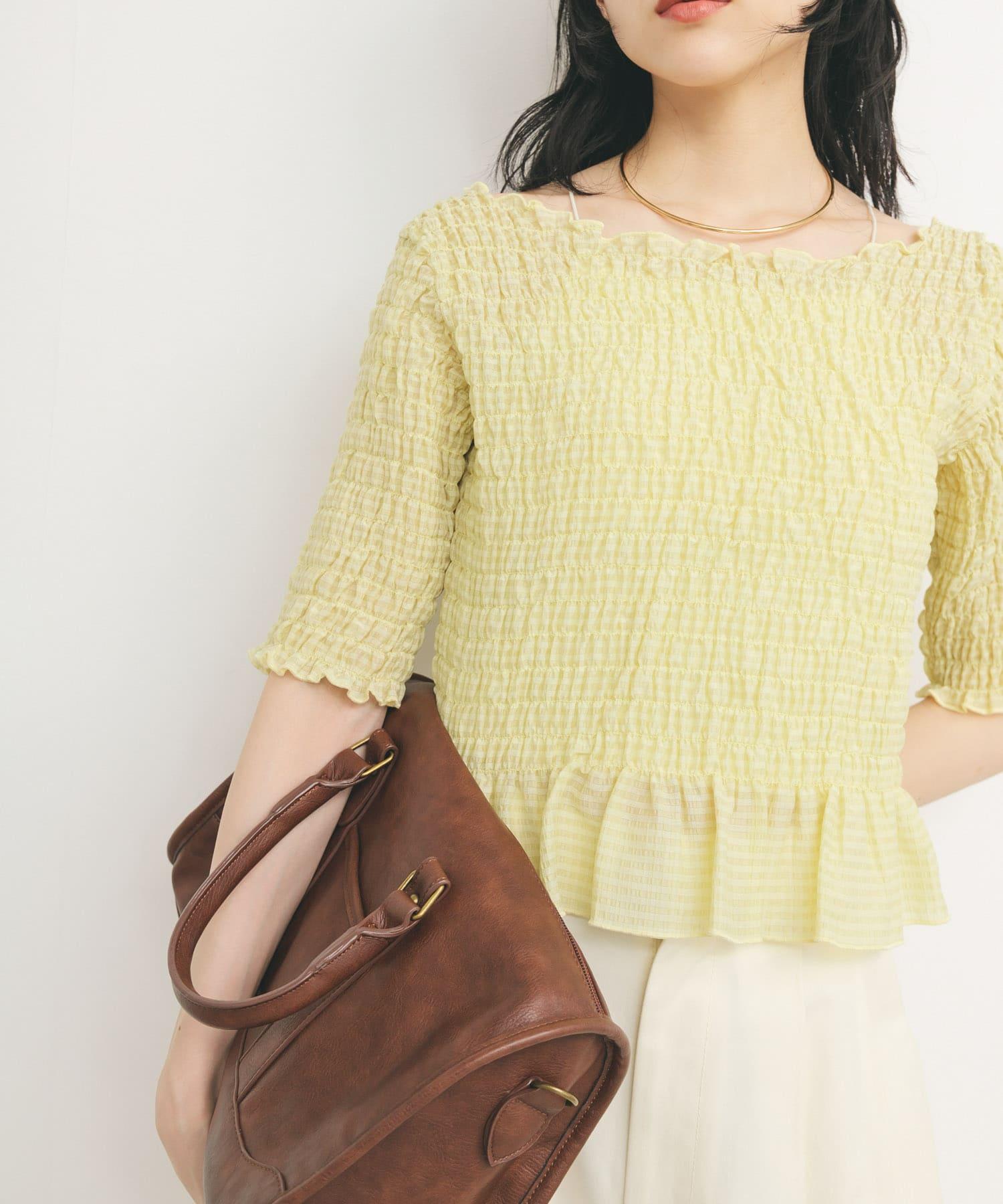 這款襯衫的四面都採用了碎花設計,打造出女性化的迷人外觀。簡潔的領口採用雙向設計,也可改為露肩款式。不僅可作為主衣,也可作為連衣裙的內搭。