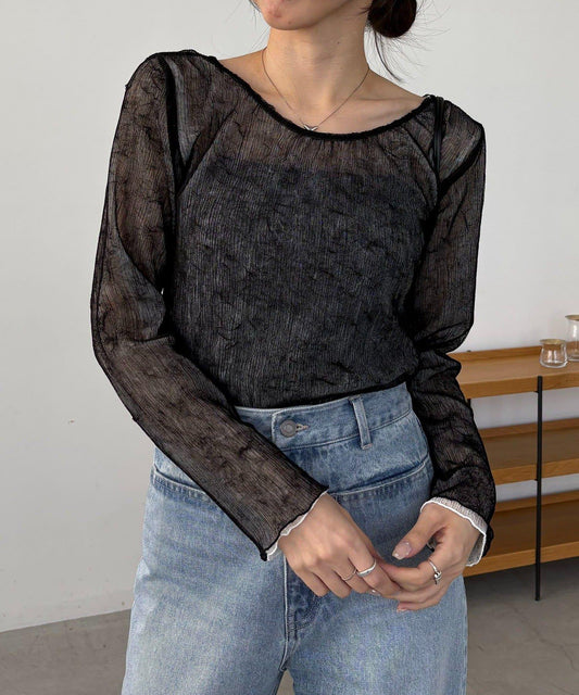 這款 T 恤的圓形下襬可以不穿內搭,給人一種時髦的感覺。