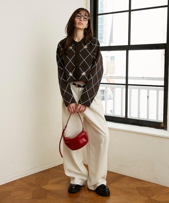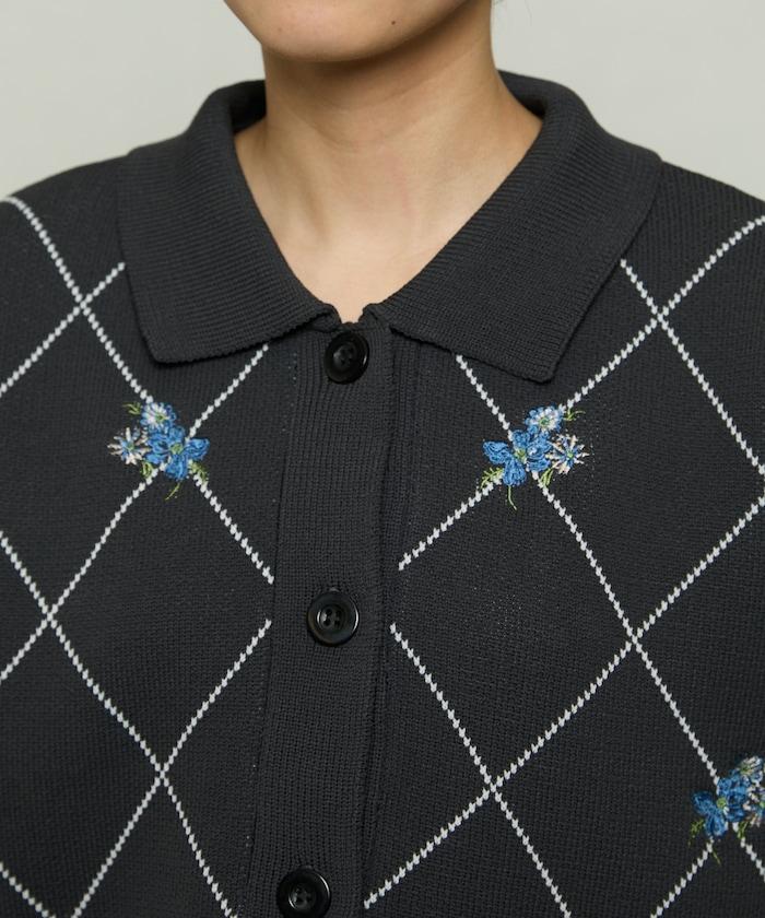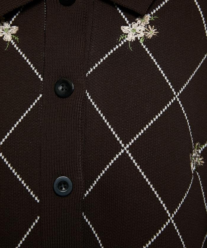 線稿的菱形圖案上飾有花卉圖案,華麗的點綴使其成為單件的主角。