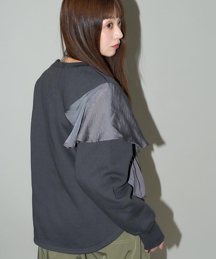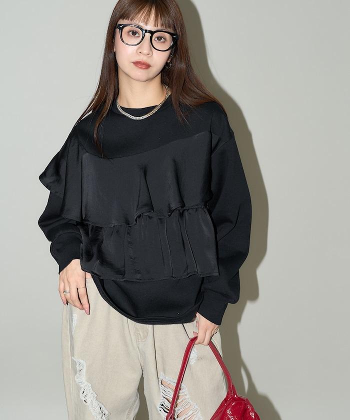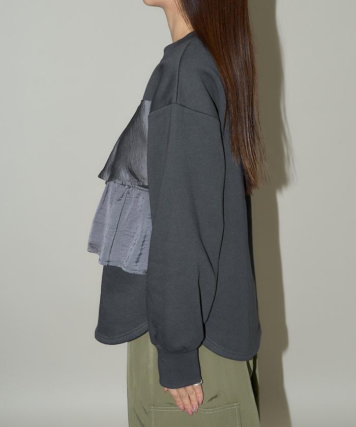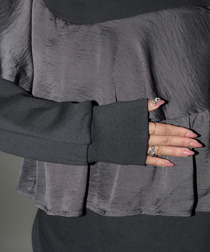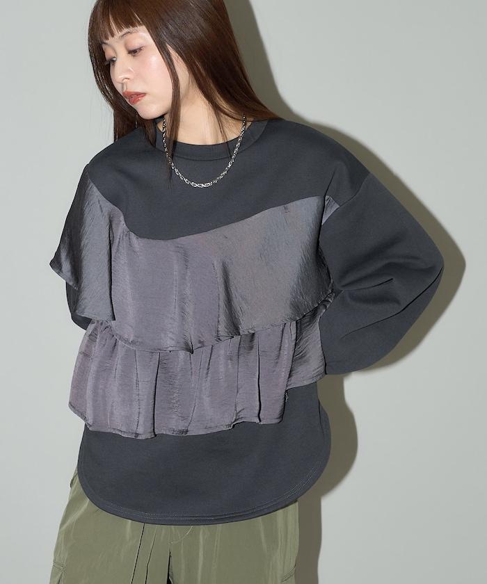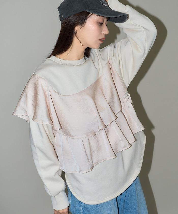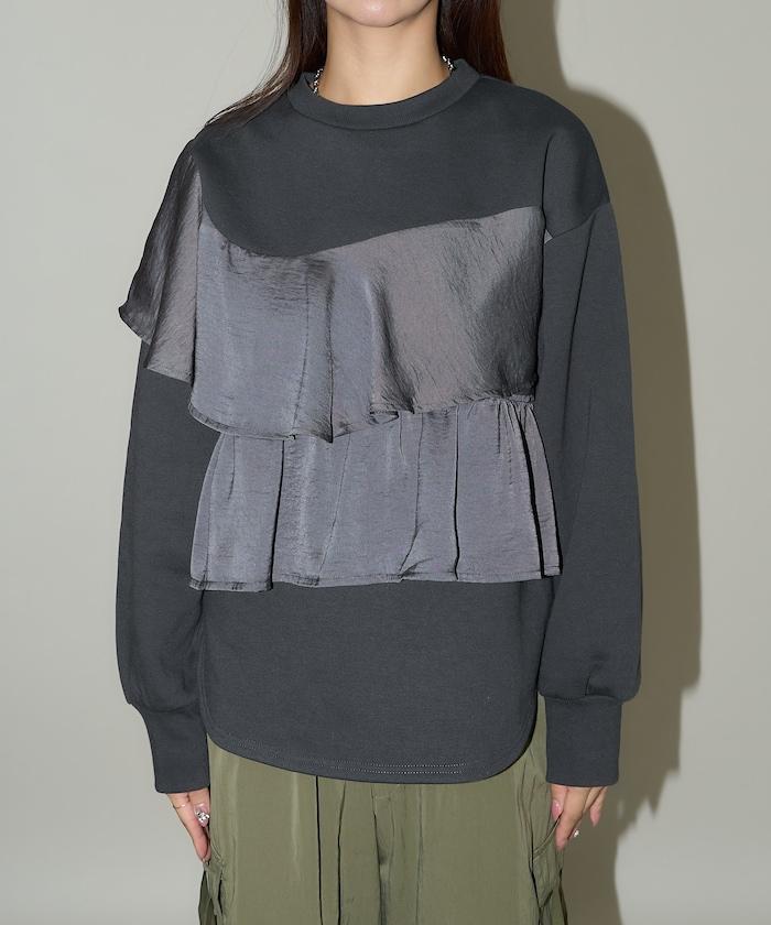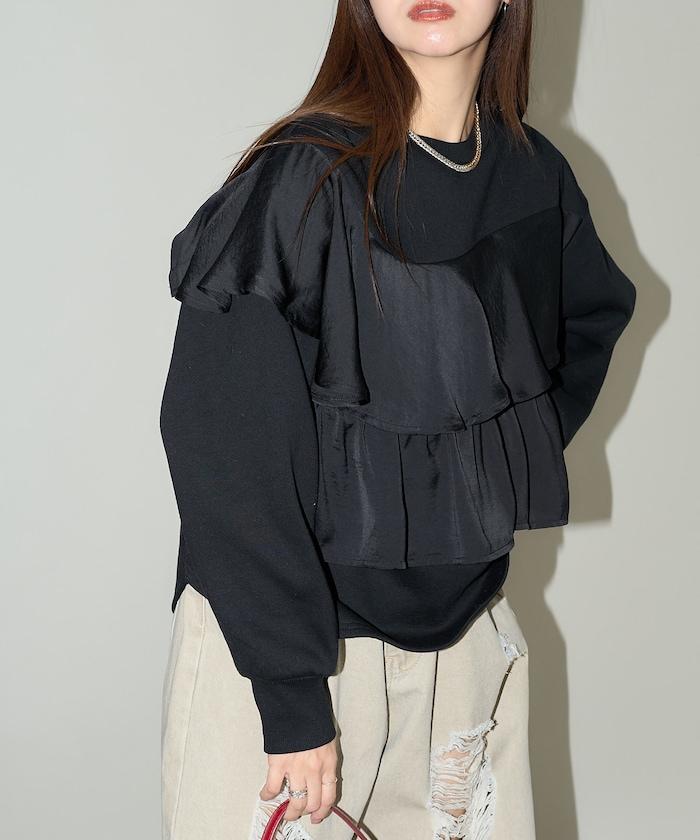 運動衫前幅採用層疊式緞面荷葉邊設計。