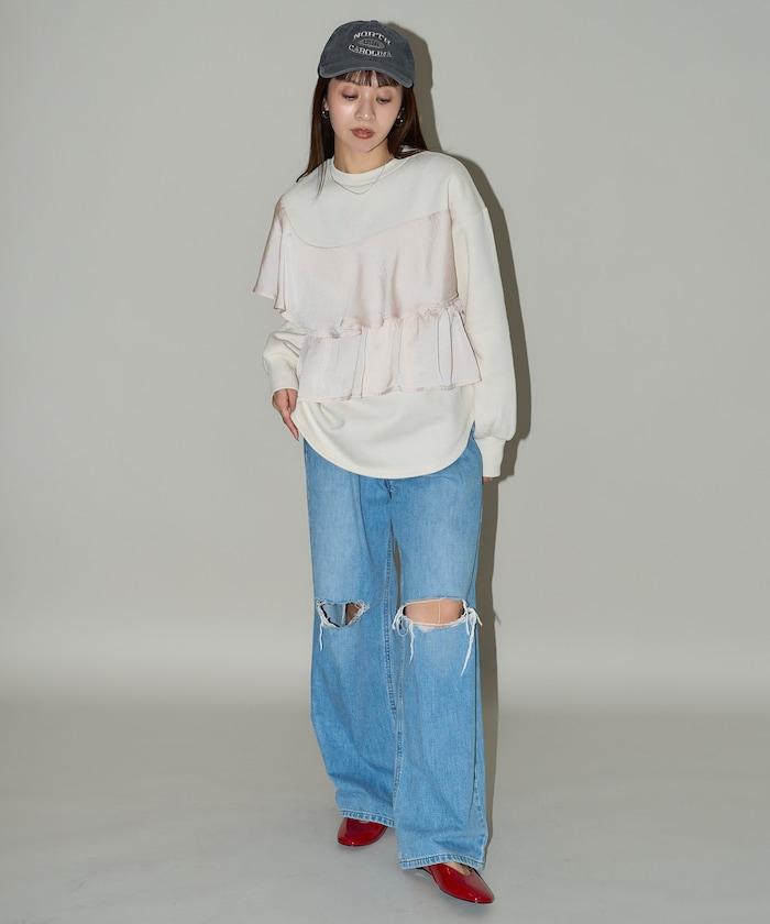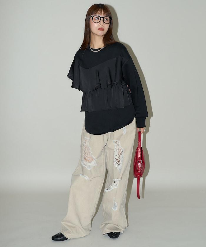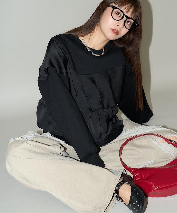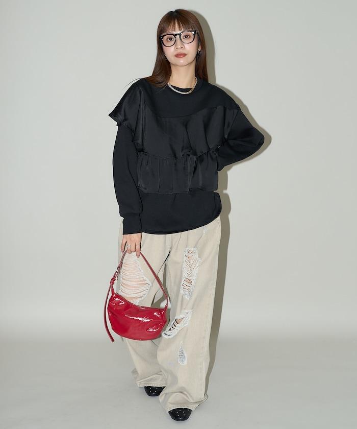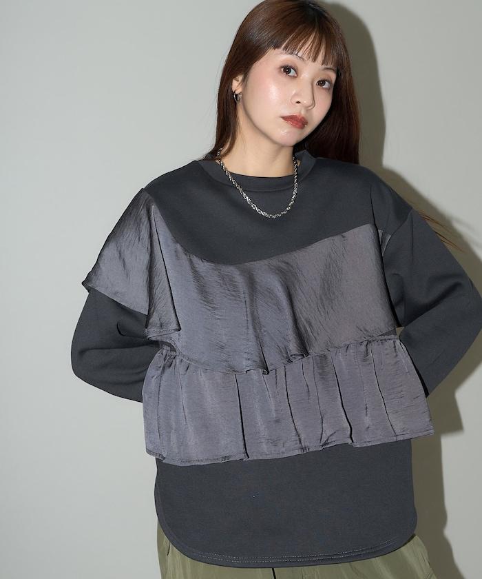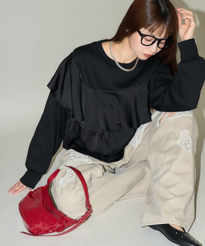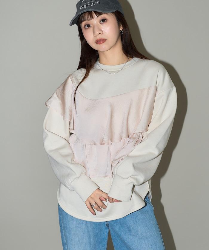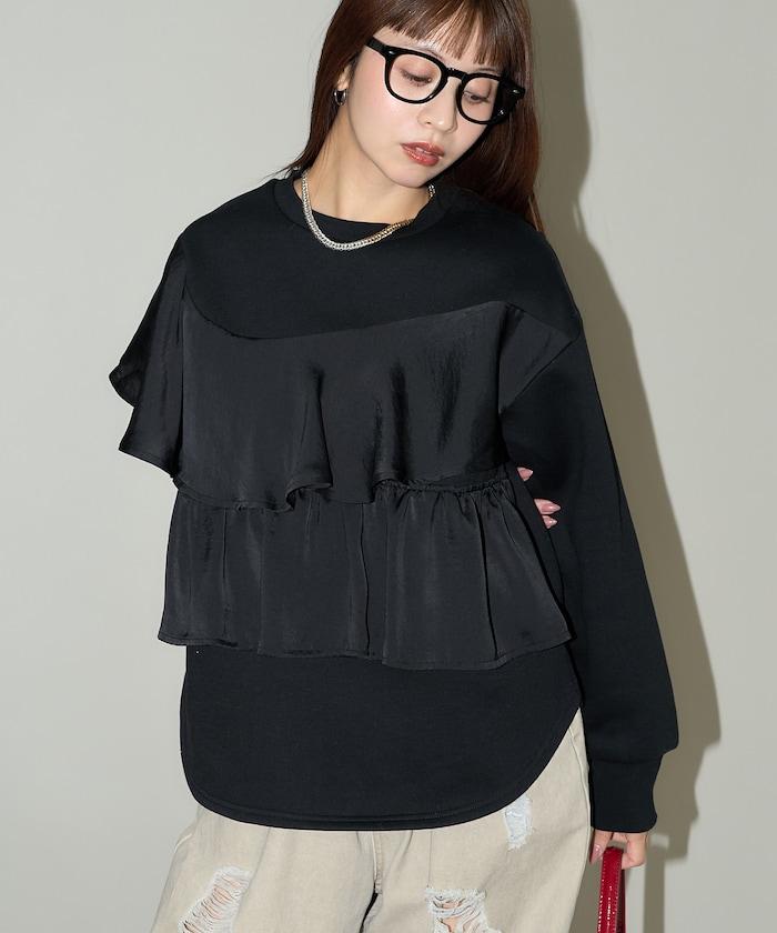 運動衫前幅採用層疊式緞面荷葉邊設計。